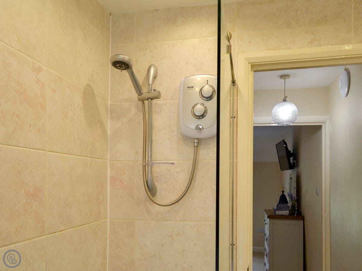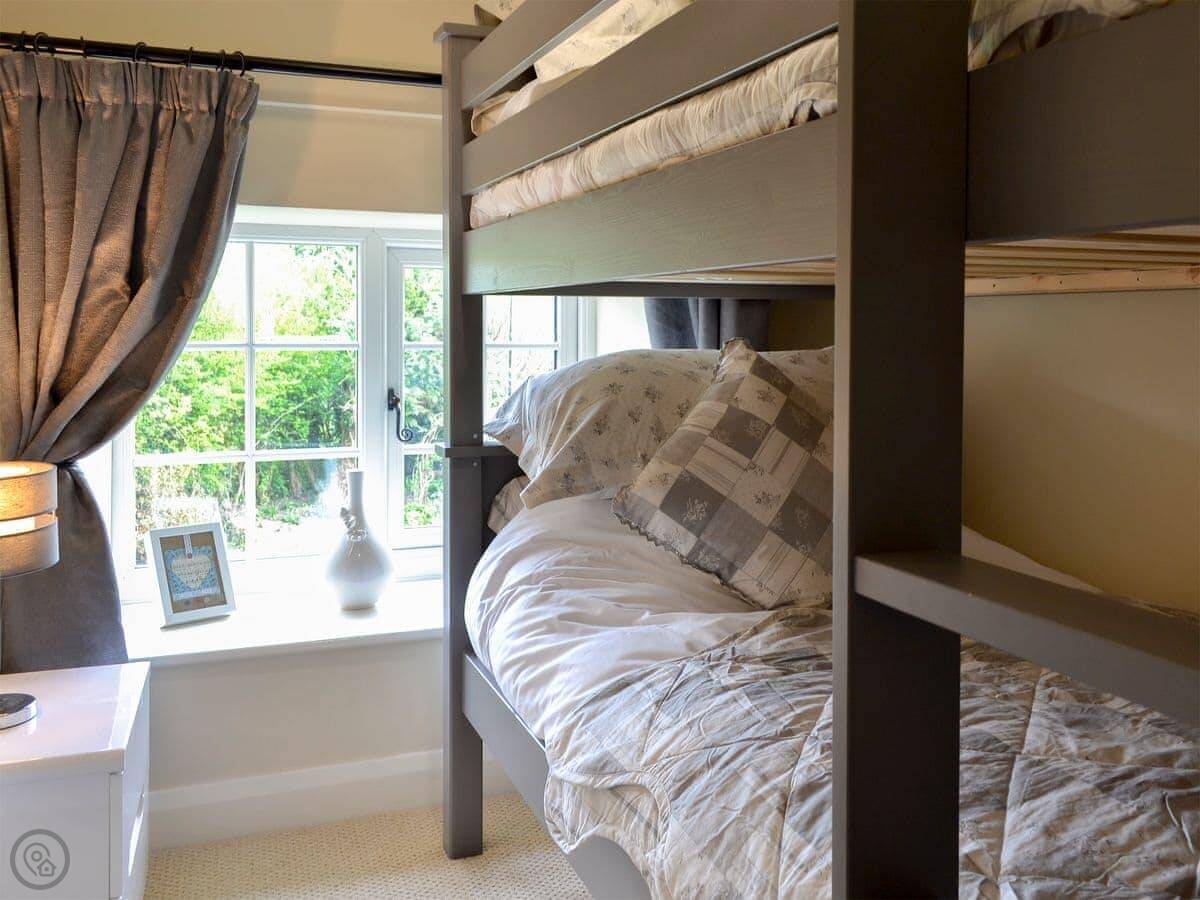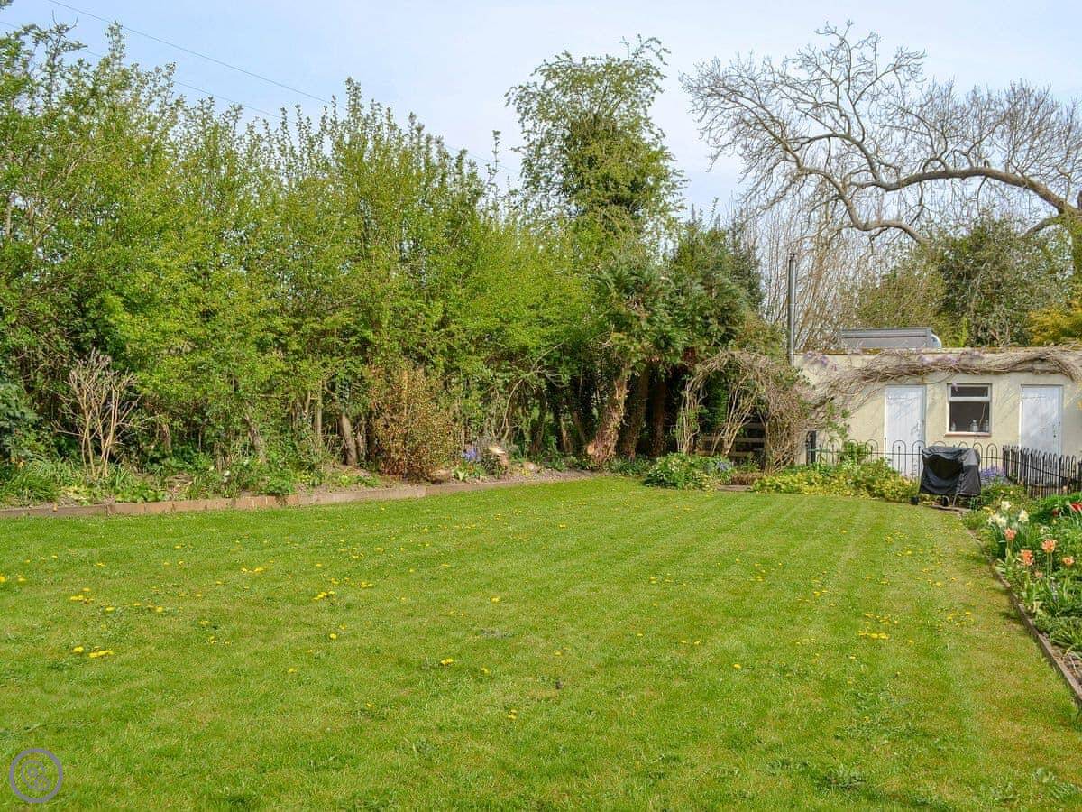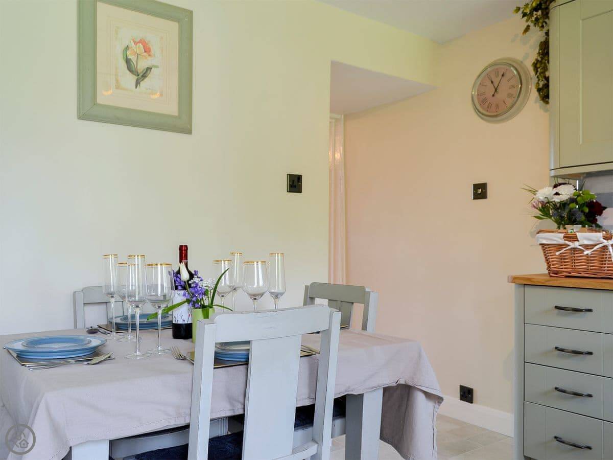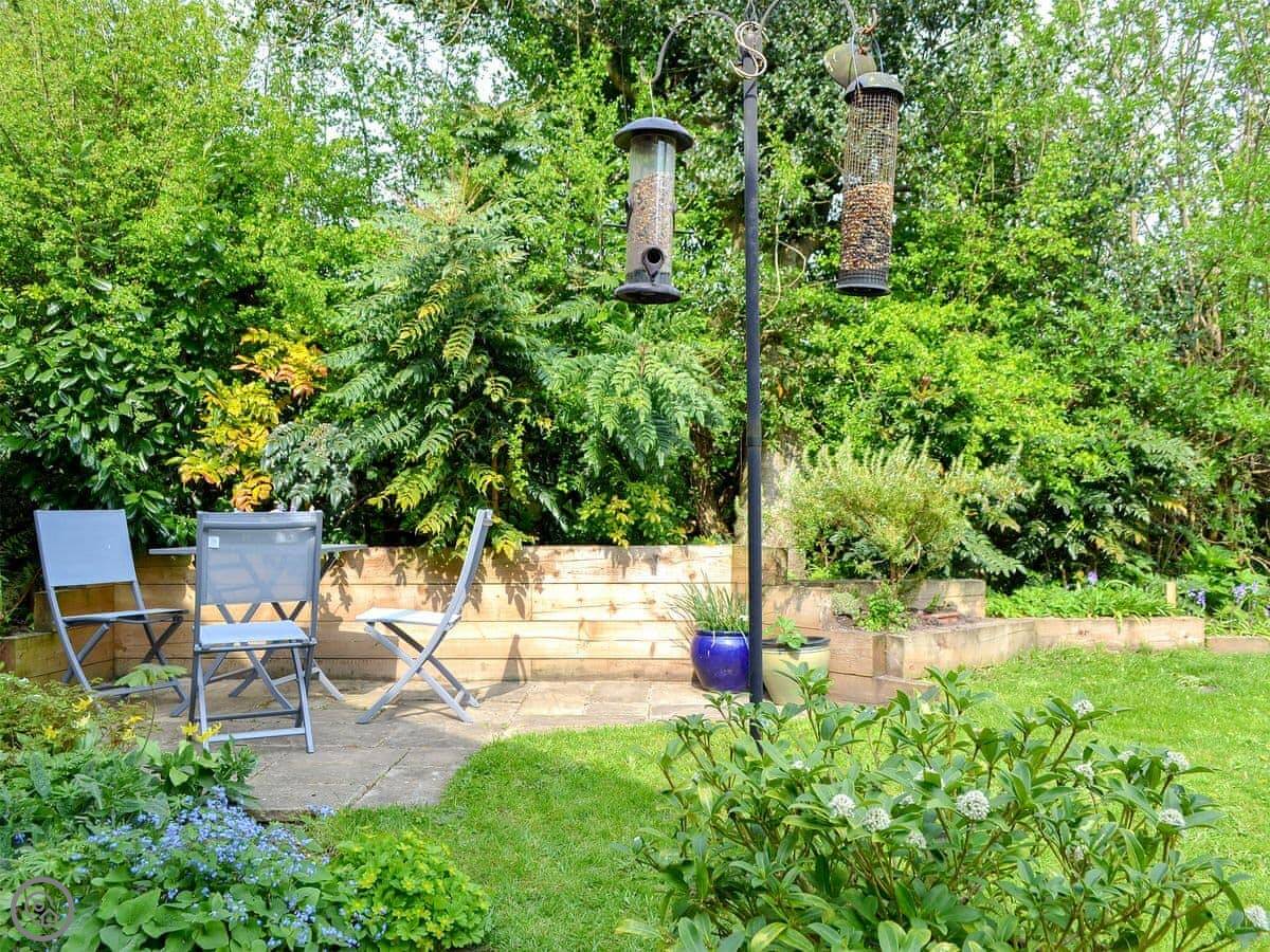 It sleeps three. Two bedrooms and one bathroom. It's got a 4 Star rating. It's a stone-built terraced cottage, so it's got solid walls and a proper feel to it. The garden is shared with the cottage next door, but you get your own private patio area with a table and chairs. There's a field right next to the garden with horses in it.