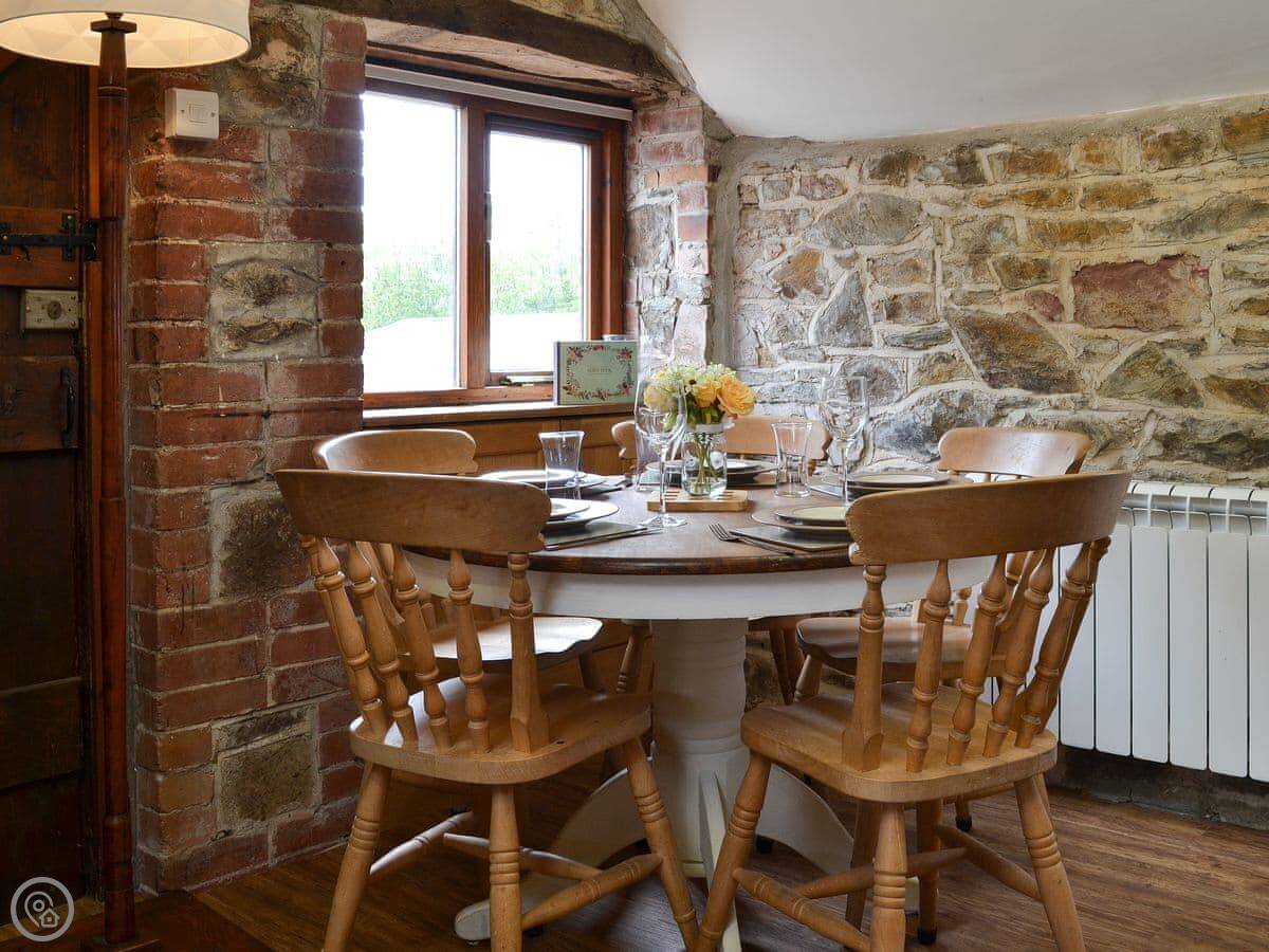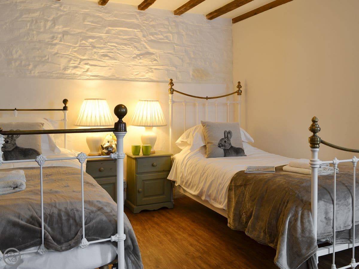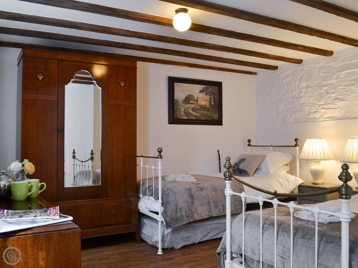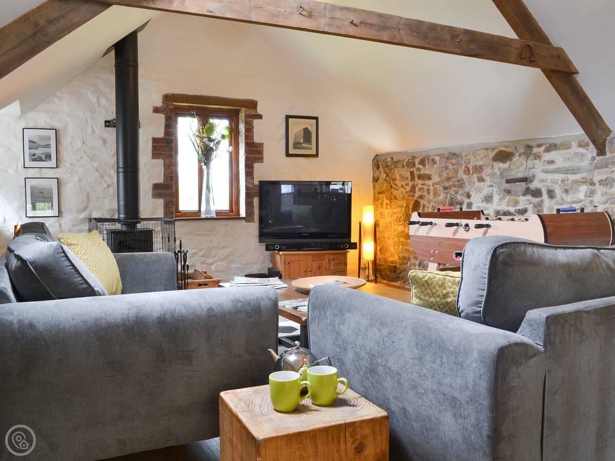 The Old Coach House is a barn conversion in Cranford, near Bideford. It sleeps five. Two bedrooms and one bathroom downstairs, and the living area is upstairs. That's the upside-down layout. It works fine.