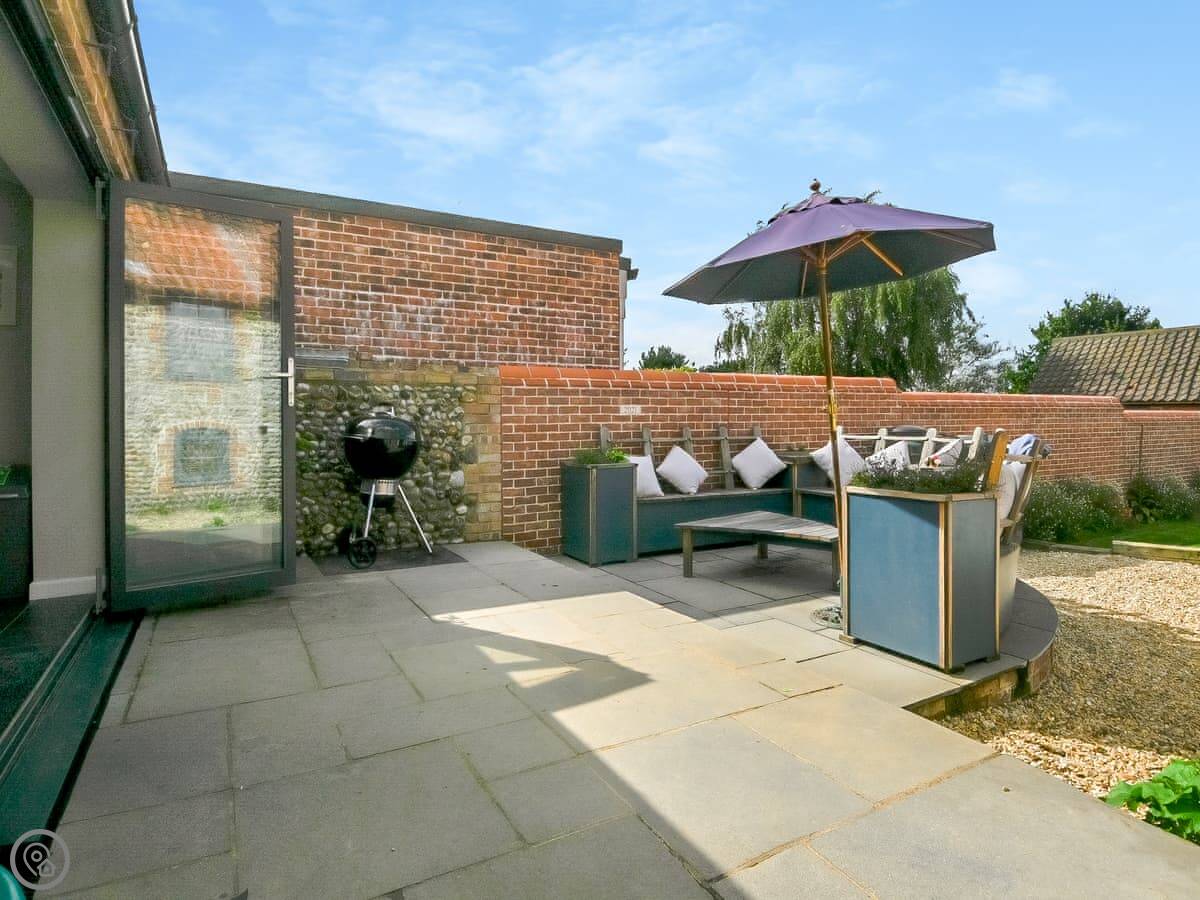 You can walk to the beach from here. If you drive, Wells-next-the-Sea is about ten minutes away. They've got the beach huts and the little railway down to the sand. Holkham Hall is a fifteen minute drive, maybe twenty. The Norfolk Broads and Norwich are both within an hour if you fancy a day trip.