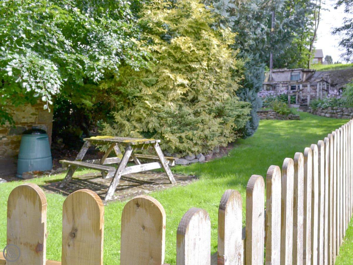 It's got flagstone floors and a wood burner for the colder months. There's a small garden out the back. The bathroom is modern and the kitchen is well equipped.