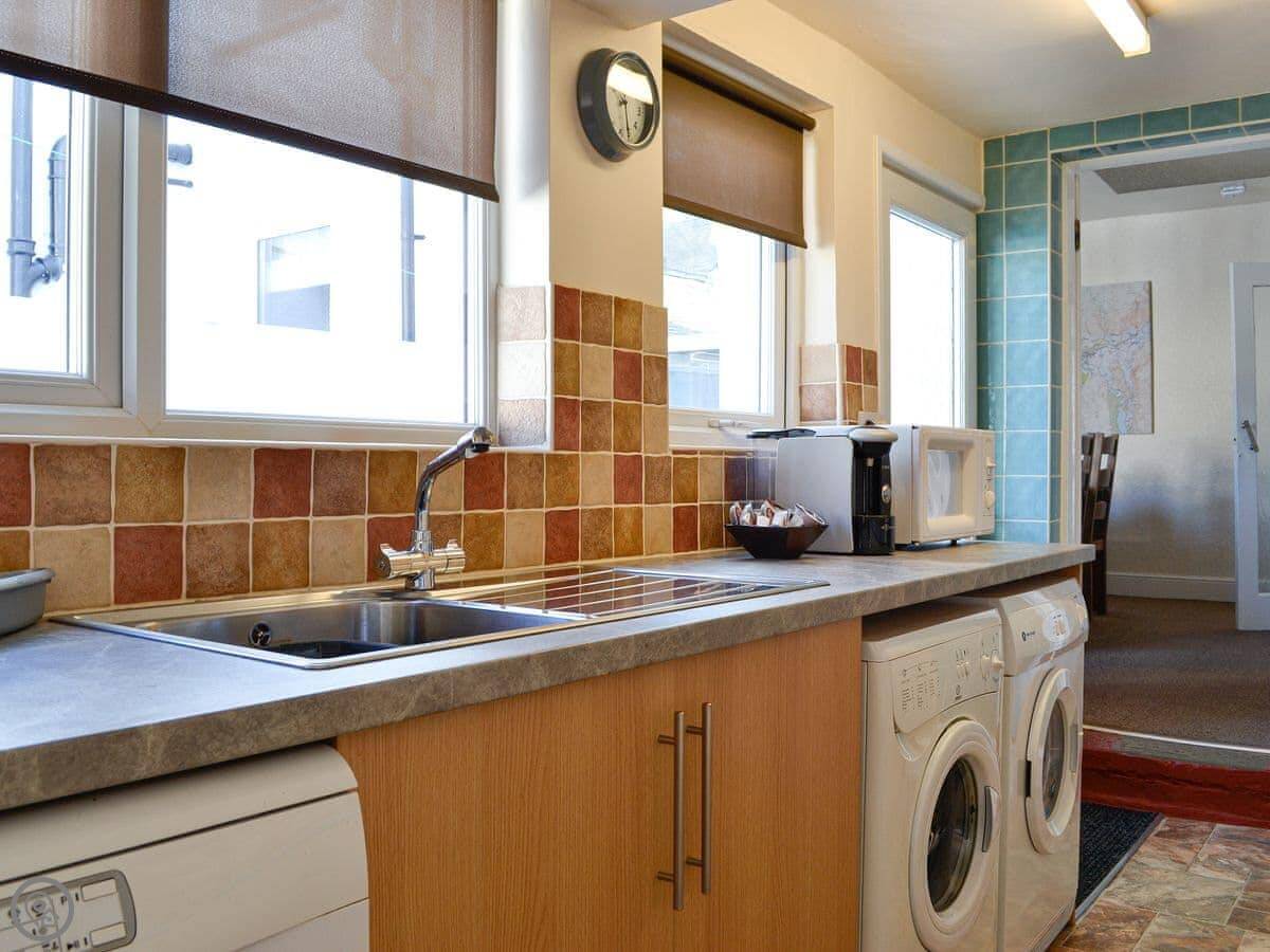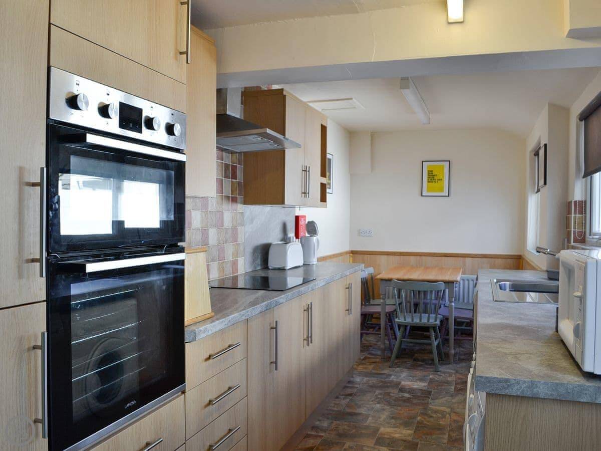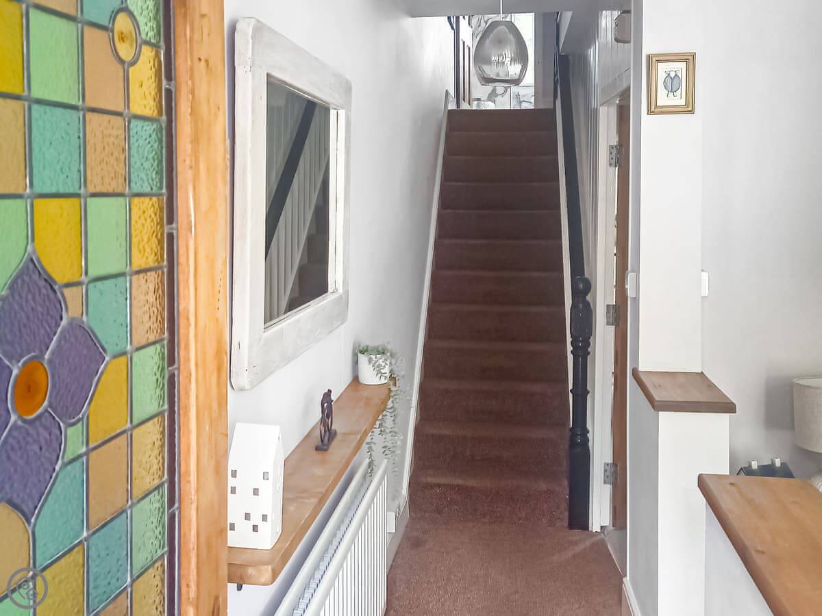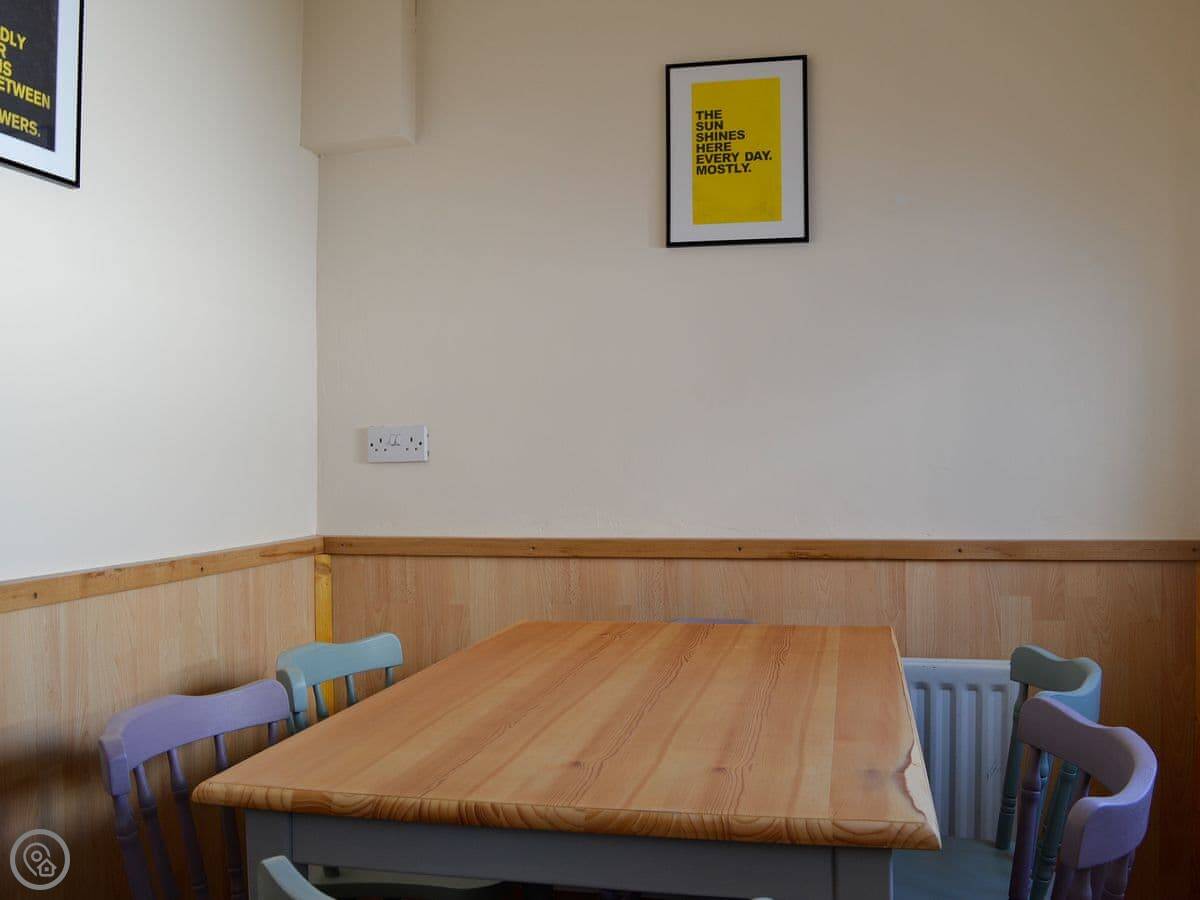 It's got a 4 Star rating. It's comfortable and well looked after, not luxurious. The ceilings are high, so the rooms feel spacious. Downstairs, there's a living room and a separate dining room. The garden at the back is enclosed, which is good for dogs. There's a store out there you can use to dry wet coats.