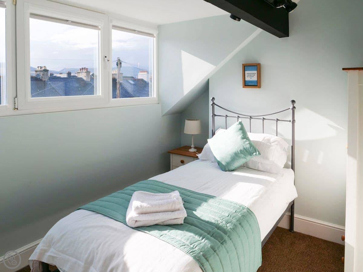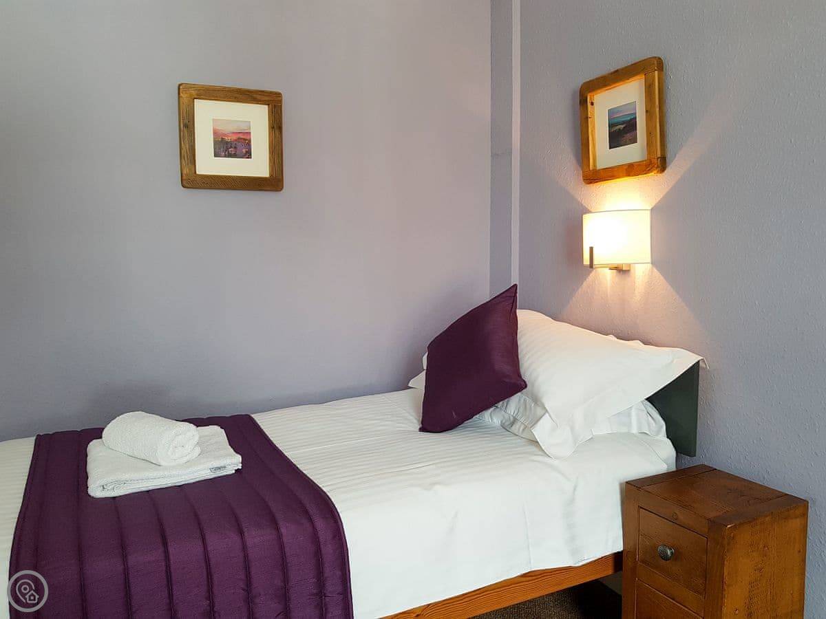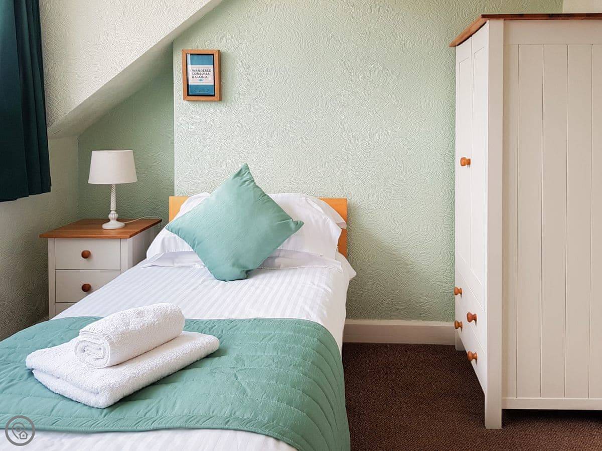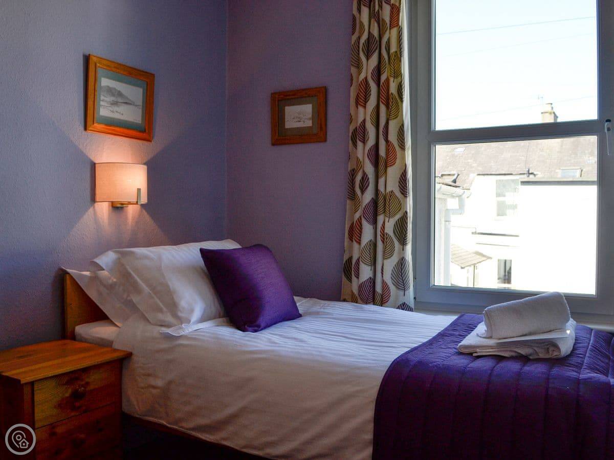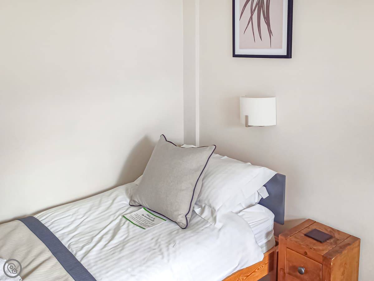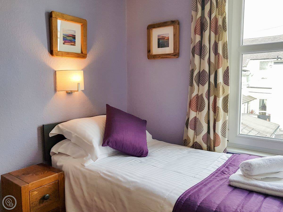 On the first floor, there's a bedroom with a super king bed and its own shower room, and another with twin beds. Up another flight of stairs, there's a king-size room and a single room. Those top rooms have a view over the rooftops towards the fells. The stairs to the top floor are a bit steep, just so you know.