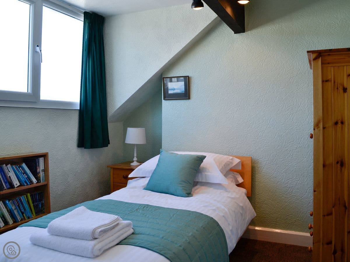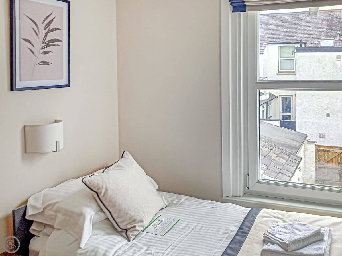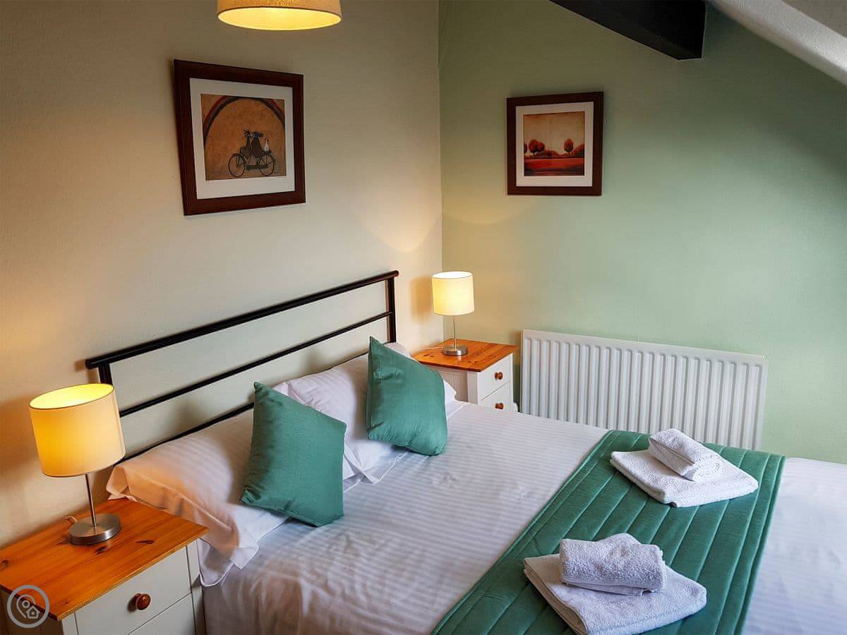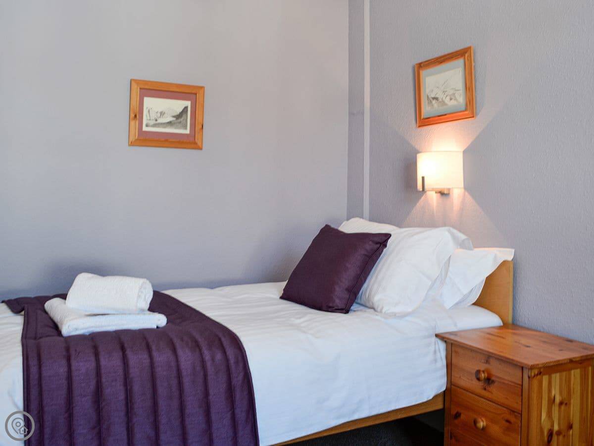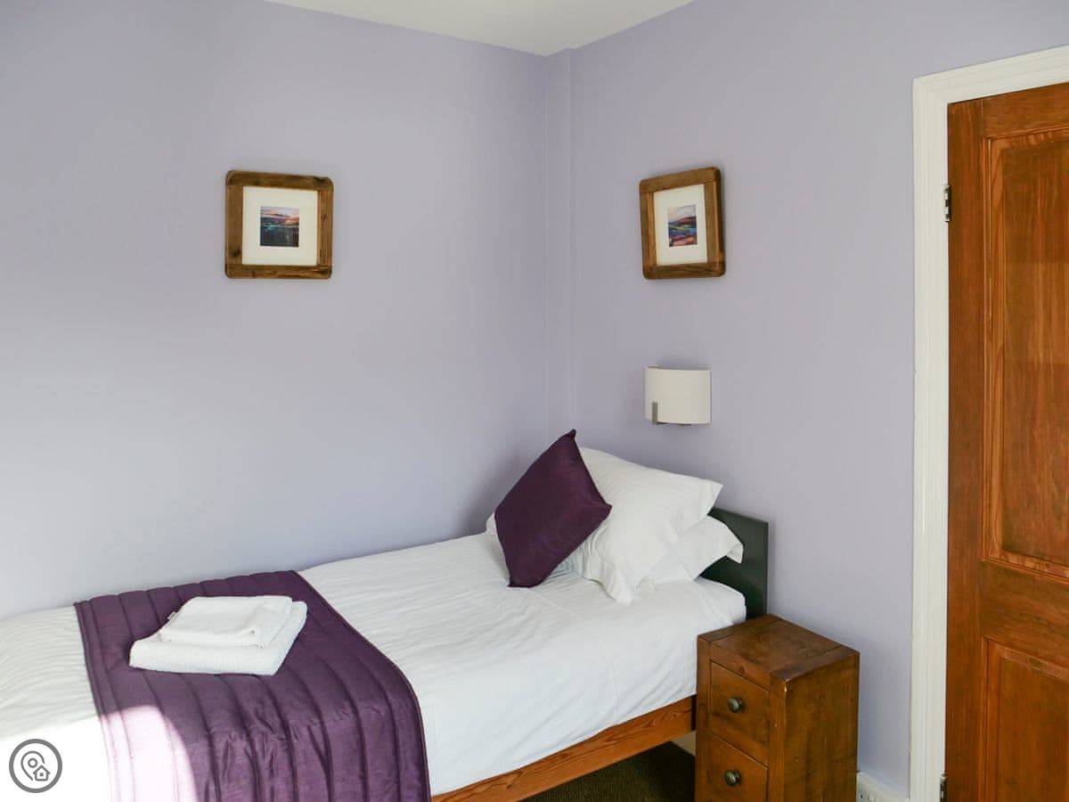 On the first floor, there's a bedroom with a super king bed and its own shower room, and another with twin beds. Up another flight of stairs, there's a king-size room and a single room. Those top rooms have a view over the rooftops towards the fells. The stairs to the top floor are a bit steep, just so you know.