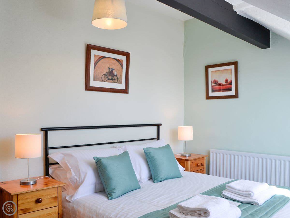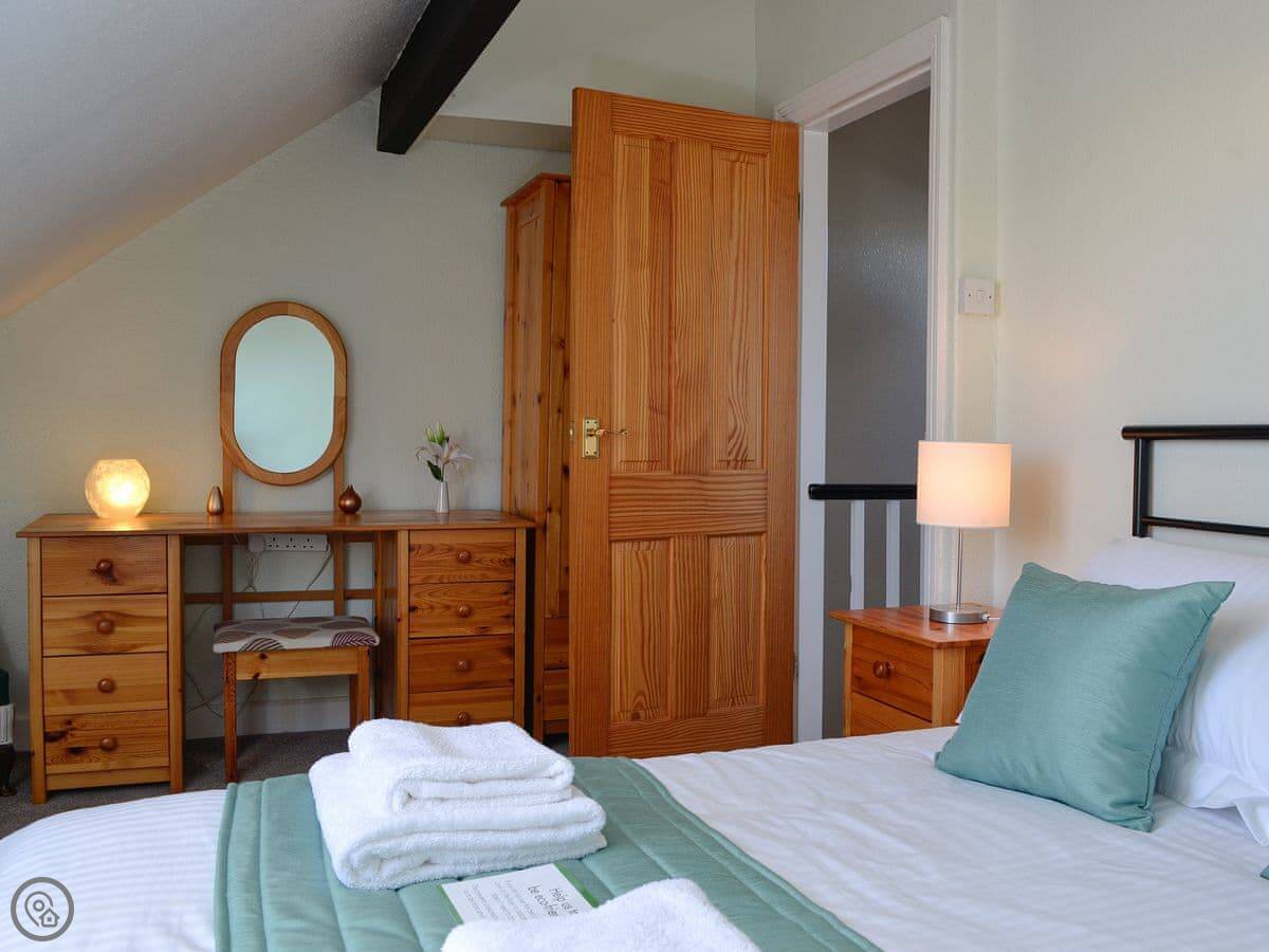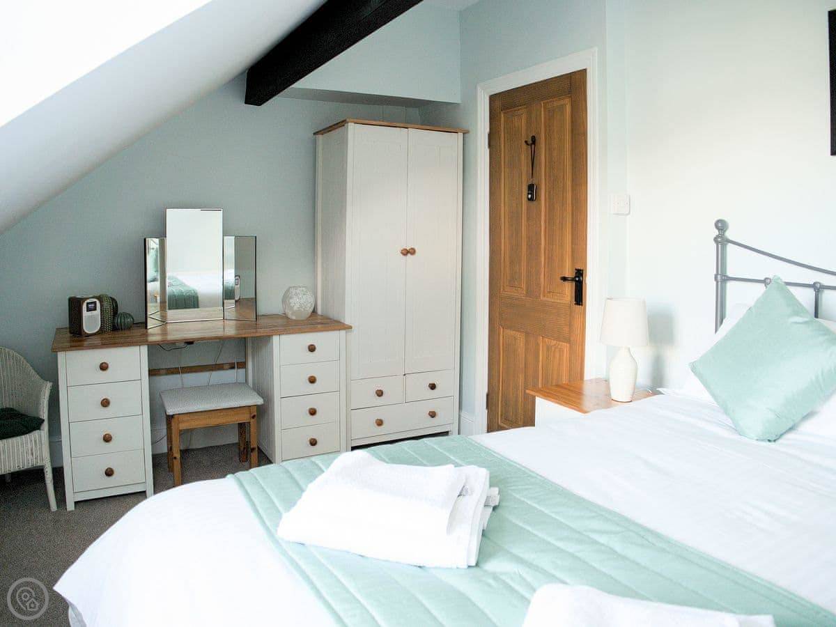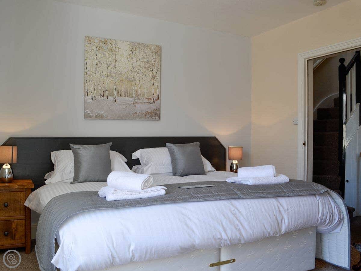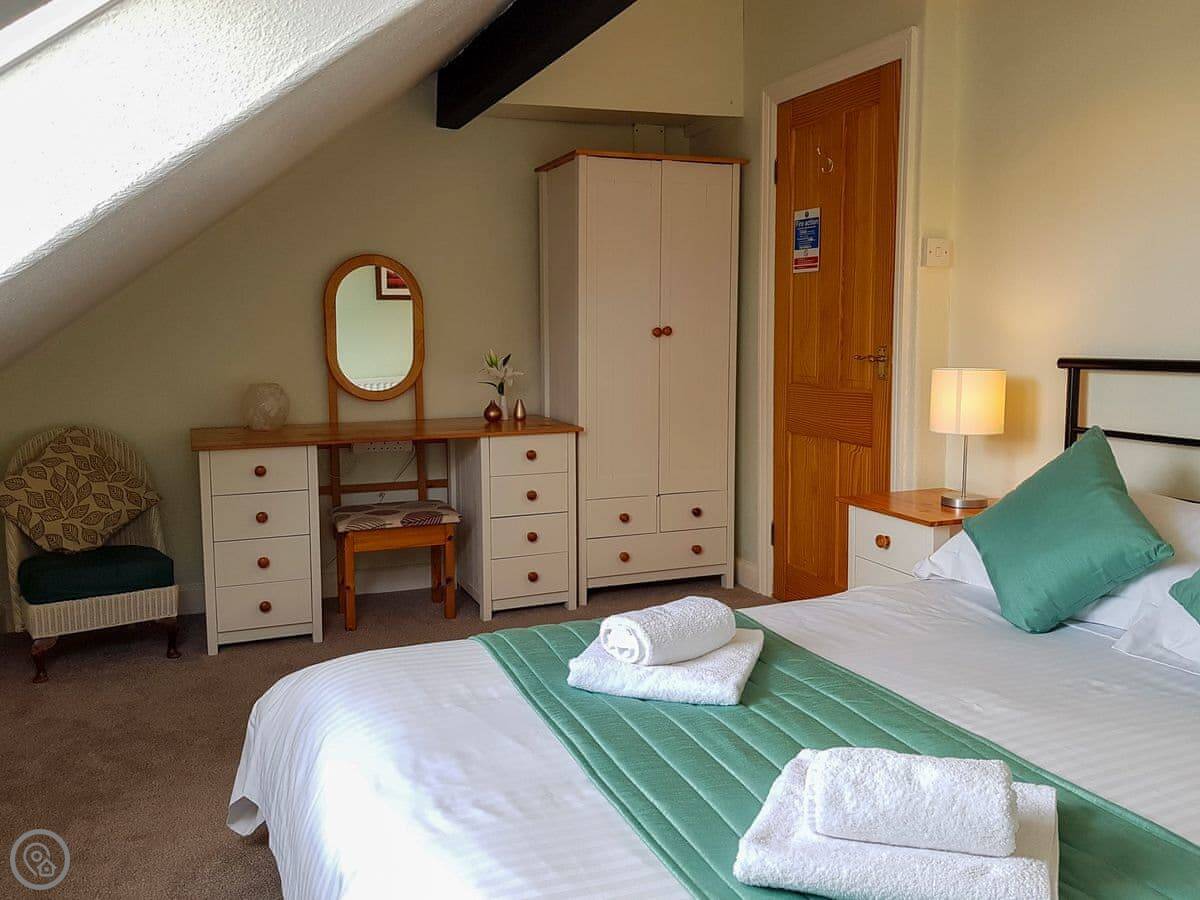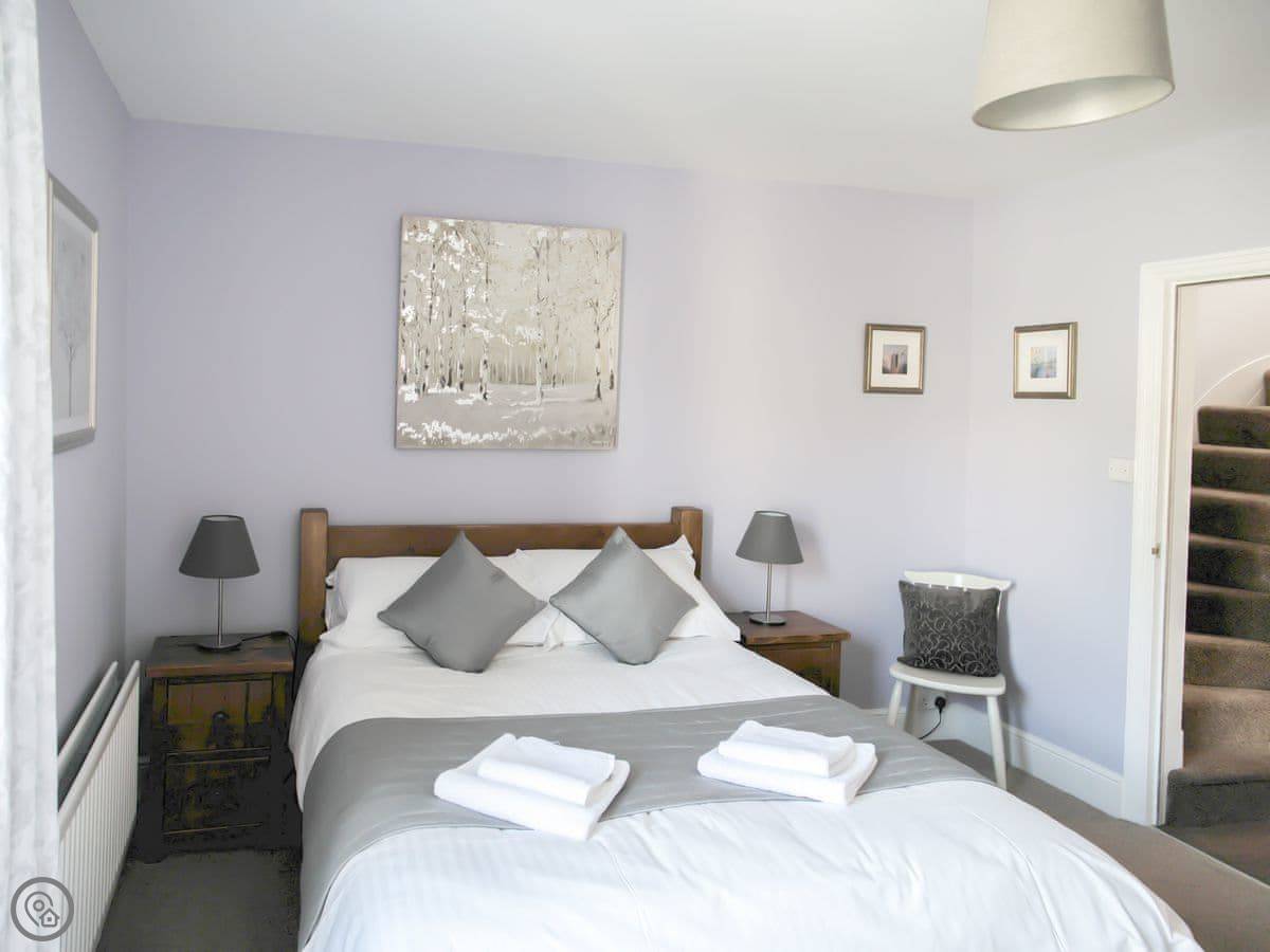 On the first floor, there's a bedroom with a super king bed and its own shower room, and another with twin beds. Up another flight of stairs, there's a king-size room and a single room. Those top rooms have a view over the rooftops towards the fells. The stairs to the top floor are a bit steep, just so you know.