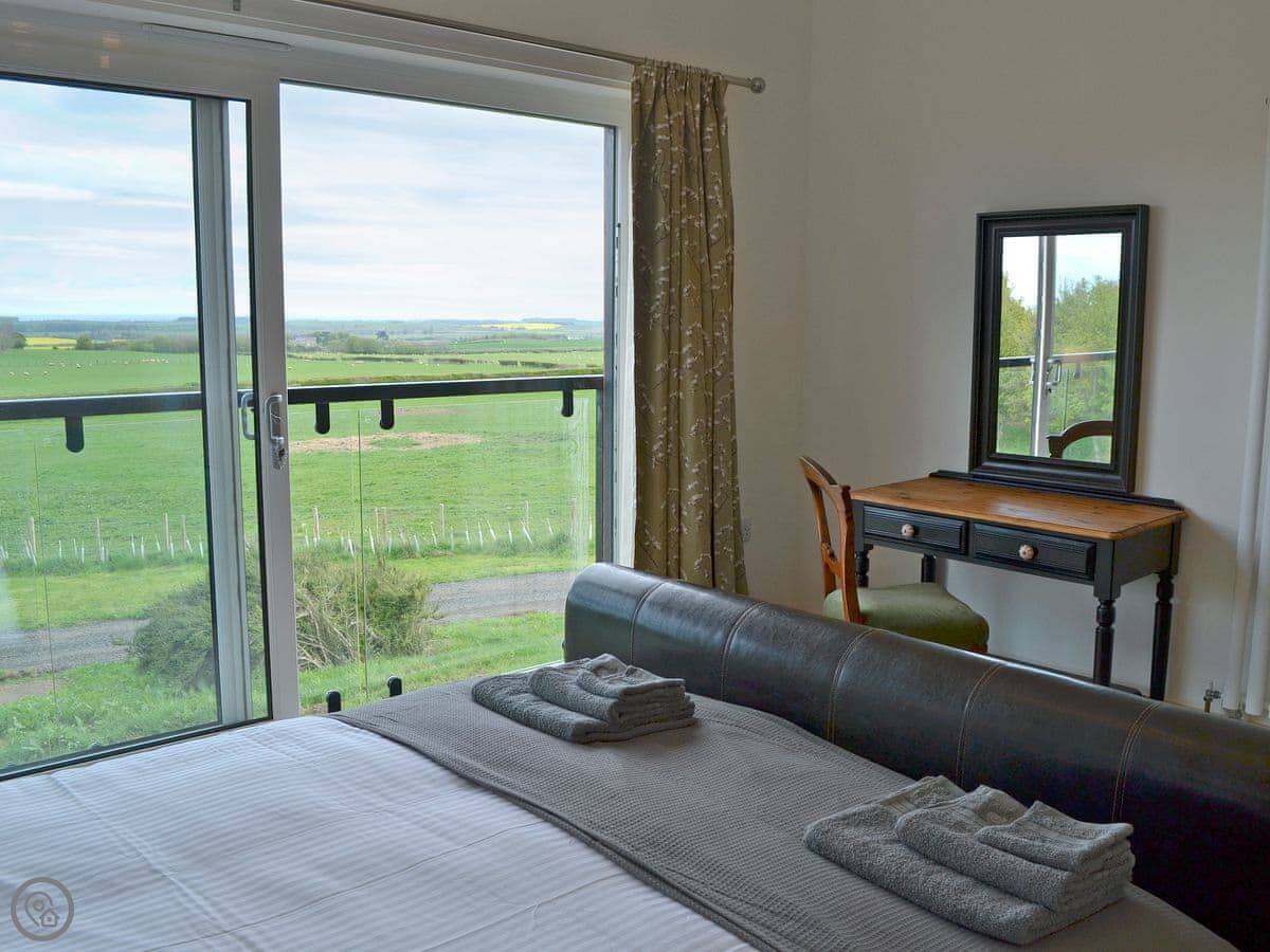 Set within 5-acres and commanding spectacular views across open farmland towards Bamburgh Castle and the sea as a backdrop, nestles Bellshill Bothy. Constructed in 2019 with every effort and thought to ensure holidaymakers enjoy a relaxing retreat, this fantastic property is simply divine. The exterior is wrapped in cedar, giving it a naturally warm and rustic feel. The spacious entrance leads to a large open plan living space where there is a kitchen, dining and additional living areas. Equipped with high quality integral appliances the kitchen is sleek and contemporary. There are full height sliding patio doors on two sides of the living space affording magnificent views and enhancing its bright and airy ambience. A wood burner ensures this room will be a cosy retreat regardless of the season.