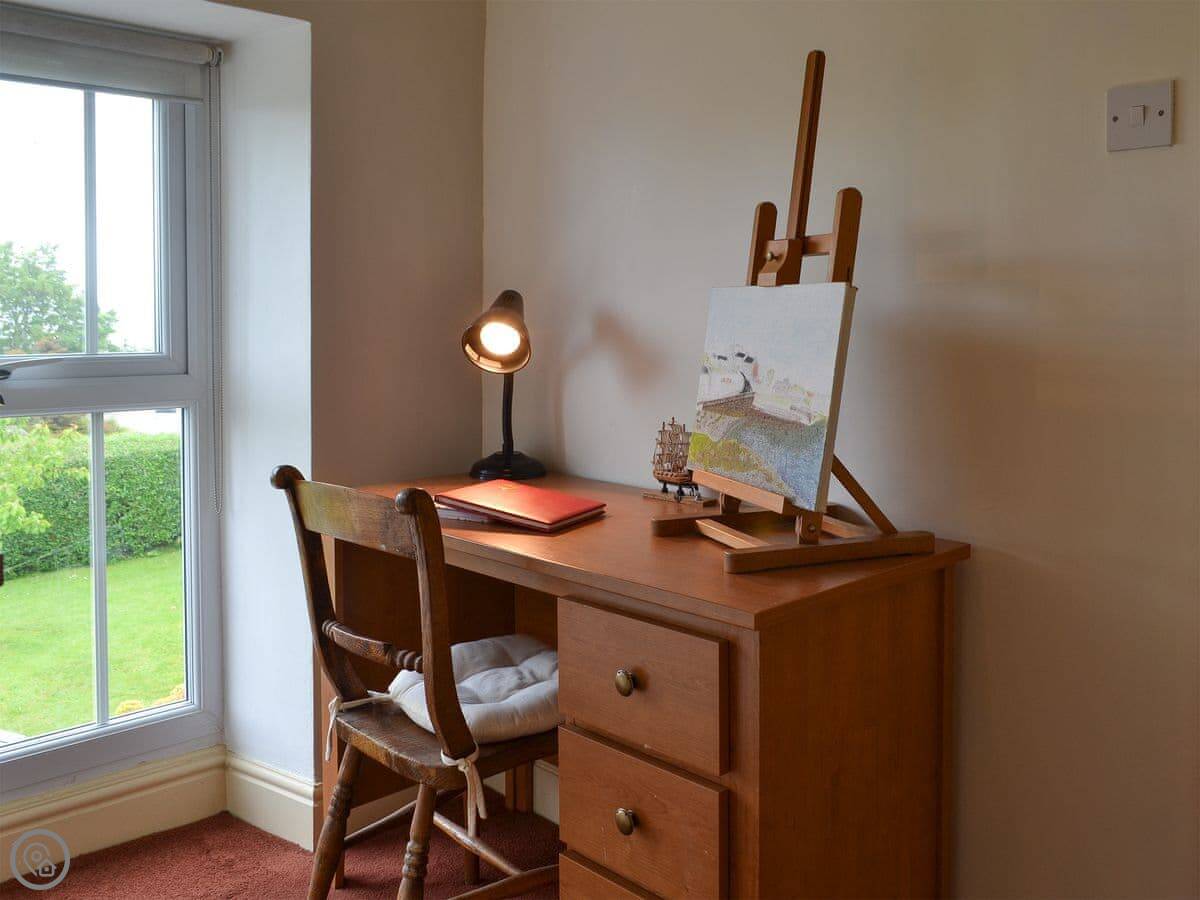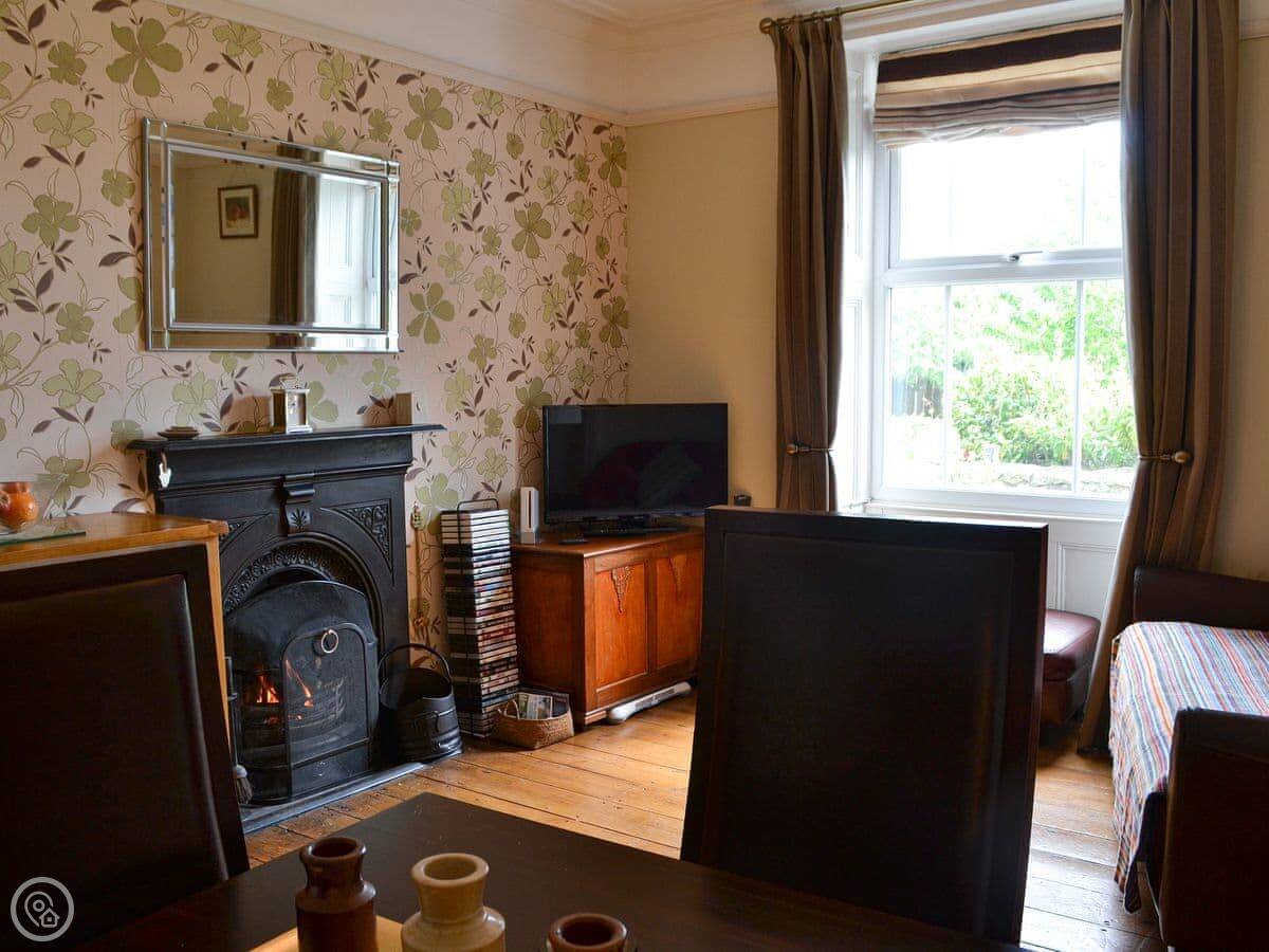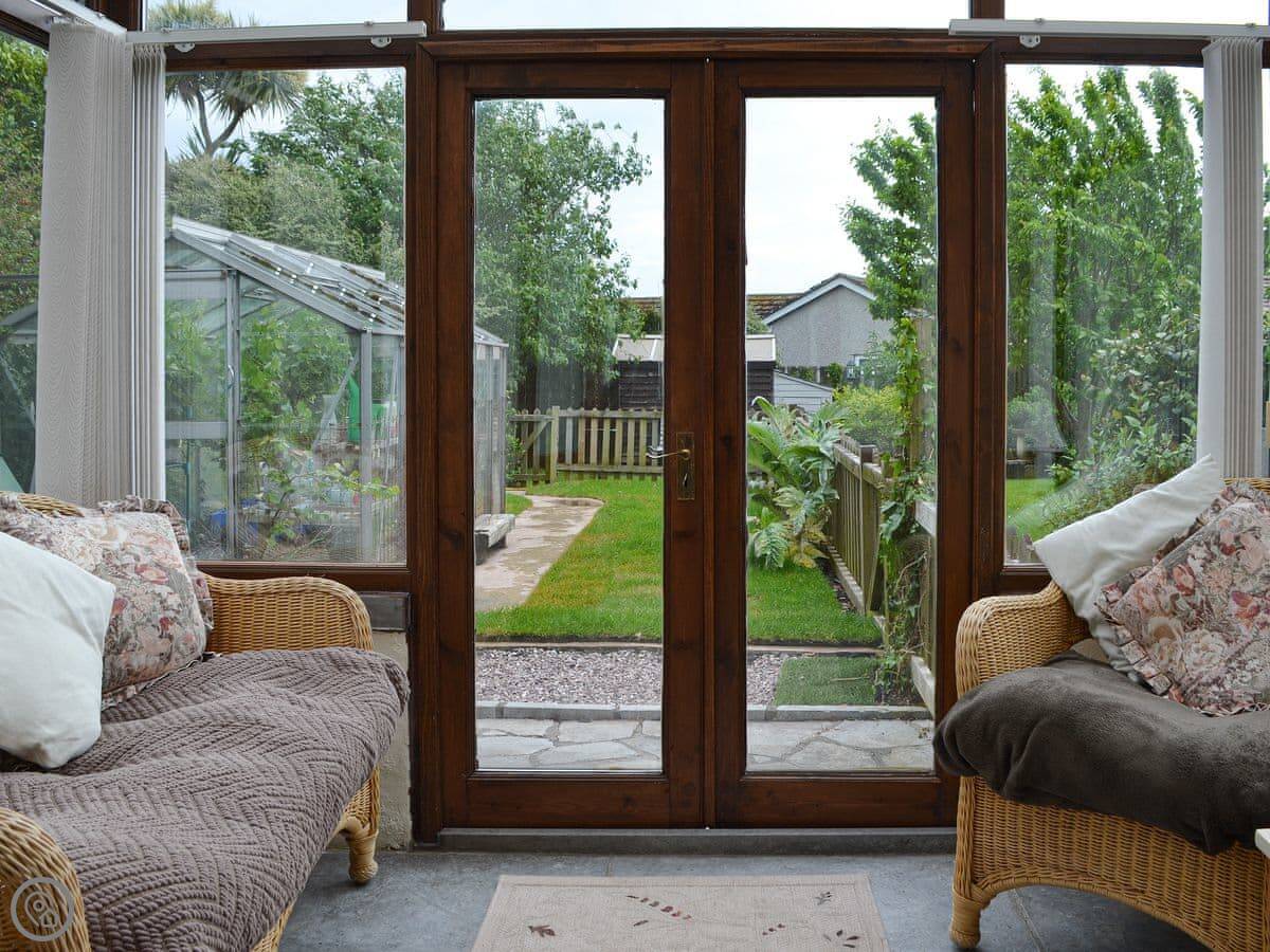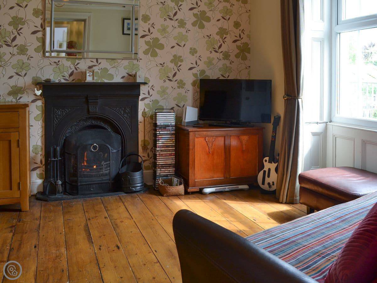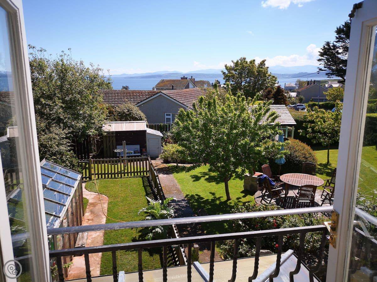 The main living room is upstairs. The view from there is good, you can see right over the sea to the mountains in Snowdonia. The garden is large and fully enclosed. There's a summerhouse too.