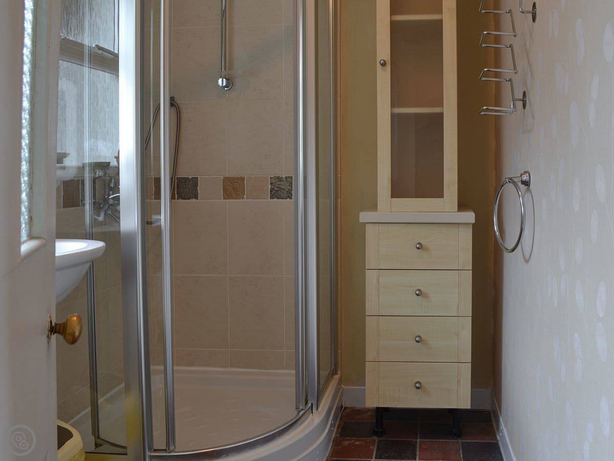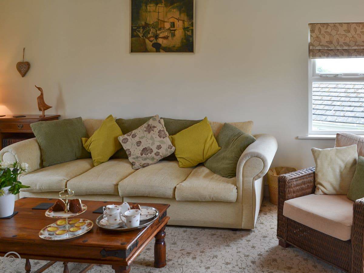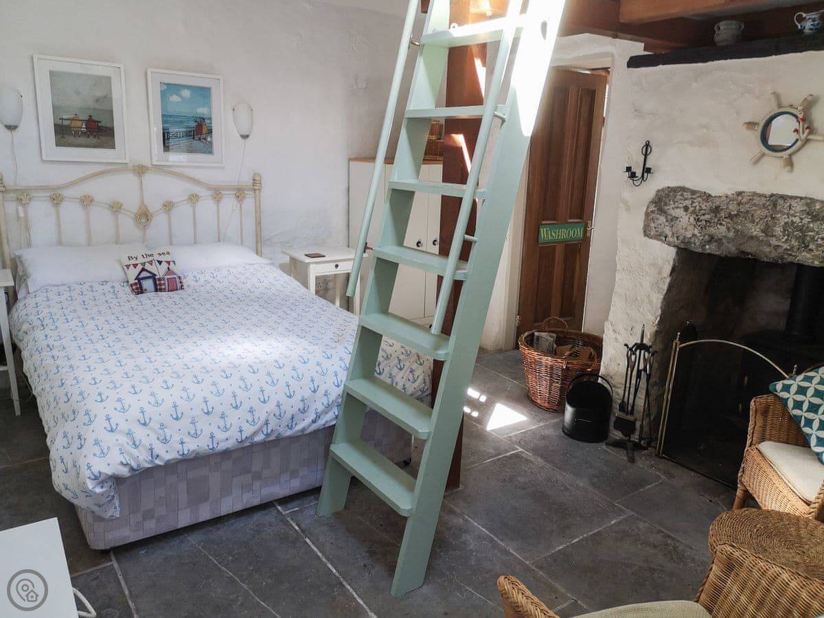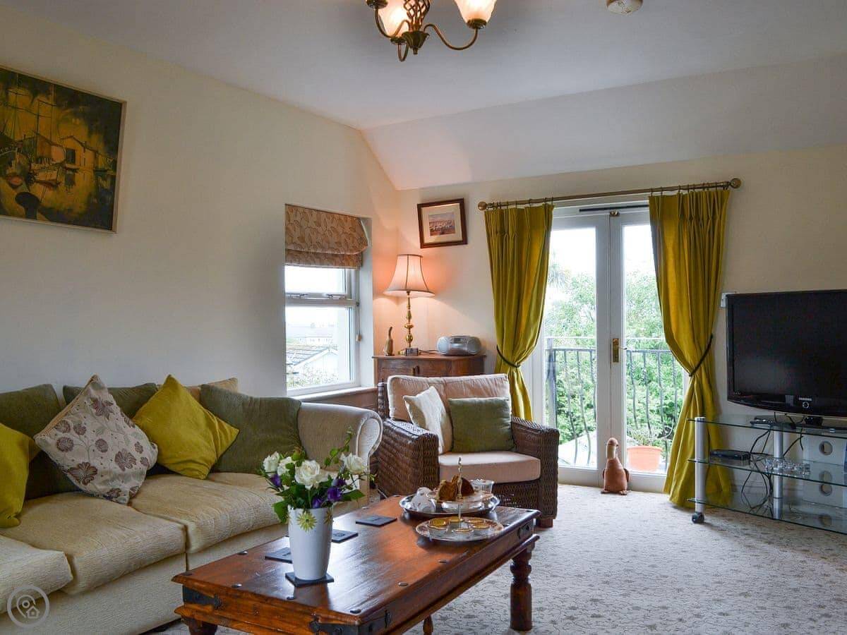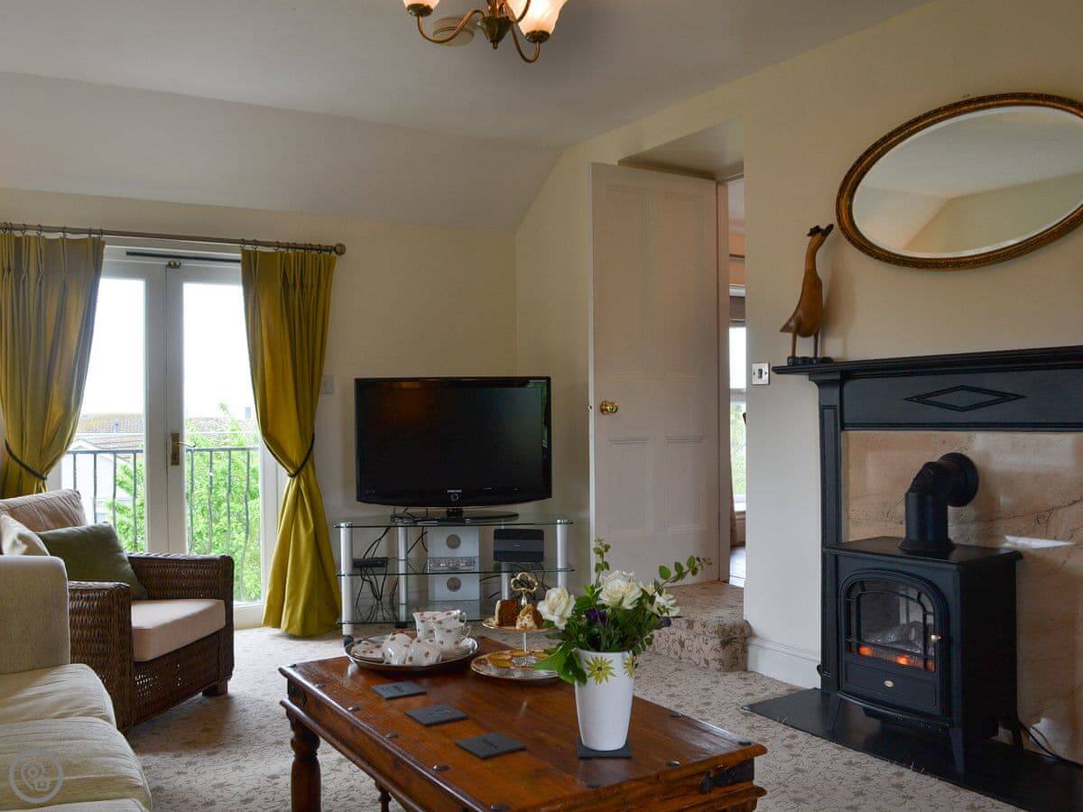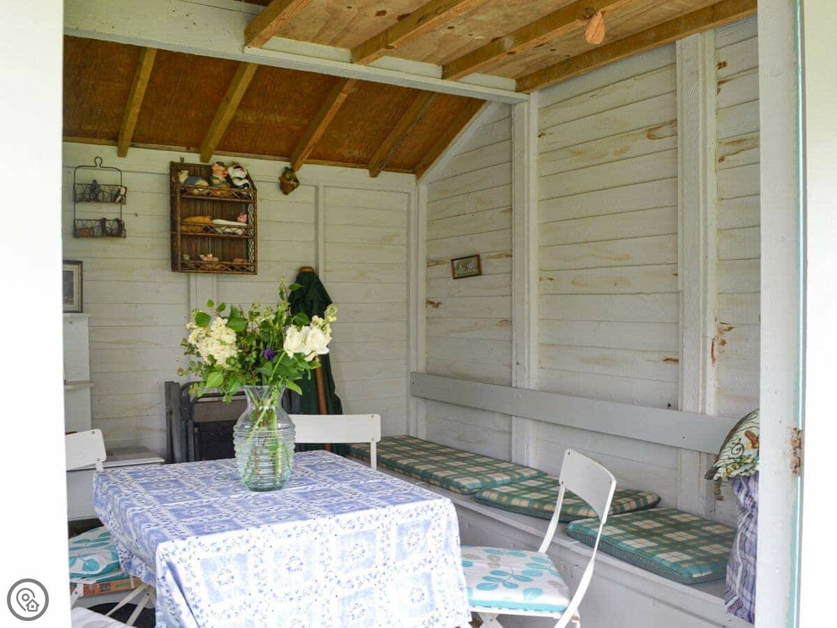 The main living room is upstairs. The view from there is good, you can see right over the sea to the mountains in Snowdonia. The garden is large and fully enclosed. There's a summerhouse too.