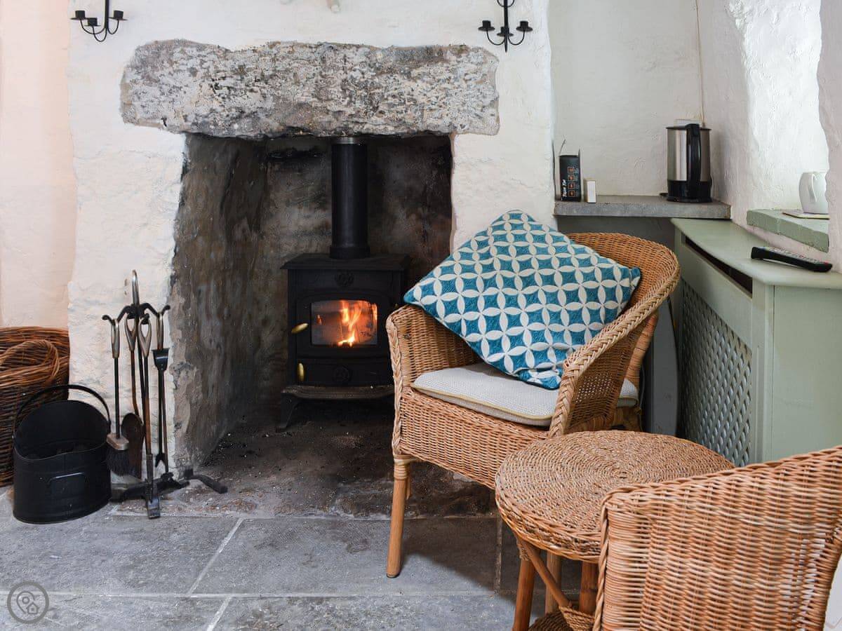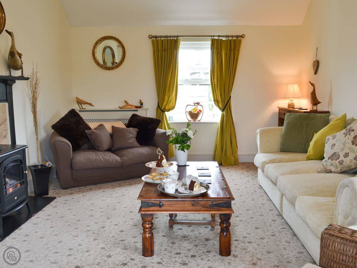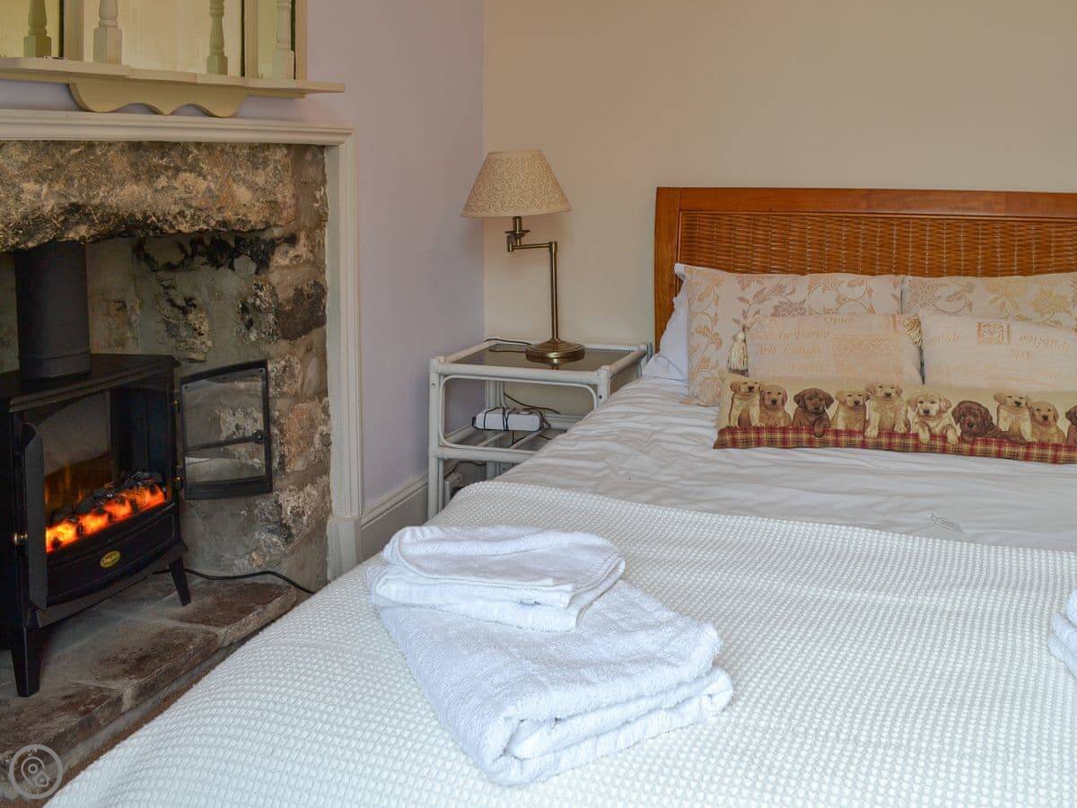 It's got two living rooms and two kitchens, which is why it works for bigger groups. There's also a separate building across the courtyard called The Bothy. That's a bedroom with its own shower room and a little electric woodburner effect stove. It's self-contained.