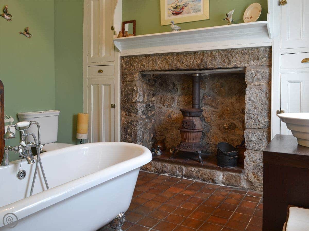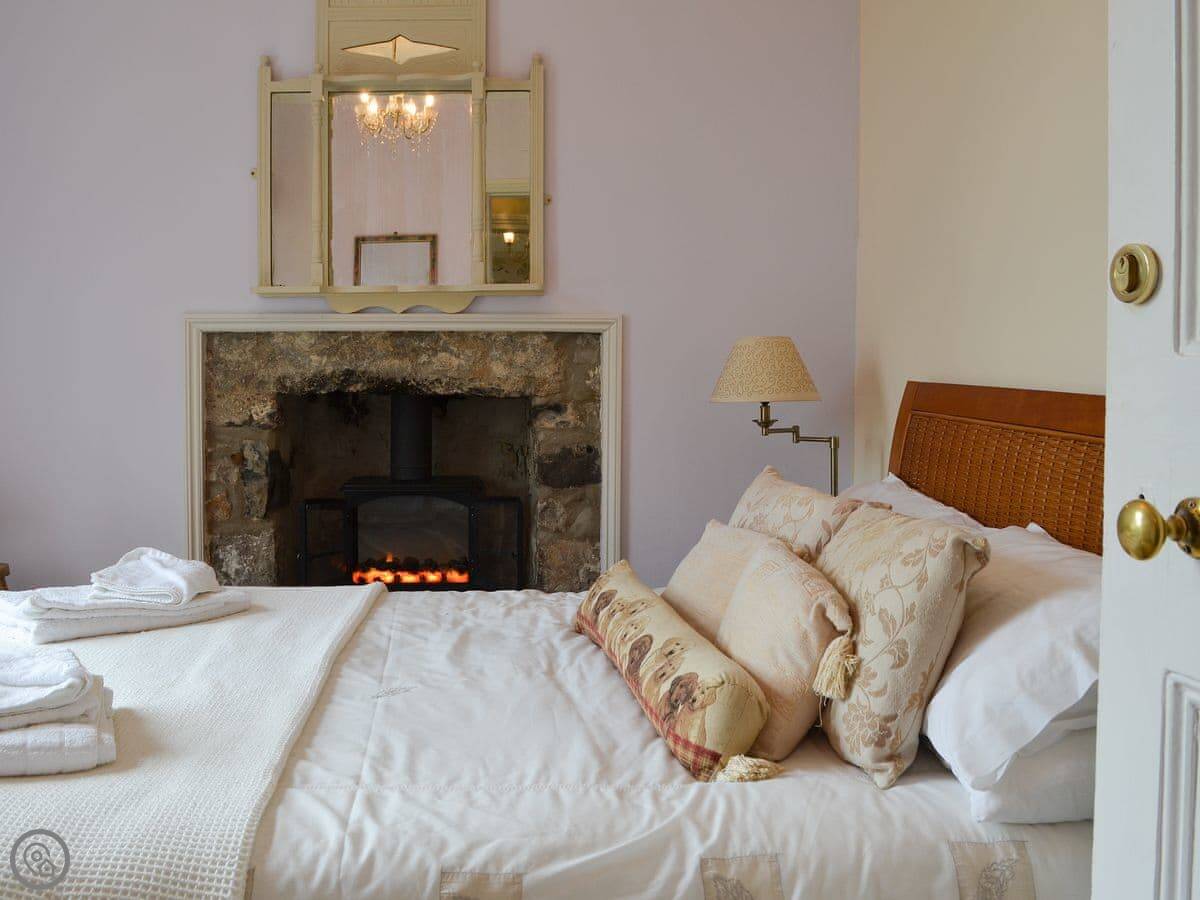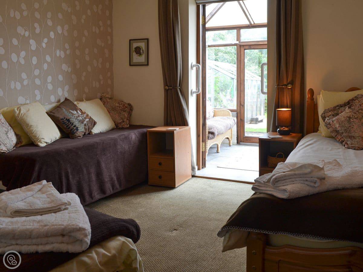 It's got two living rooms and two kitchens, which is why it works for bigger groups. There's also a separate building across the courtyard called The Bothy. That's a bedroom with its own shower room and a little electric woodburner effect stove. It's self-contained.