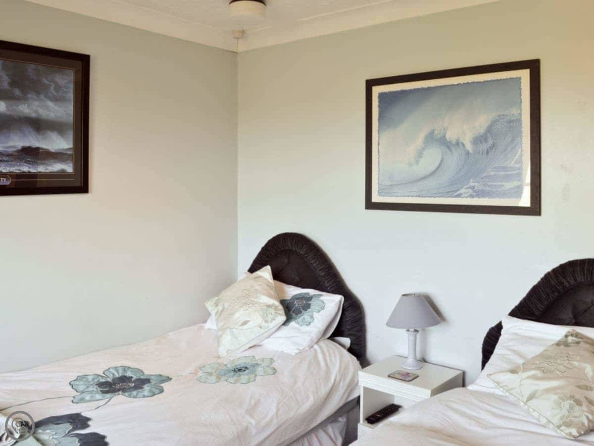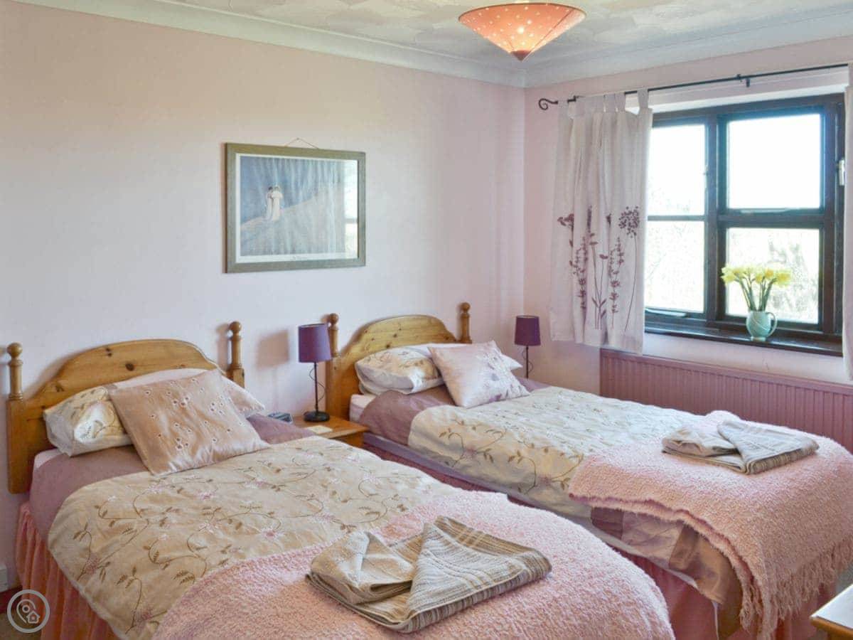 It sleeps six. Three bedrooms and two bathrooms. It's got a 4 Star rating, so it's well equipped and comfortable. Everything's included, bedding, towels, that sort of thing.