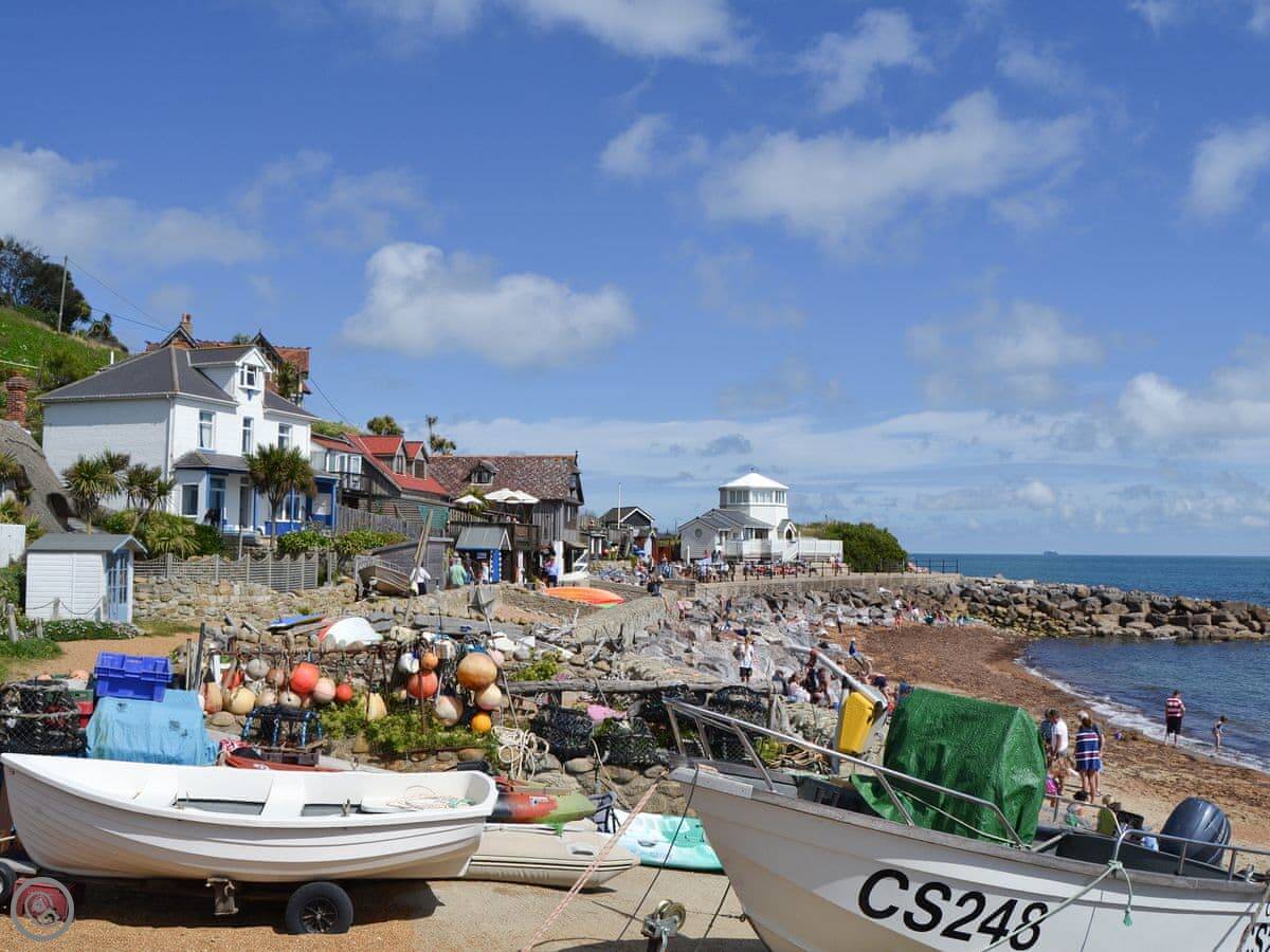 Totland Bay is about a mile away. It's a sandy and shingle beach, good for swimming. There's a pub, a cafe, and a restaurant up there. The sunsets from the beach are very good.
