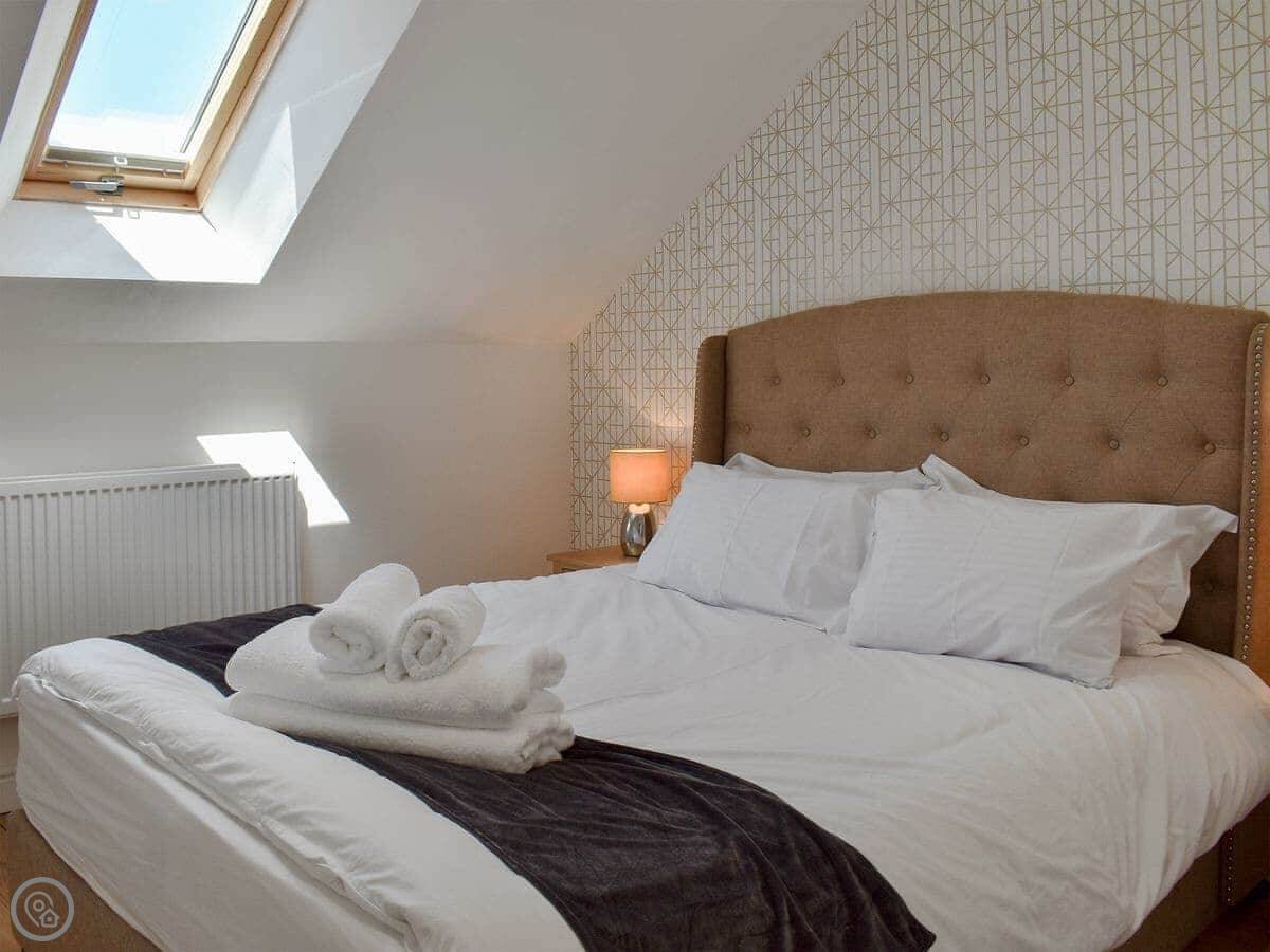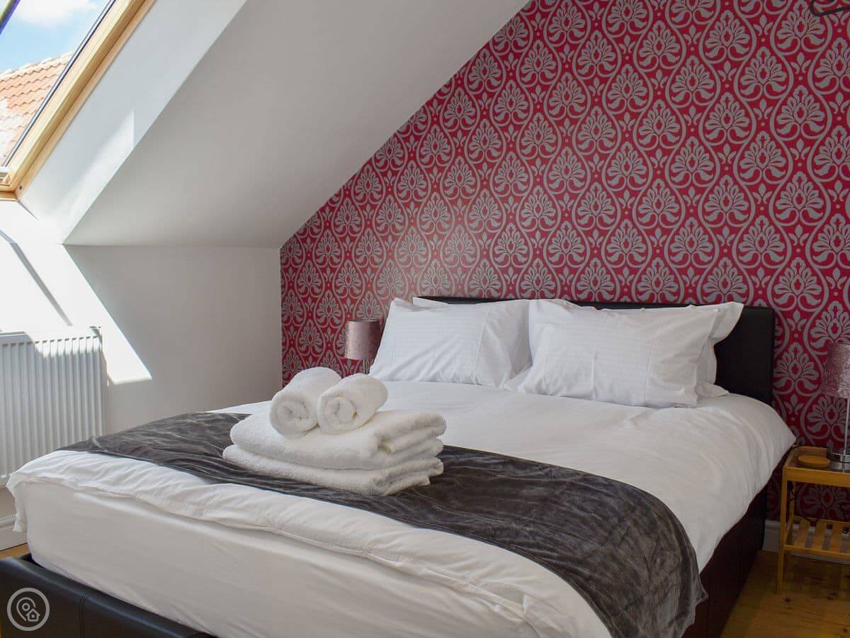 It's a four star place. It was all redone a few years ago so it feels fresh. The main living area is open plan, with the kitchen at one end. It's well equipped. There's a dishwasher and a washing machine. Bedding and towels are included.