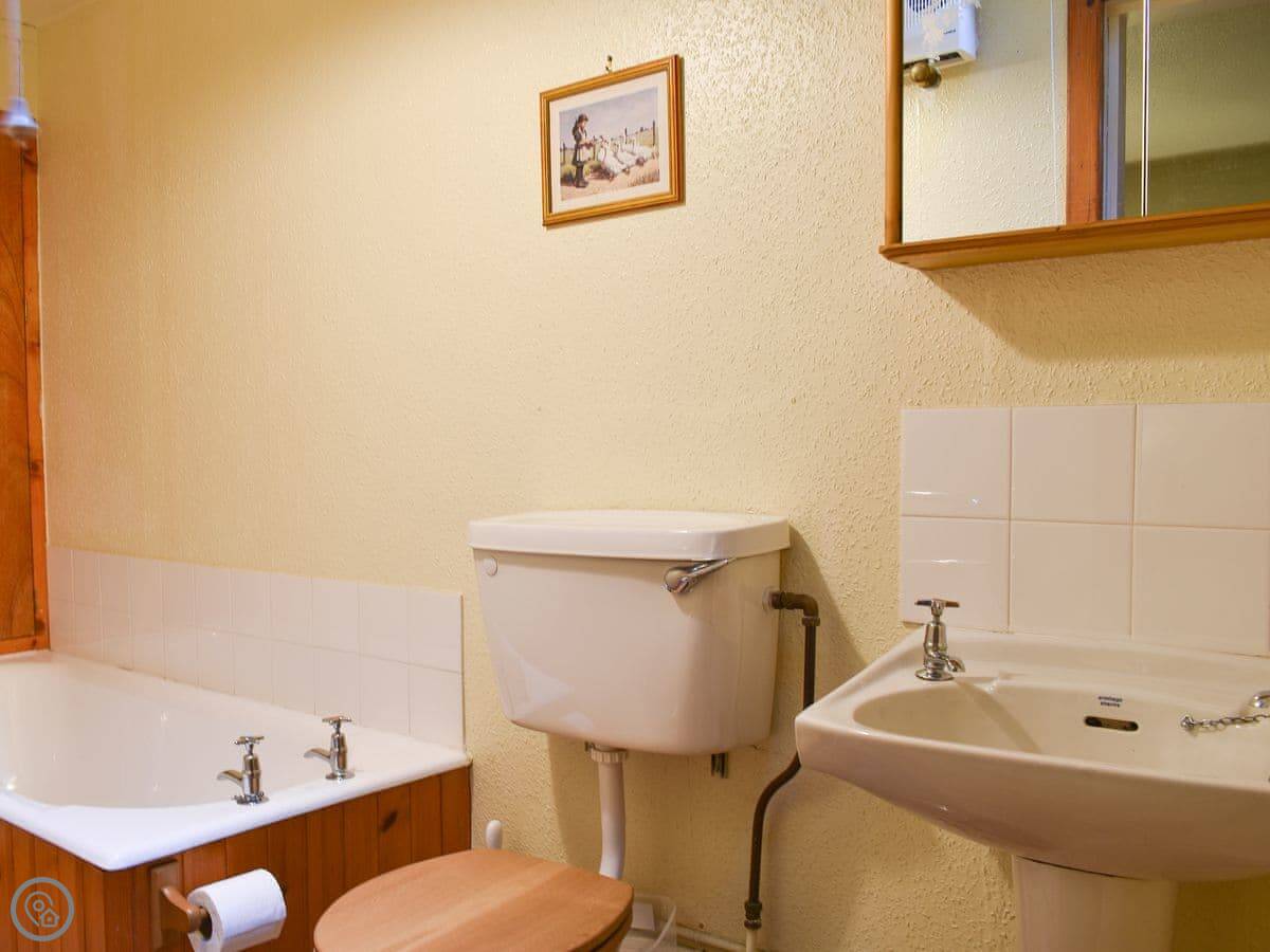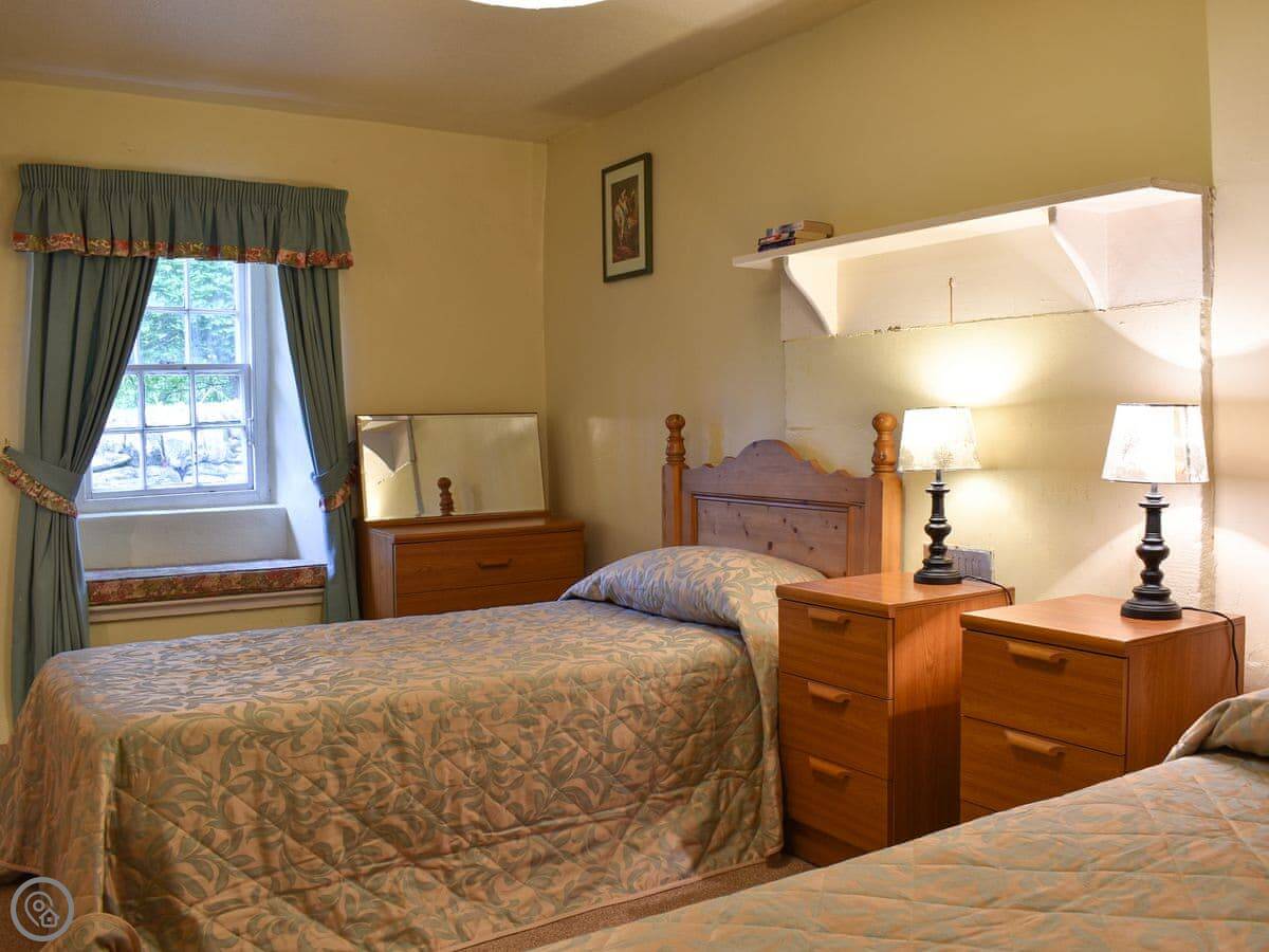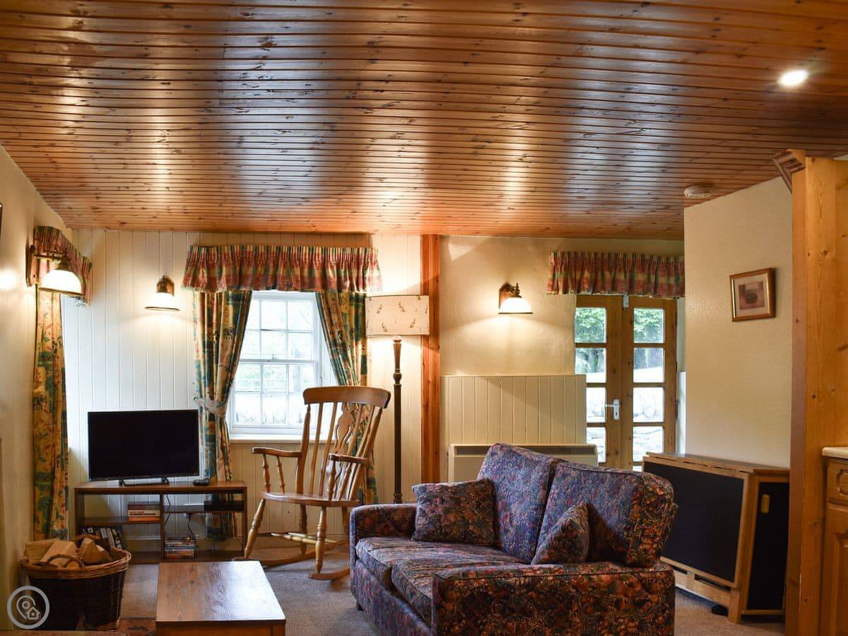 It sleeps four, with two bedrooms and two bathrooms. Both bedrooms have their own shower room. It has a 3 Star rating. It's comfortable and clean, not luxurious. The cottage is off-grid, powered by its own hydro system, so the electricity is from the stream. It just means you need to be a bit mindful with power, like not running the washing machine and the kettle at the same time. The water is from a spring, so it's lovely and soft.