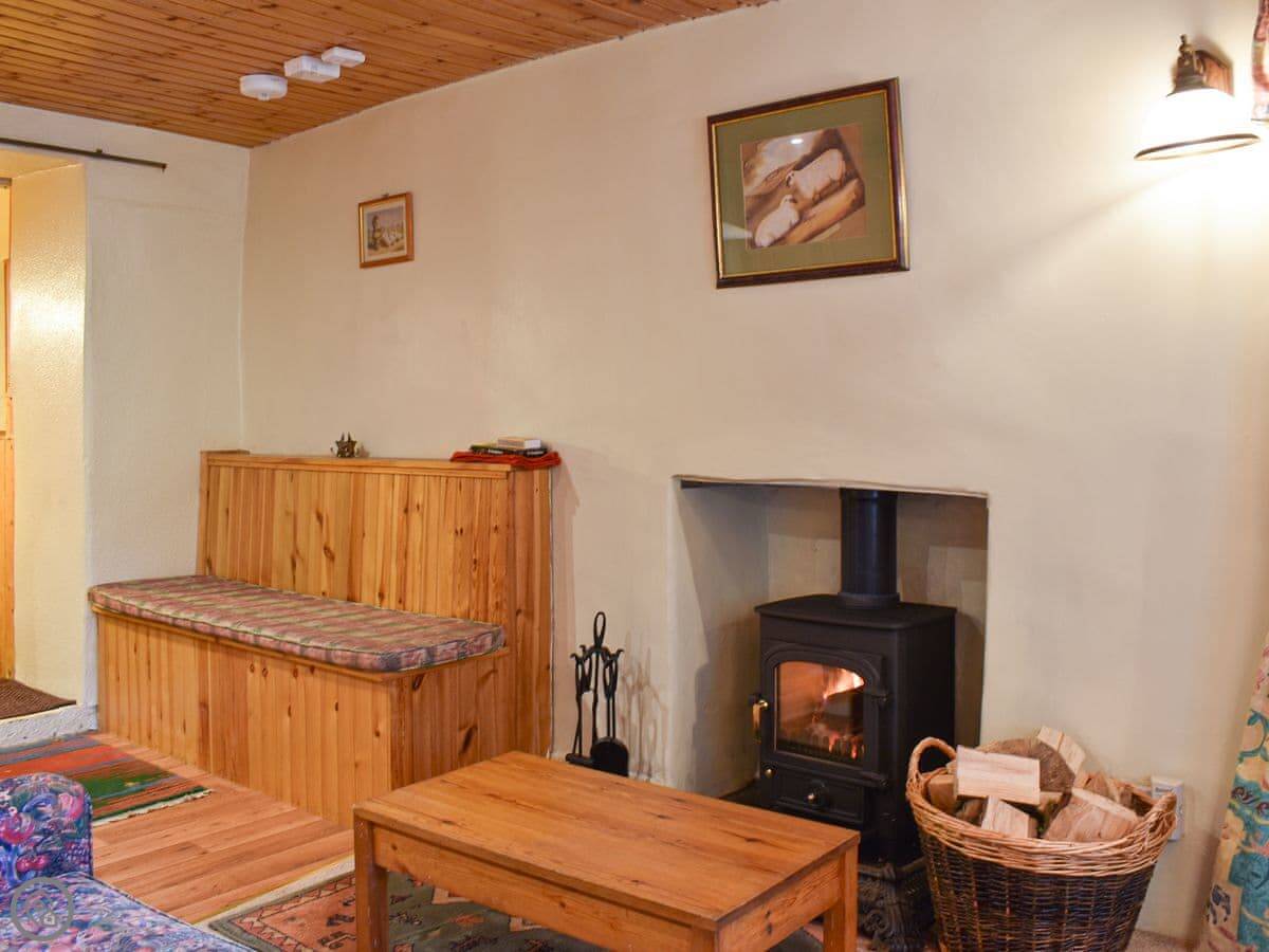 There's a multi-fuel burner in the living room. We supply the first bag of fuel. The kitchen is open plan with the living area. There's a TV, a washing machine, and parking right outside. Bedding and towels are included. We can provide a cot and a highchair.