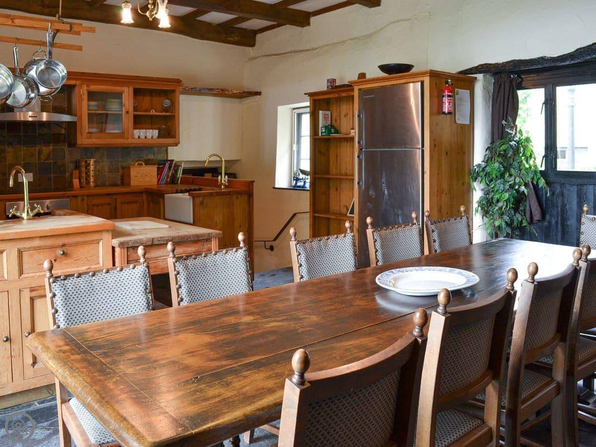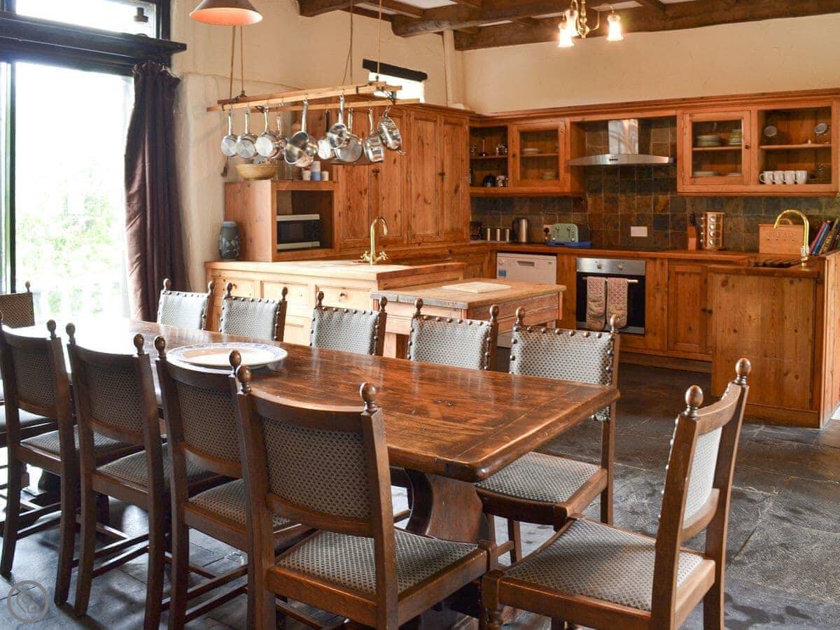 It sleeps ten people in six bedrooms. There are two bathrooms. The rating is 4 Star. It's a farmhouse so there's a lot of living space, which is good for a big group.