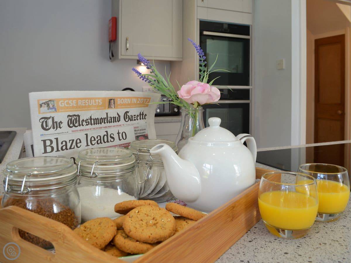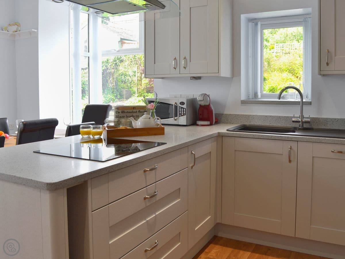 Cartmel is two miles away. It's famous for the racecourse, the sticky toffee pudding, and L'Enclume. Kendal and Windermere are about twenty minutes by car. For a bigger day out, Coniston, Hawkshead, and Ambleside are all within half an hour.