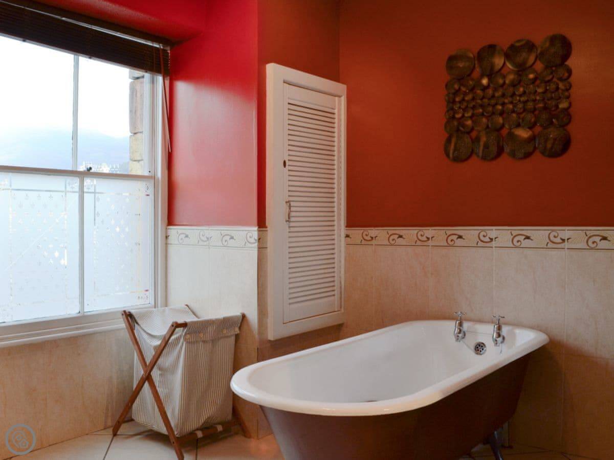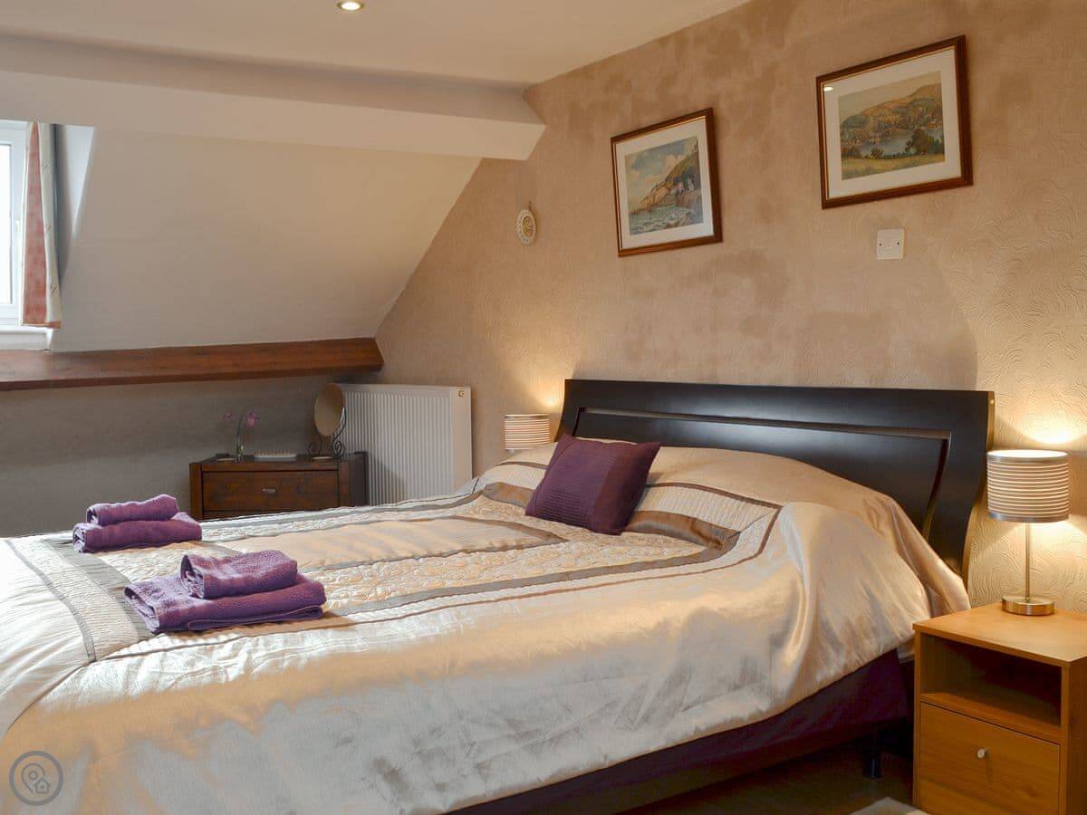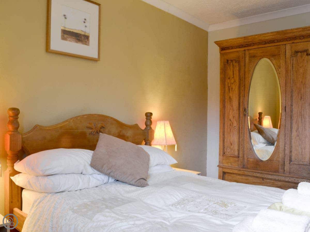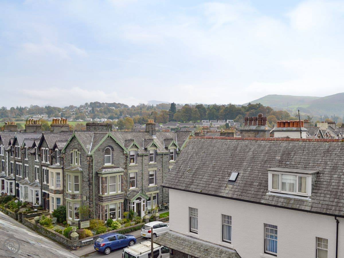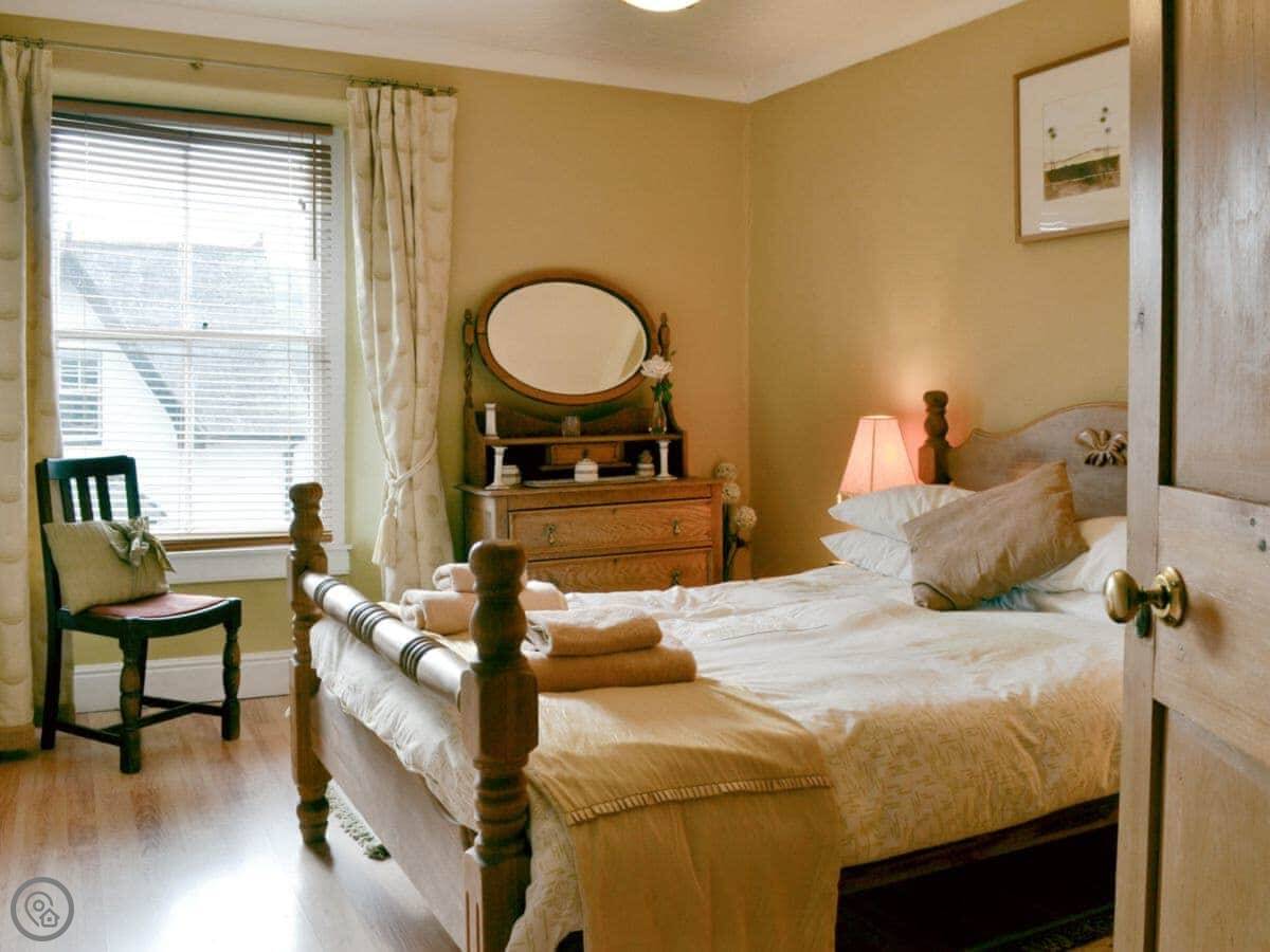 The main bedroom is right at the top. It has windows on two sides with a view of the fells. You can see Skiddaw from there on a clear day.