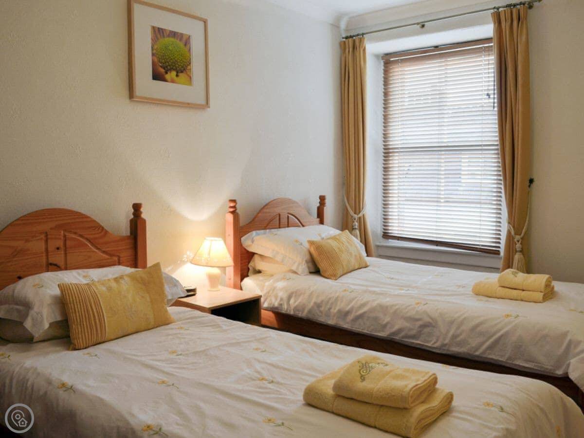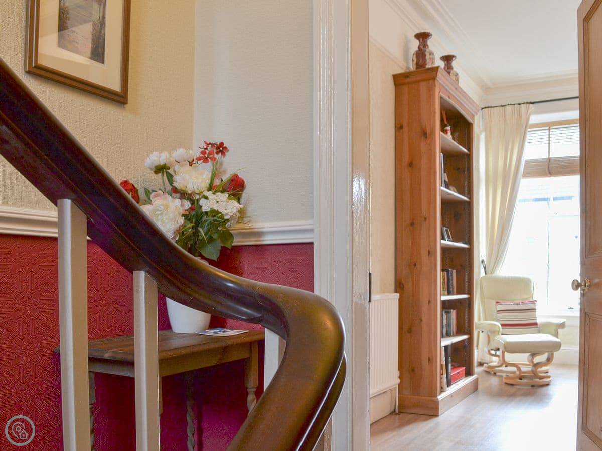 It sleeps six, across three bedrooms. One bathroom plus an extra toilet and basin upstairs. It's a 3 Star place, which means it's clean and comfortable but not modernised. It's tall, so there are a lot of stairs. They're the original stairs, so they're a bit steep and winding. The ceilings are high too, which makes it feel spacious.