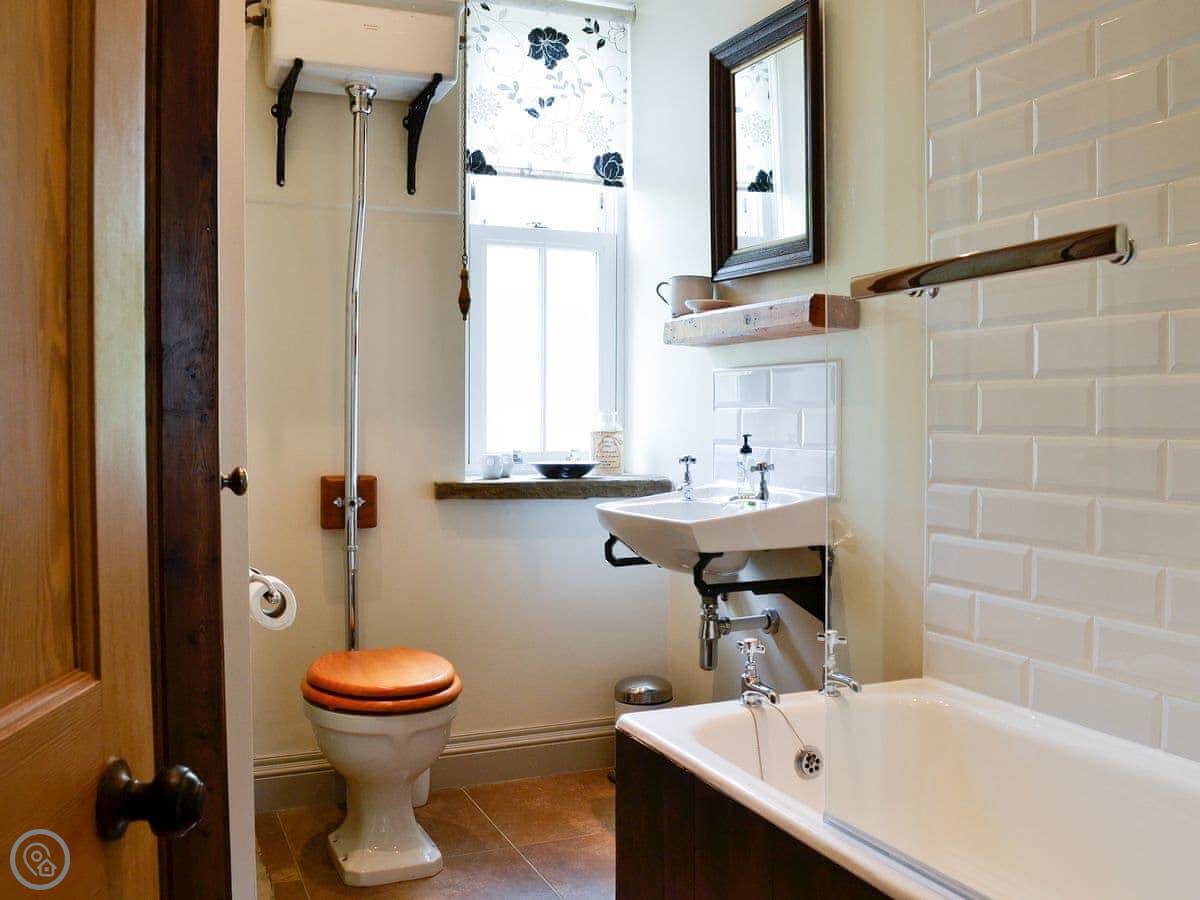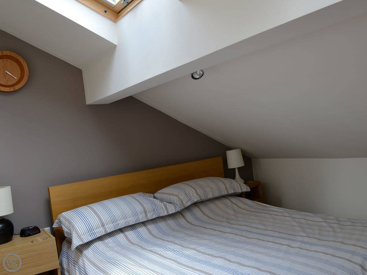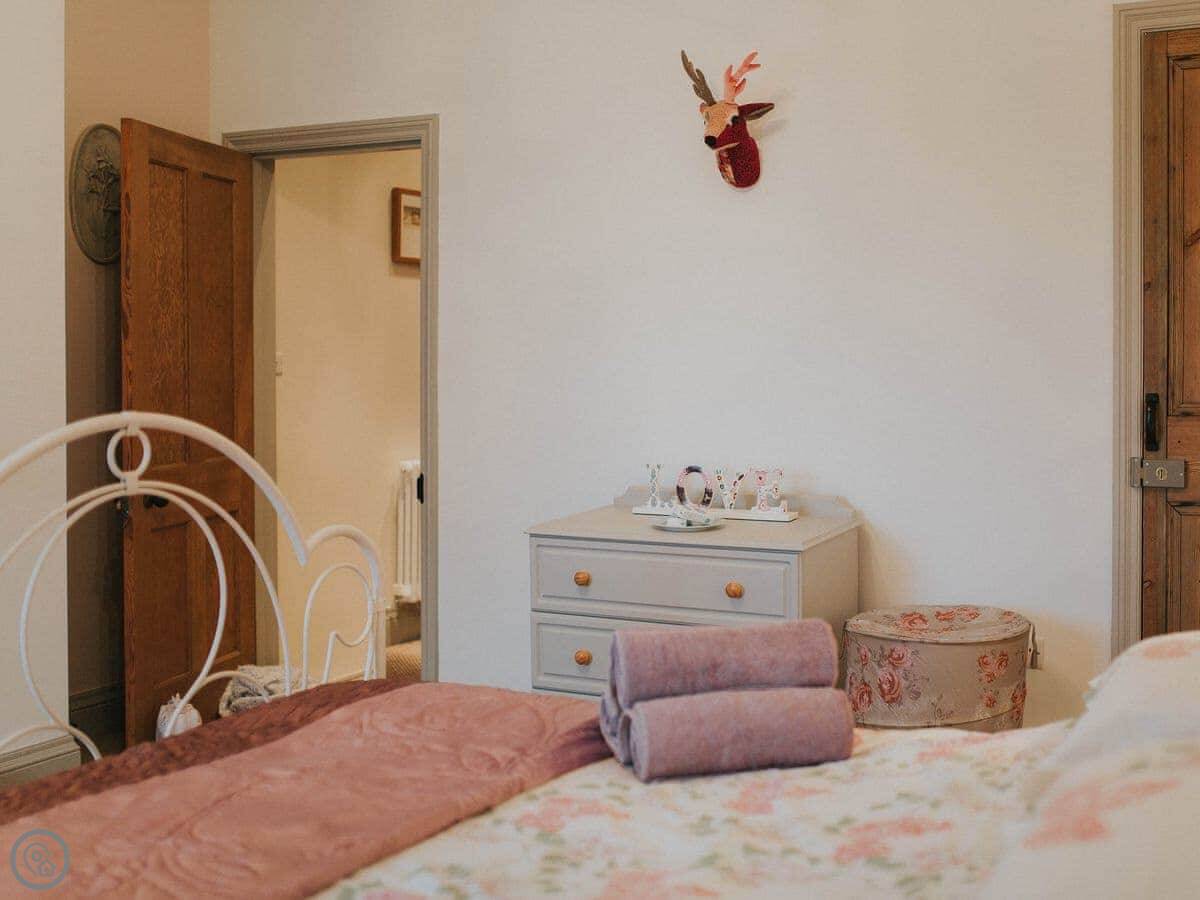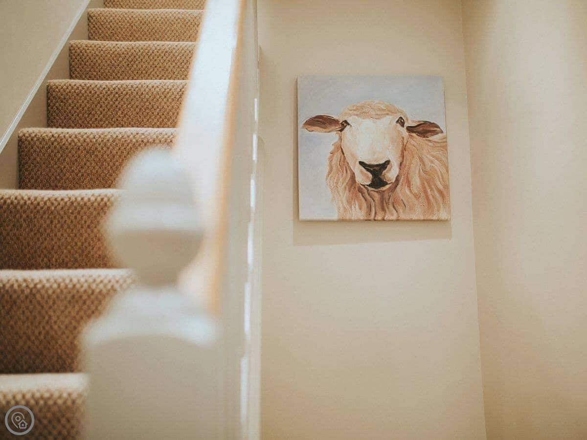 It sleeps six. There are three bedrooms and two bathrooms, which is handy. It's a 4 Star place. It's comfortable, but it's an old cottage. The stairs are steep. There's a wood burning stove in the living room.