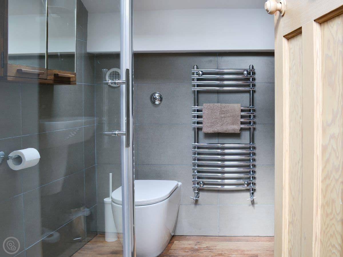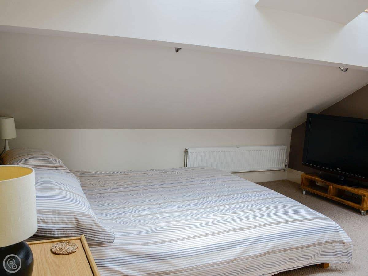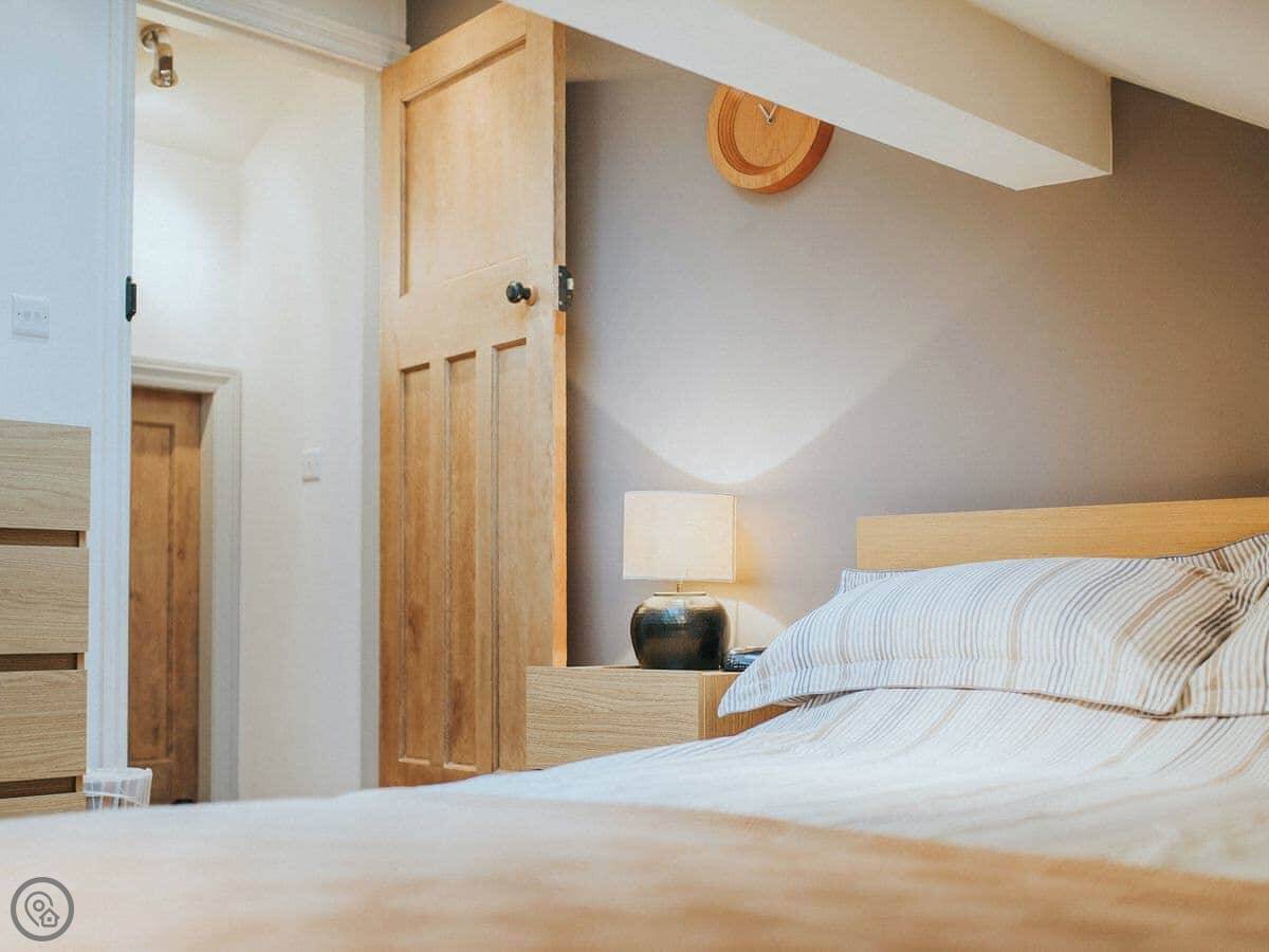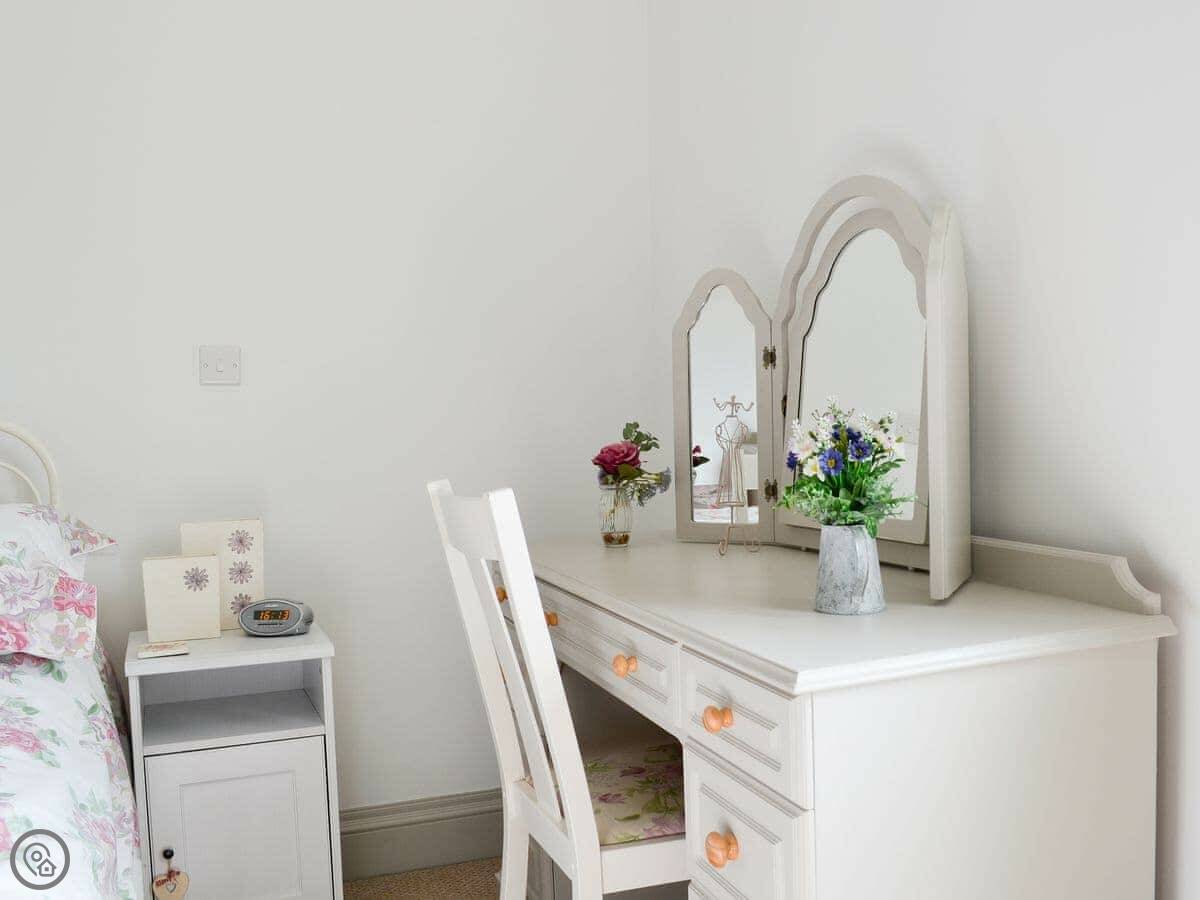 It sleeps six. There are three bedrooms and two bathrooms, which is handy. It's a 4 Star place. It's comfortable, but it's an old cottage. The stairs are steep. There's a wood burning stove in the living room.