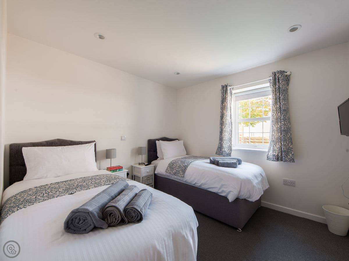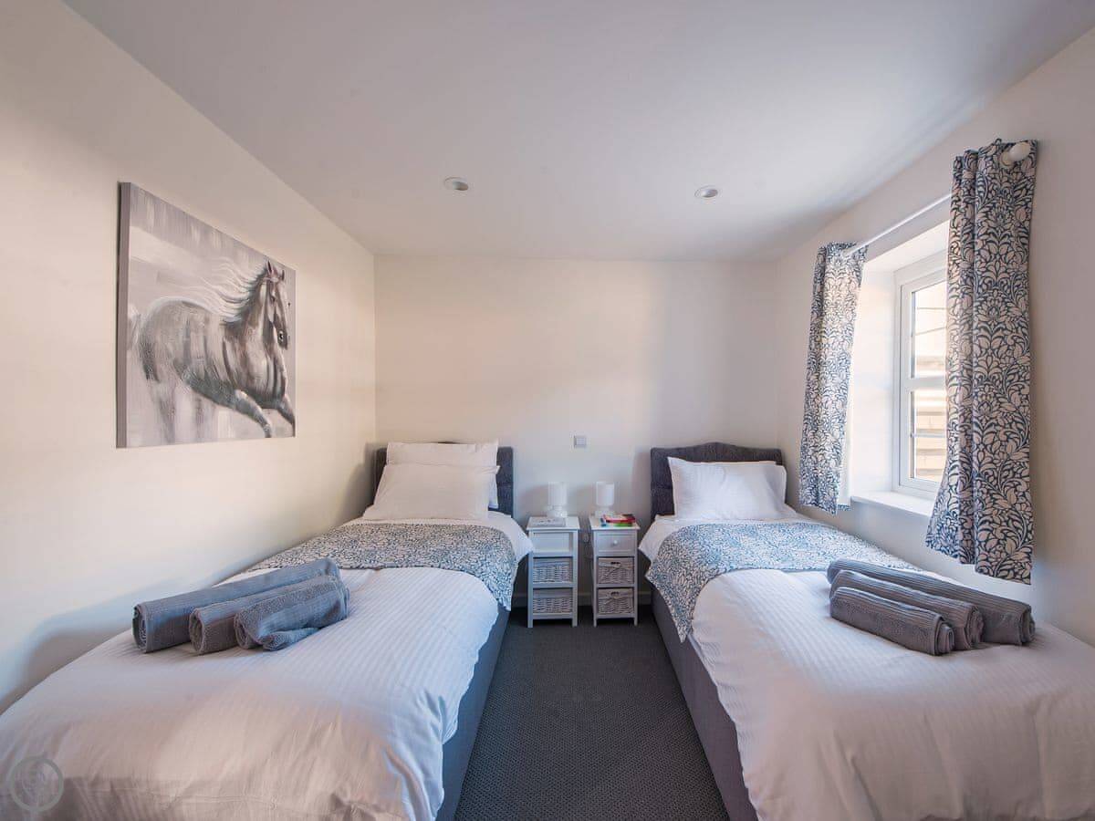 It sleeps four. Two bedrooms, both with a double bed. Two bathrooms, which is handy. One is downstairs. It's got a 4 Star rating. The furnishings are good. It's clean and comfortable.