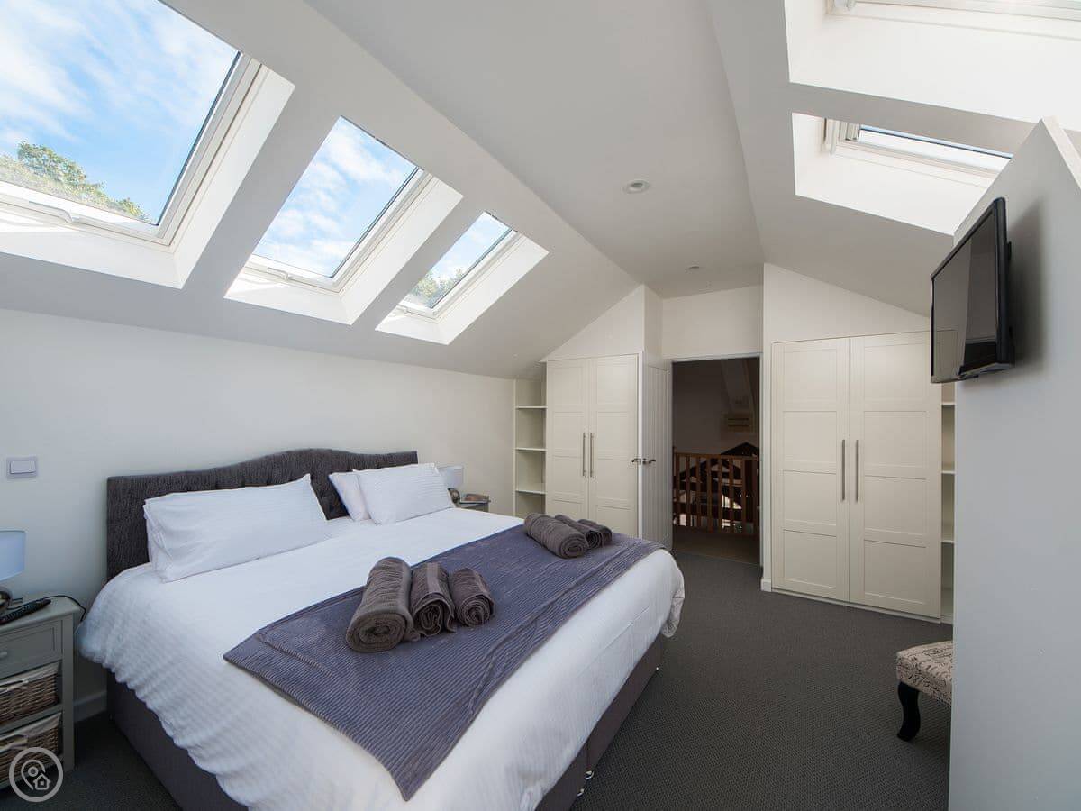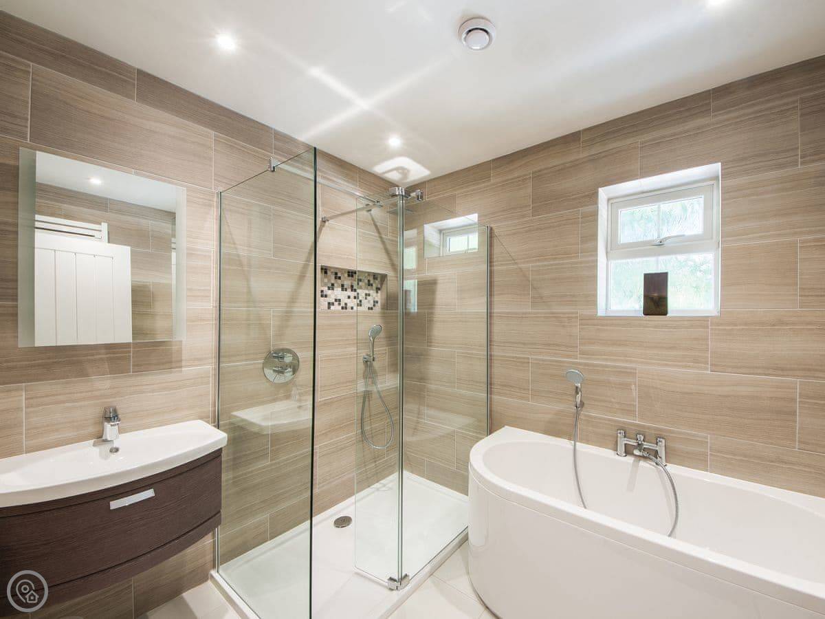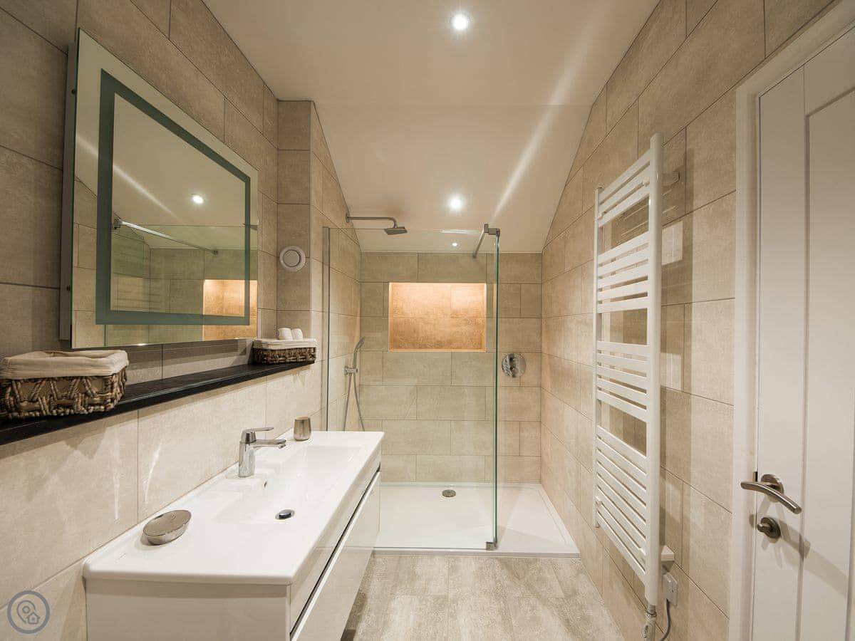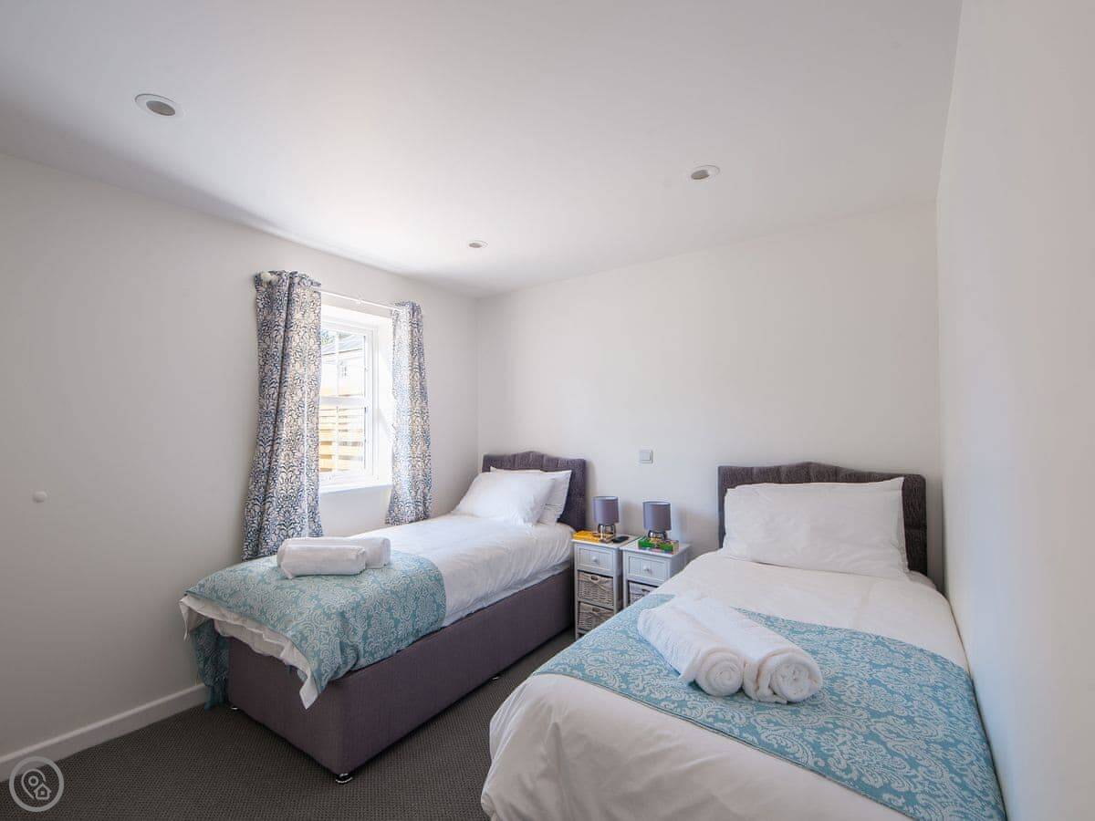 It sleeps four. Two bedrooms, both en-suite, so you get two bathrooms. The rating is 4 Star, so it's comfortable and well looked after. It's all on one level, which makes it easier if steps are a problem. The doorways are wide enough for a wheelchair too.