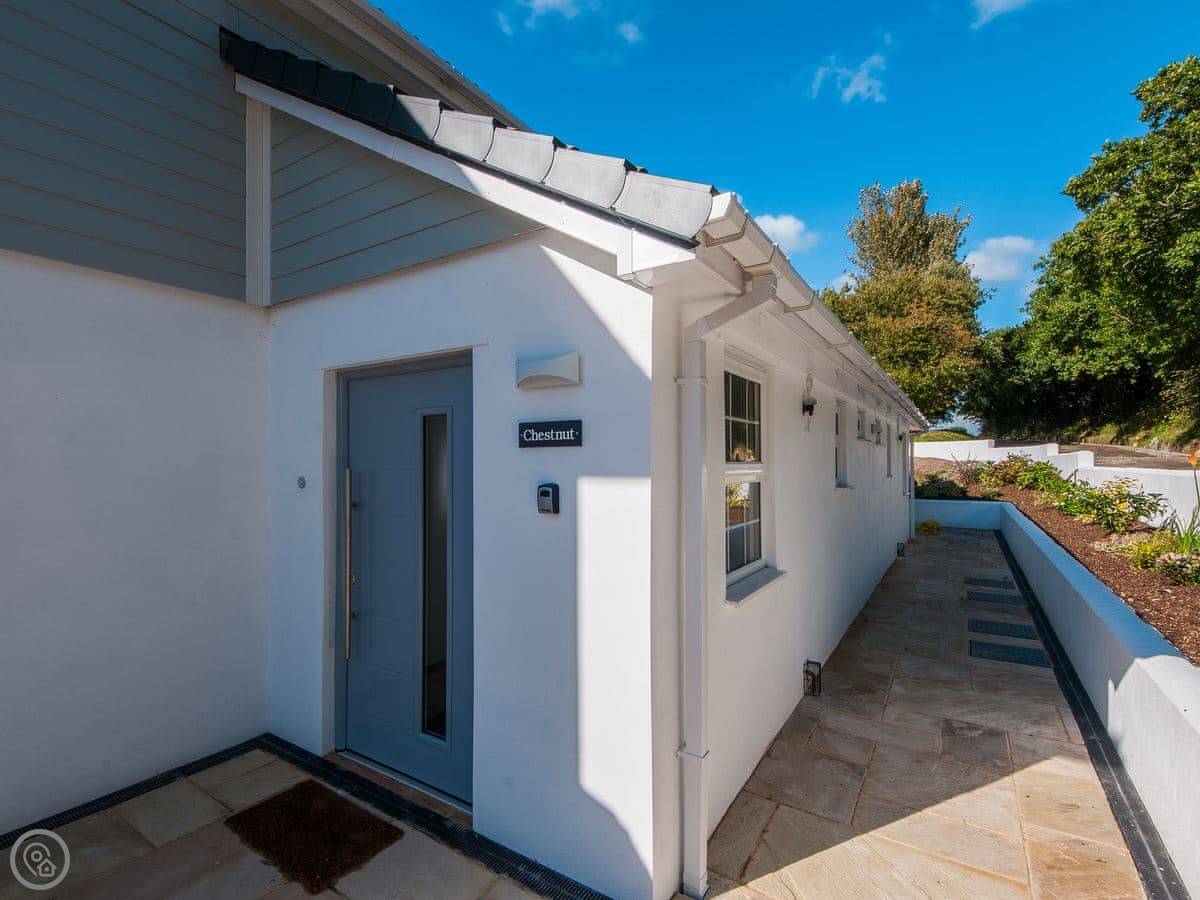 Chestnut Cottage is one of the cottages at Woodside Stables in Carkeel, near Saltash. It's in a quiet spot, up a track off the A38. You've got your own enclosed garden with the hot tub, and there are 27 acres of shared grounds around you with a big lawn, a play area, and a woodland walk.