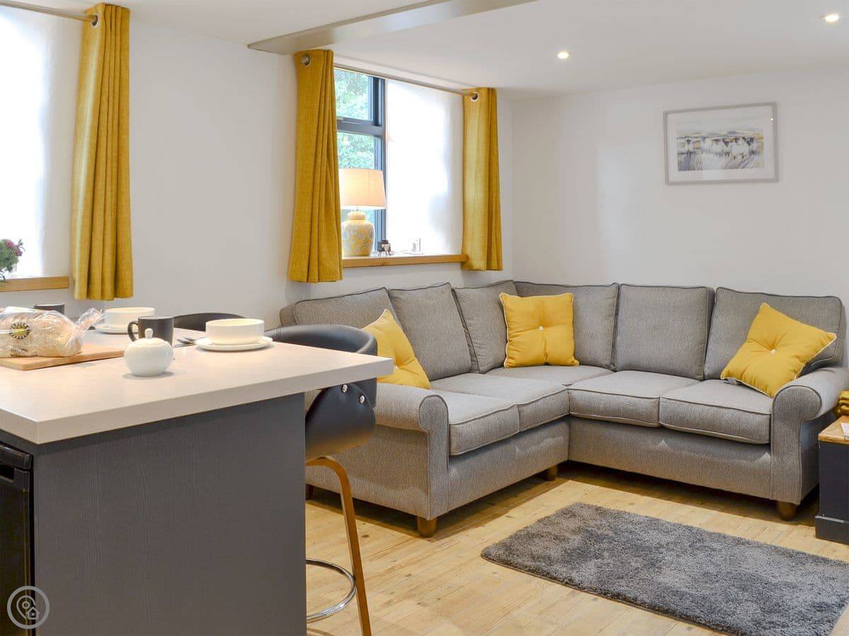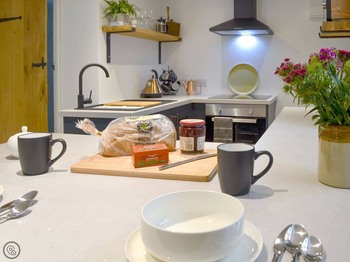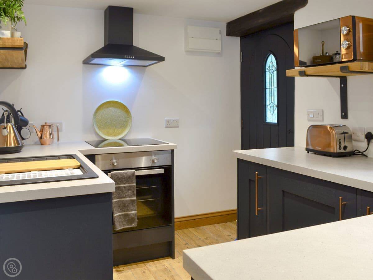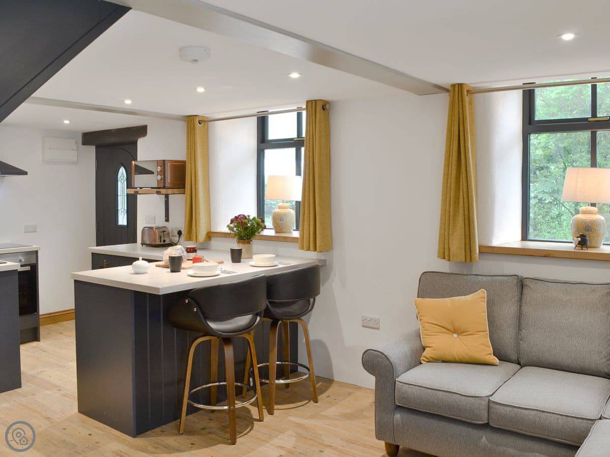It sleeps four. Two bedrooms, one bathroom with a shower. The rating is 5 Star, which means it's been done to a high spec. It's open plan downstairs. There's a wood burner for cooler nights. The stairs are okay, but they're cottage stairs, so a bit steeper and narrower than a modern house.