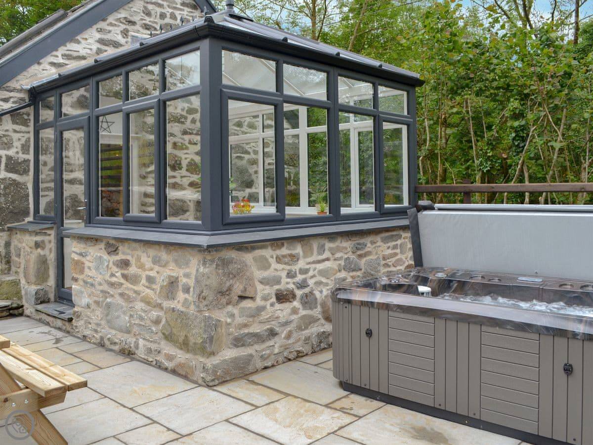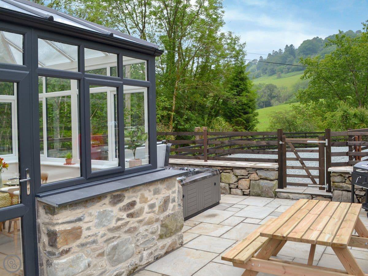 There's a hot tub on the patio. It's a proper one, not a plastic tub. You get that view while you're in it.