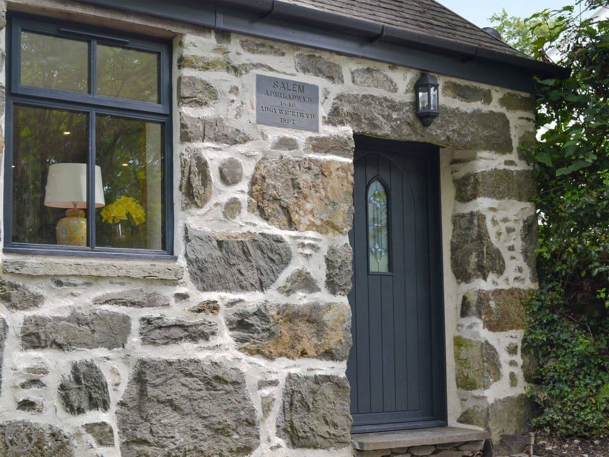 Ysgoldy Salem is a cottage near Cwm Cewydd, up a lane off the A487. It used to be the village Sunday school and reading rooms. It's detached, with the owner’s house next door. You get your own garden and patio. The views are over fields towards the hills.