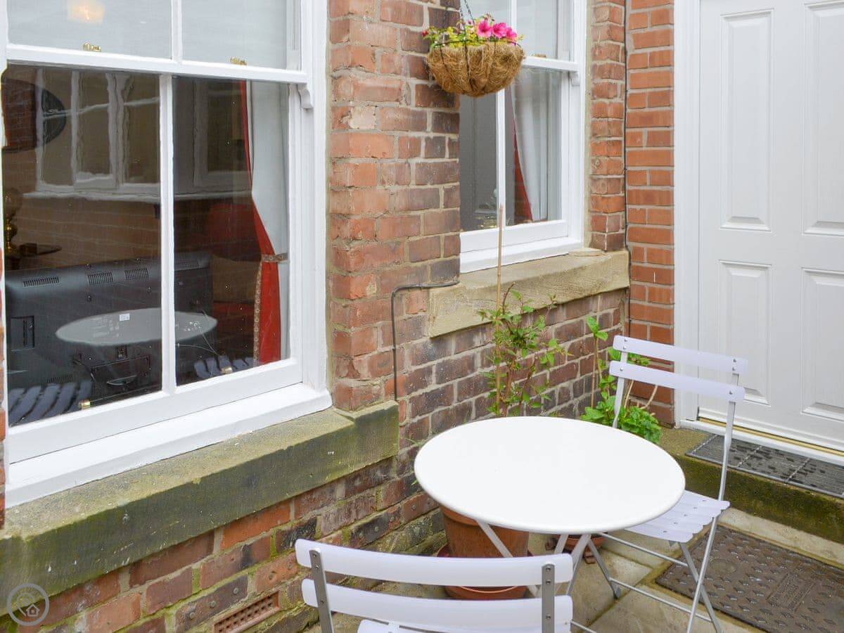 The front door has a step, but it's not a high one. The garden is enclosed and private.