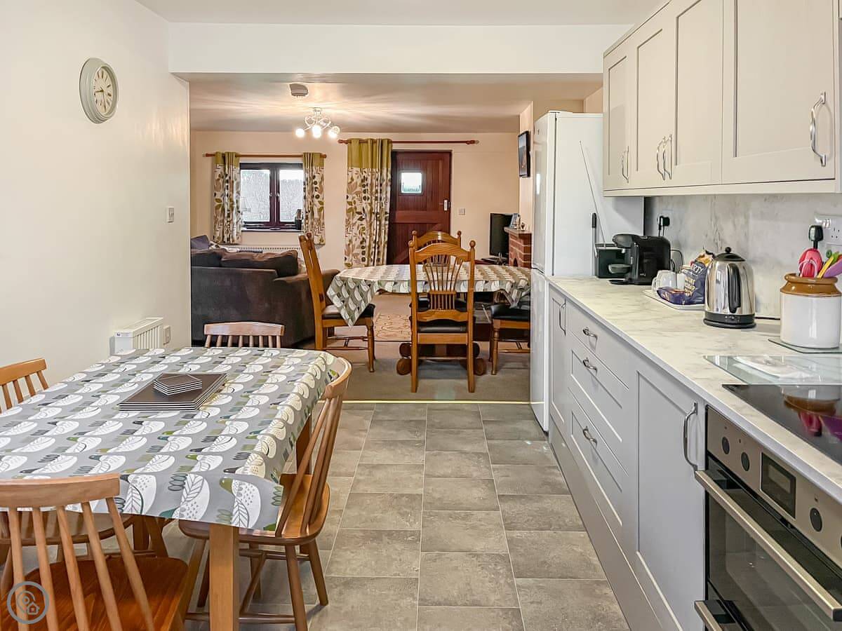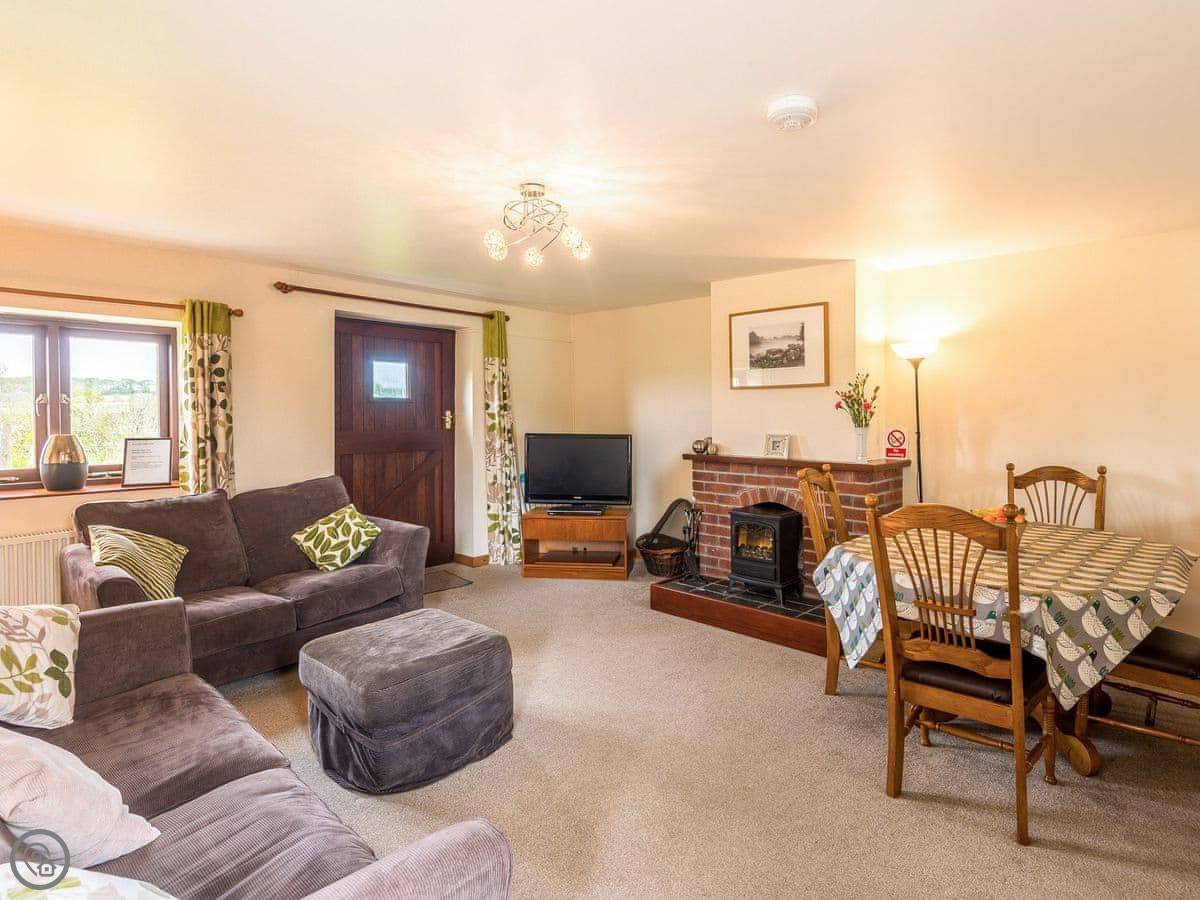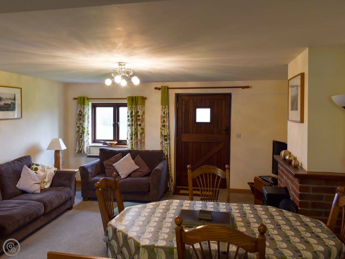 Cider Cottage boasts a front hallway leading into a spacious living space with open fire and electric coal effect fireplace. The room has a dual aspect with views from the rear across fields to the village church.