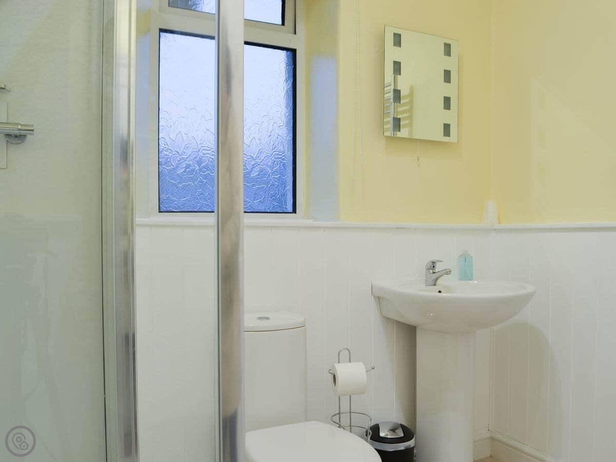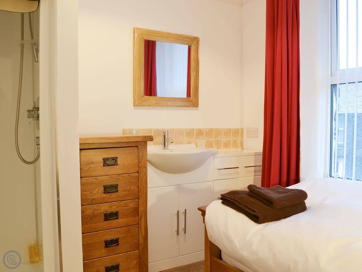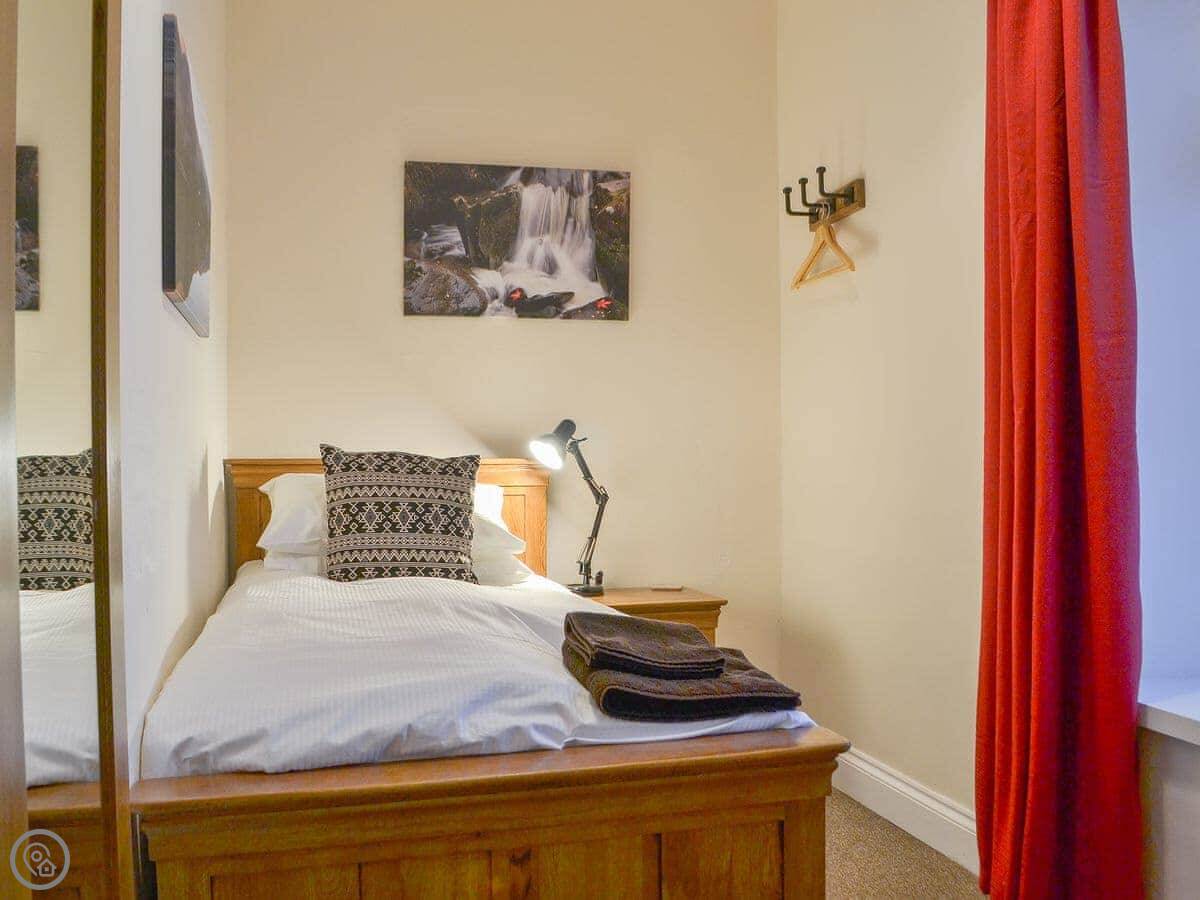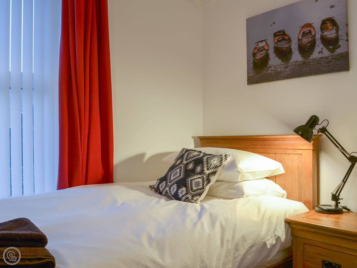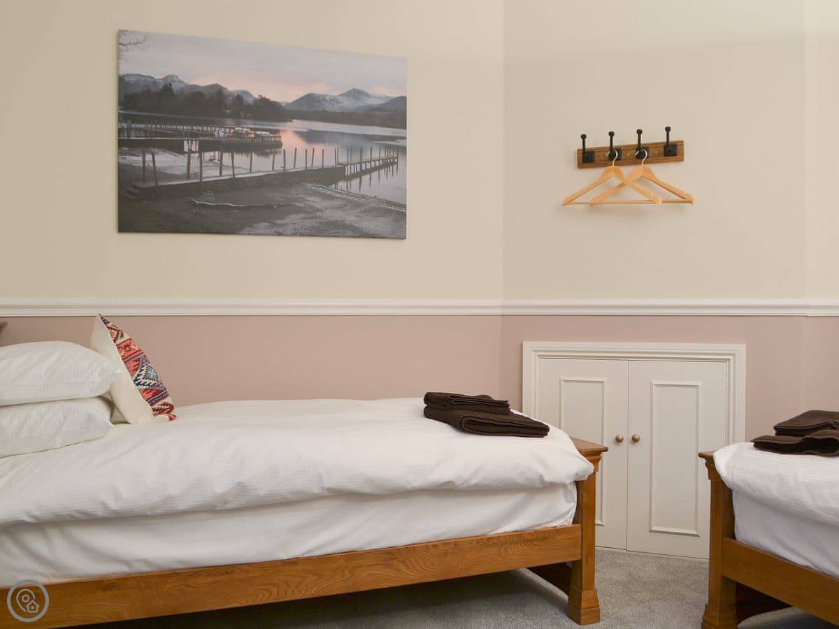 Four of the bedrooms are upstairs. There's a twin bedroom on the ground floor. That's useful if someone doesn't want to do the stairs. The stairs are fine, just normal.