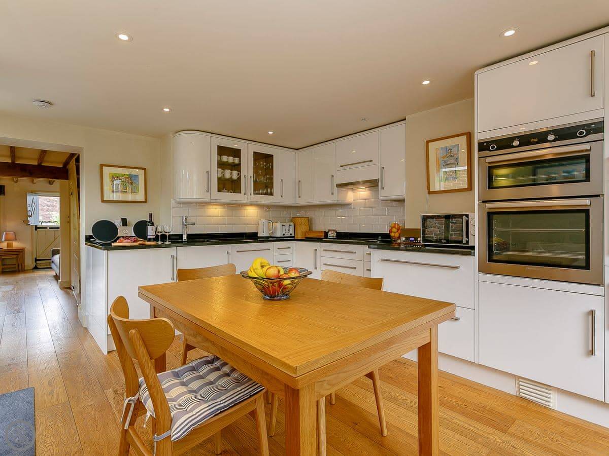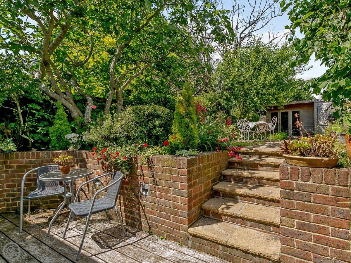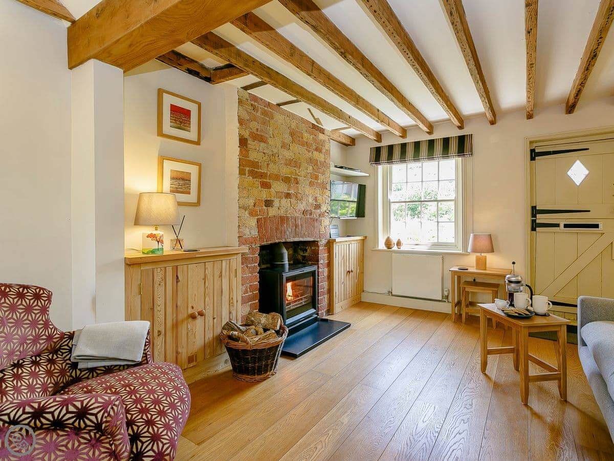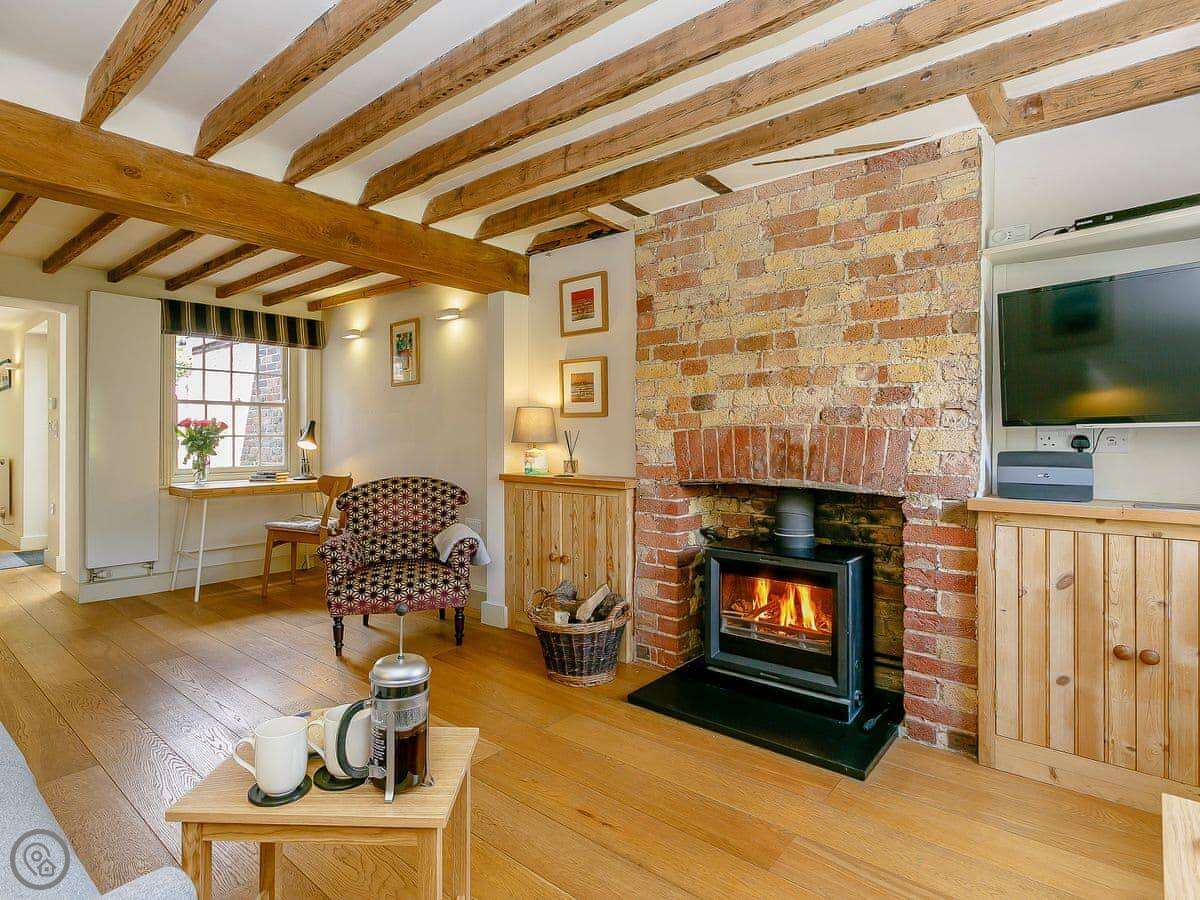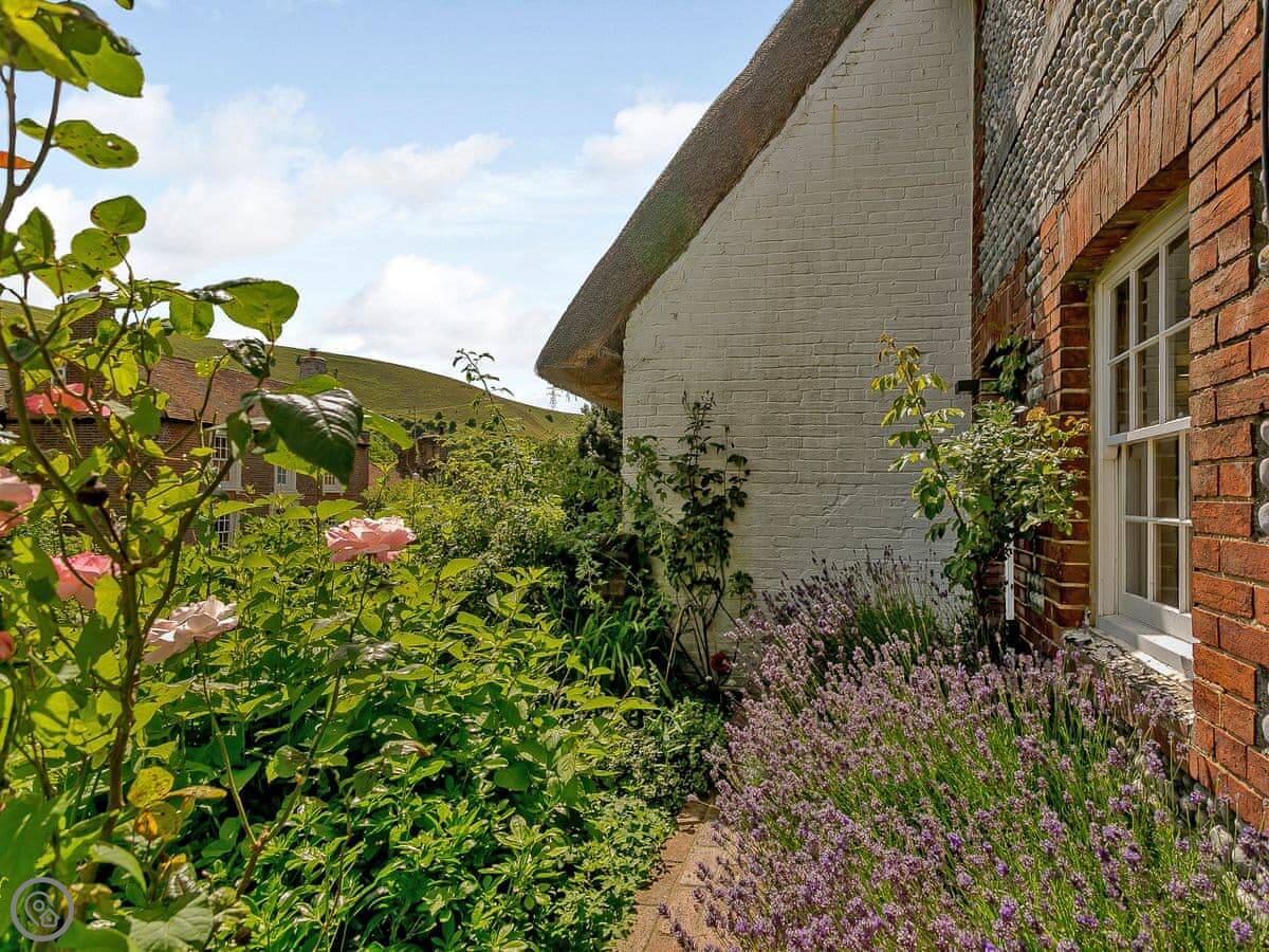 Rose Cottage is in Fulking, right at the bottom of the Downs. It's a terraced place, one of a row. It's been done up. Wooden floors, beams, there's a wood burner. The kitchen has those big folding doors that open onto the garden. The garden is enclosed, which is good if you're bringing a dog.