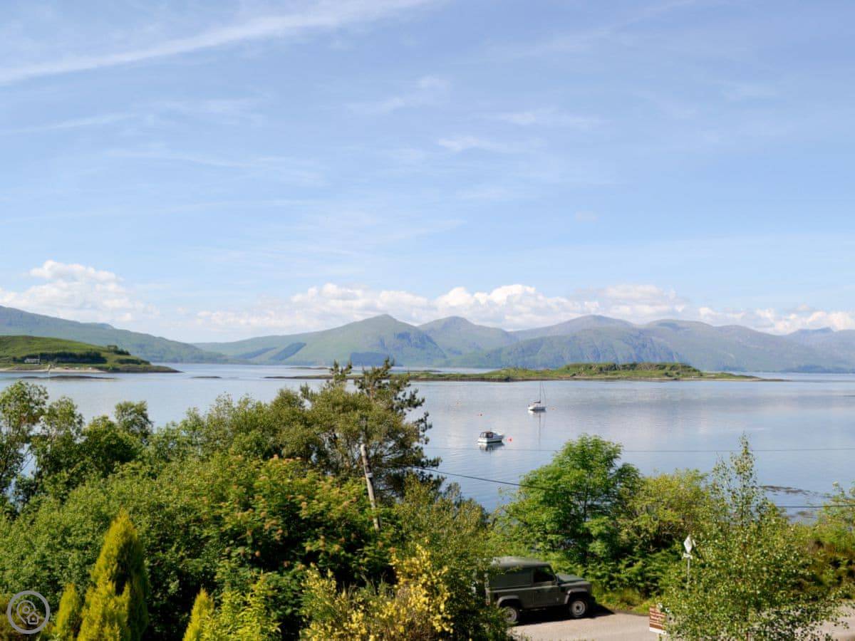 Enjoying a fabulous shoreline location with panoramic views over Loch Linnhe, from Mull and Lismore to the Morvern Hills, this compact balcony apartment forms a wing of the owners house and artists studio. Ferries leave here for Lismore. Oban, 18 miles, Fort William, 26 miles. Sandy Airds bay, 15 minute shoreline walk via Clach Thoull, an SSSI. Boat and cycle hire locally. Seafood restaurant/pub 200 yards. Shop/PO 300 yards.
