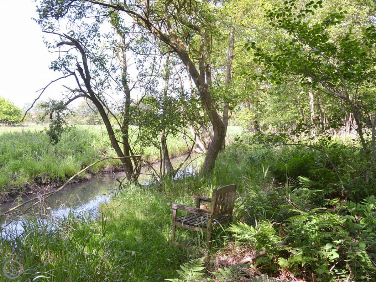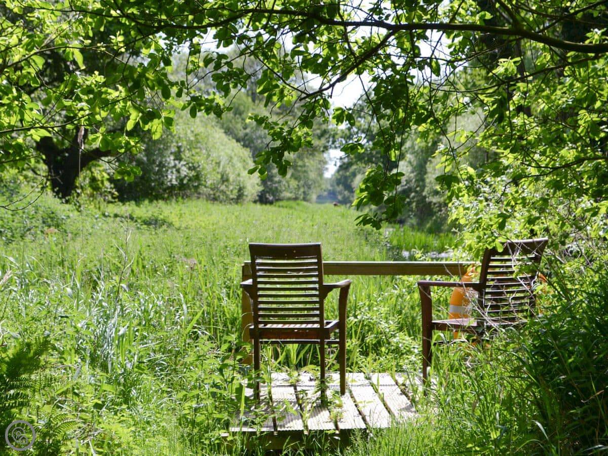 You're welcome to walk around our land. There's about ten acres of woodland and a bit of riverside decking to sit by. It's a Site of Special Scientific Interest, so there's a lot of birdlife.