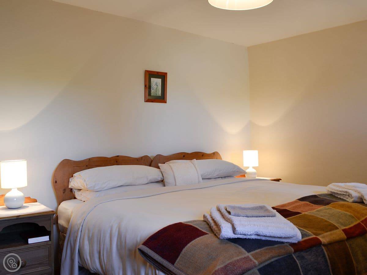 It sleeps four. Two bedrooms downstairs, both a good size. One has a double bed, the other has a zip-link bed that can be a super king or two singles. There's also a pull-out bed for a child if you need it. The bathroom is down there too. Everything is upstairs: the kitchen, dining table, and living room in one open space. It's a 4 Star, so it's comfortable and well-equipped.