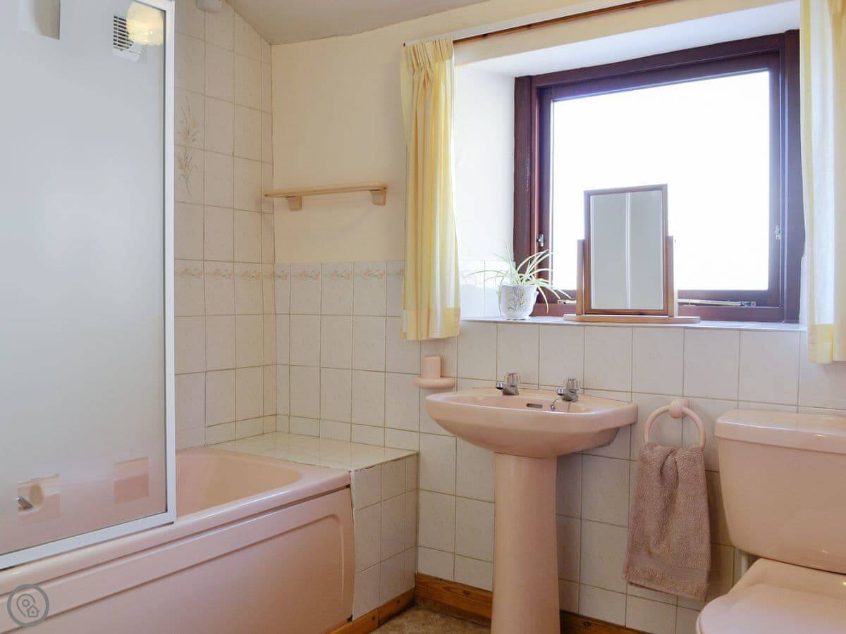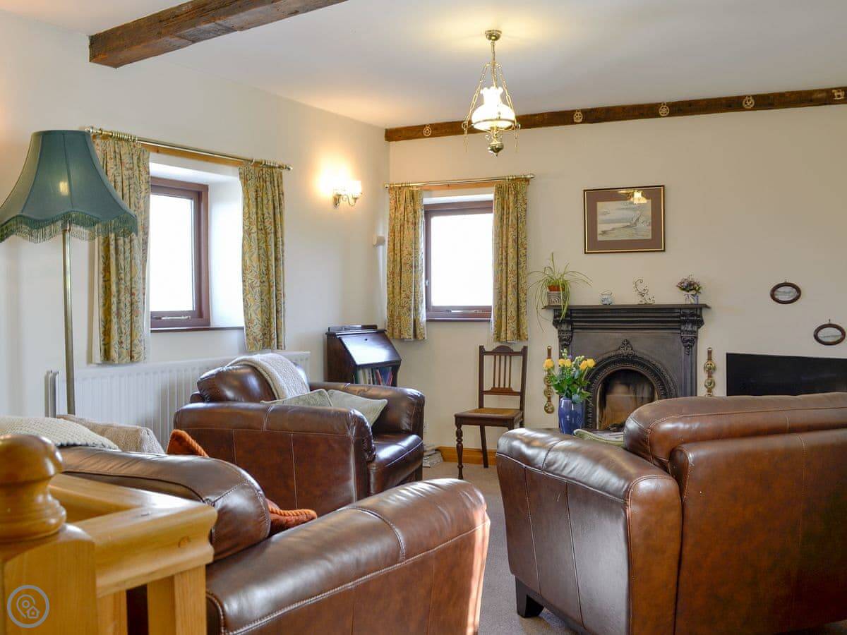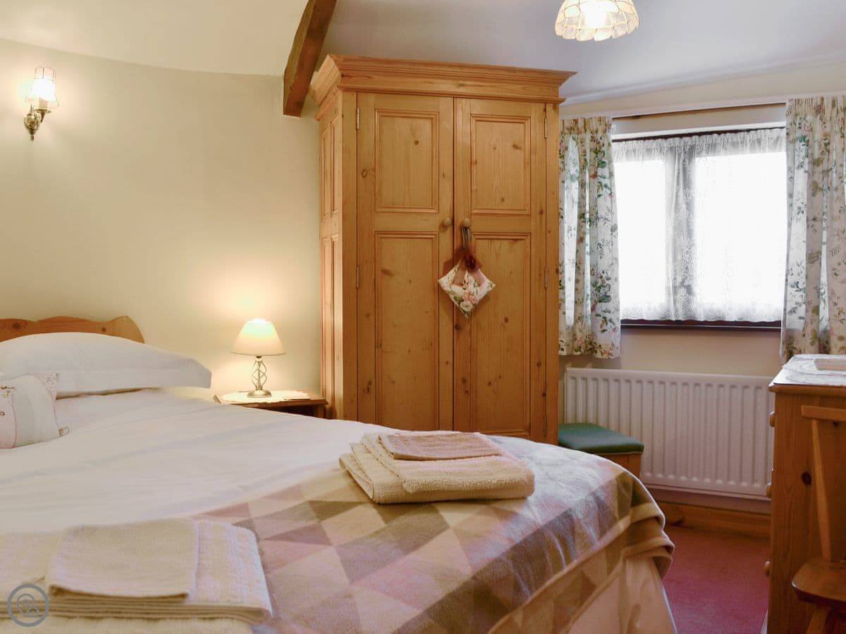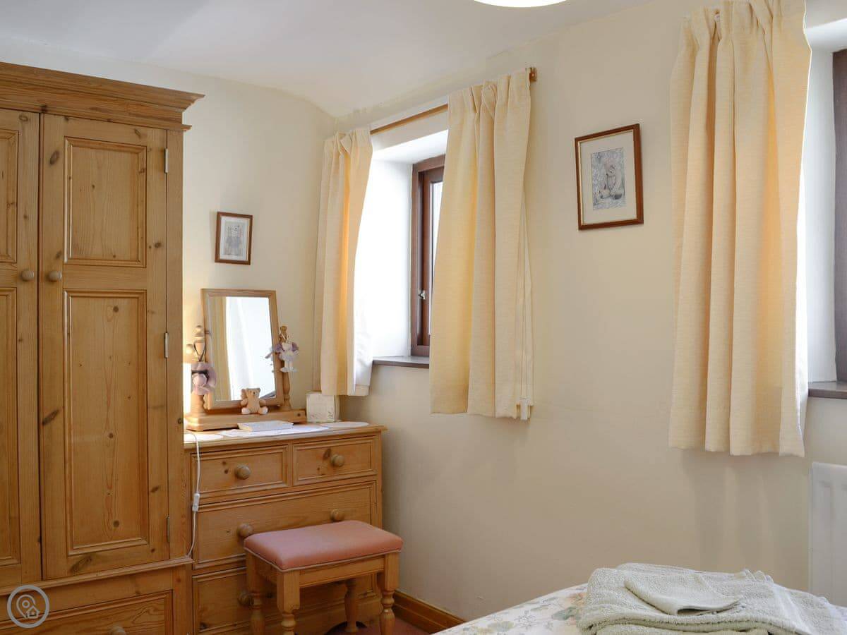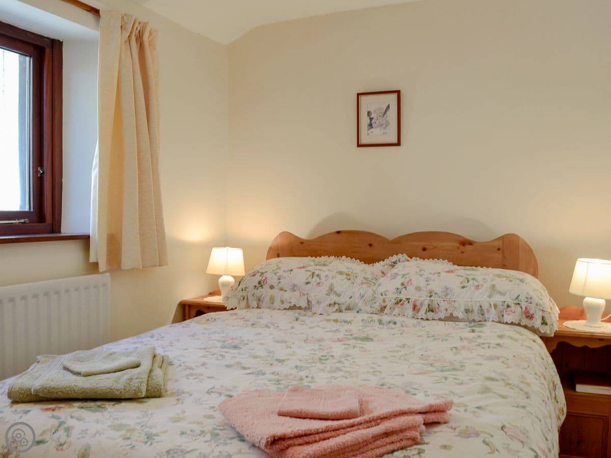 It's a 4 Star place, sleeps four. Two bedrooms and a bathroom are on the ground floor. One room has a double bed, the other has a zip-and-link that can be a super king or two singles. Upstairs is just the living room. It's a cosy space.