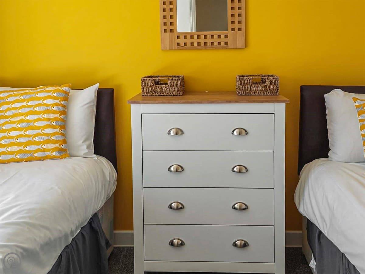 It sleeps four in two bedrooms and has one bathroom. Everything is on the ground floor, which helps. It's a 4 Star place, so it's comfortable and kept clean.