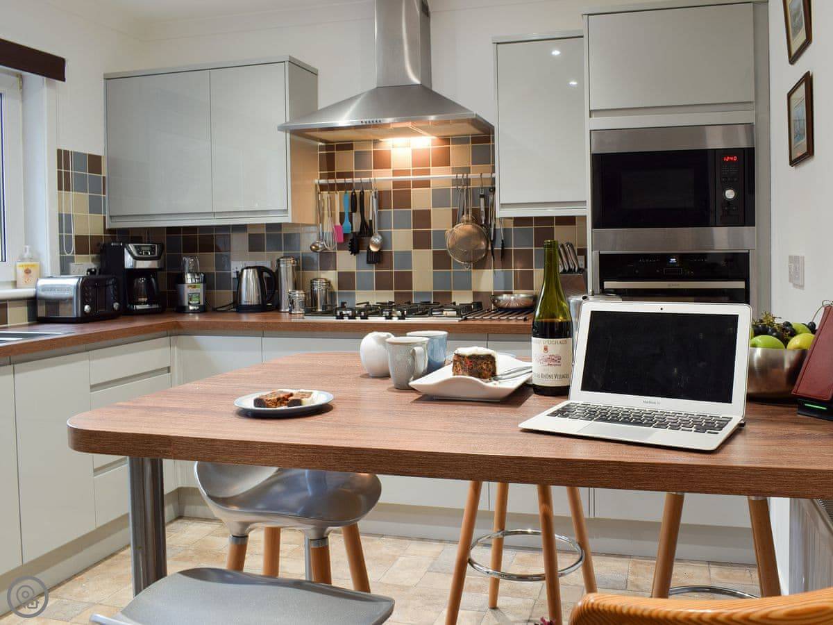 Inside, there's a big dining table, a washing machine, dishwasher, and wifi. Bedding and towels are included. We can take up to two dogs. There's a cot and highchair if you need them.