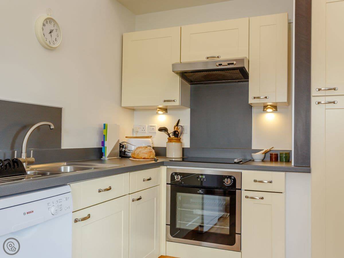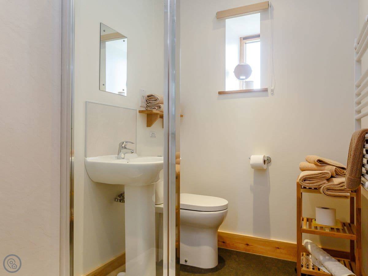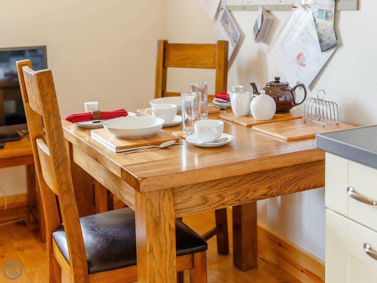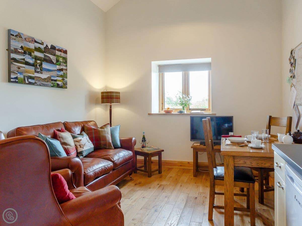 The barn has high ceilings and oak floors. It's open plan downstairs. There's a patio area outside your door that's just for you, with a table and chairs. You share a bigger garden area with the other barns, which has a barbecue and a herb garden. There's a large meadow too, which is good for letting dogs run.