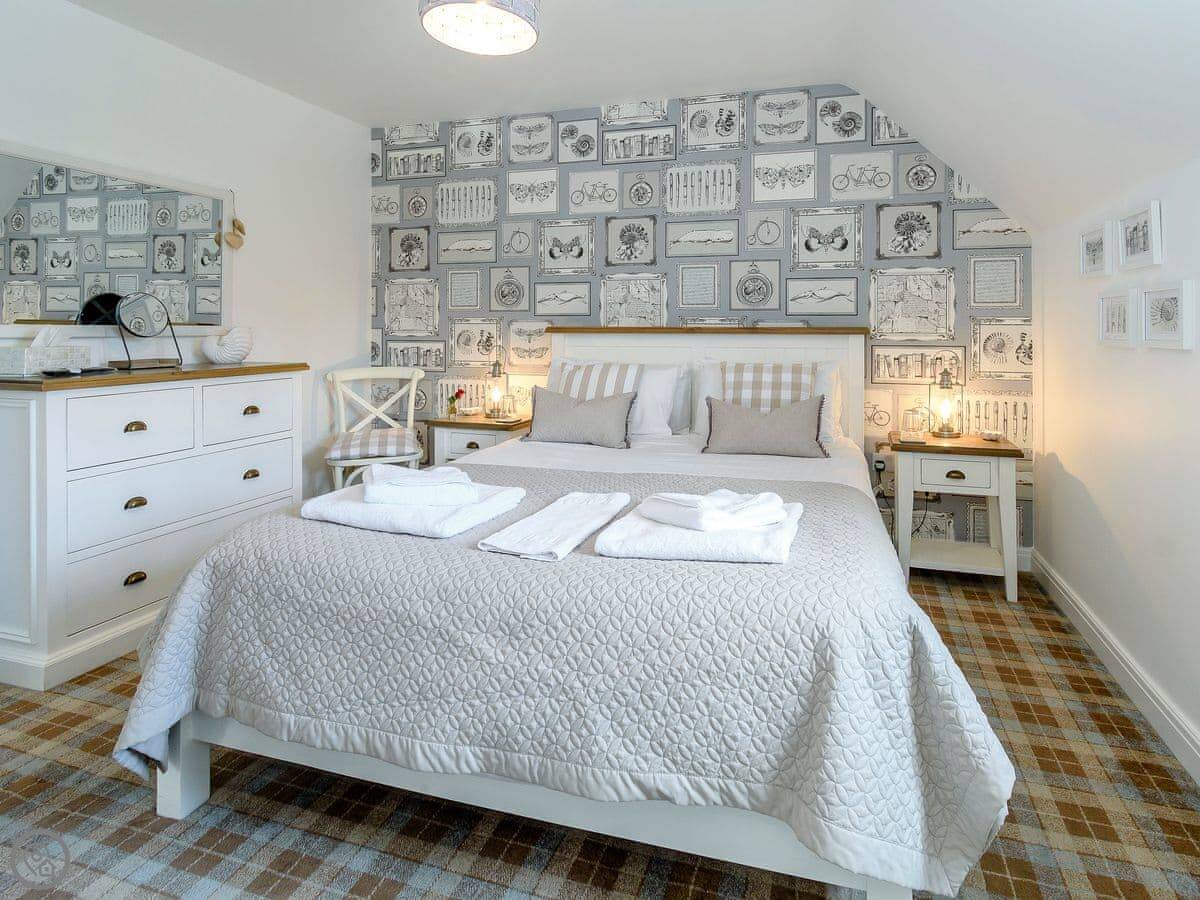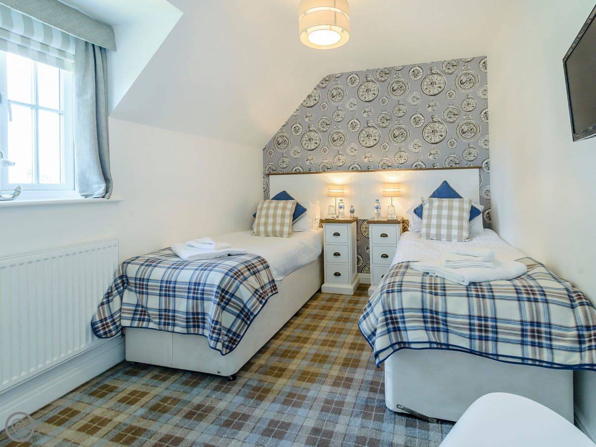 It's got a 5 Star rating. That means it's very well finished and comfortable. The owner puts a lot of effort into the welcome pack, with fresh flowers, coffee pods, cake, and drinks. There are White Company toiletries in the bathrooms.