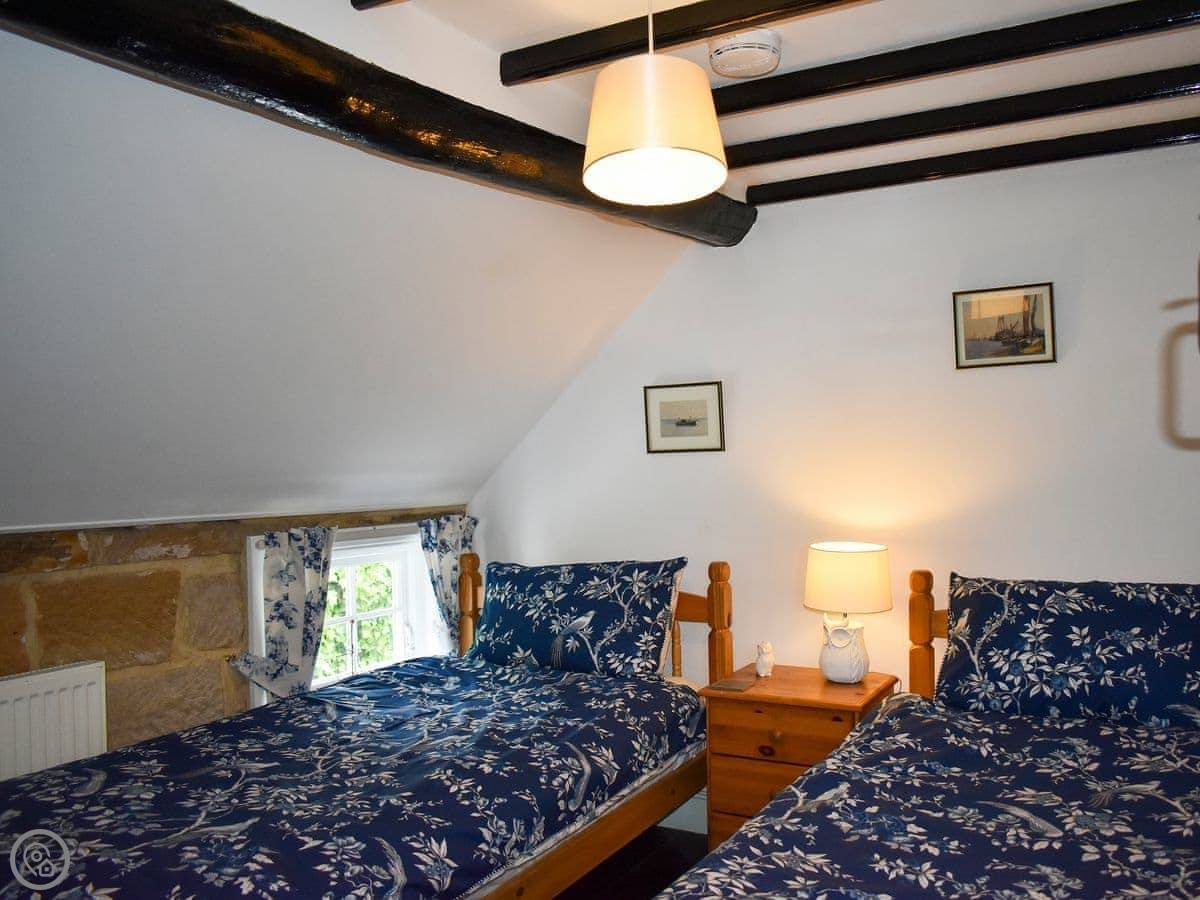 You can walk down into the town centre in about five minutes. The harbour, the shops, the steps up to the Abbey, it's all right there. The beach is about a ten minute walk downhill. There's a shop and a couple of pubs very close by, maybe 200 yards.