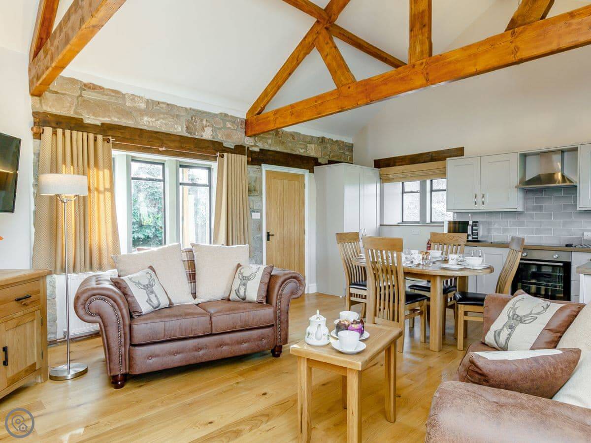 You come in through a little porch into the kitchen. It's a good size and has what you need. The living area is open plan with a wood burner. It's cosy in winter. Both bedrooms have TVs.