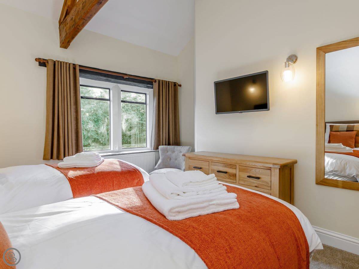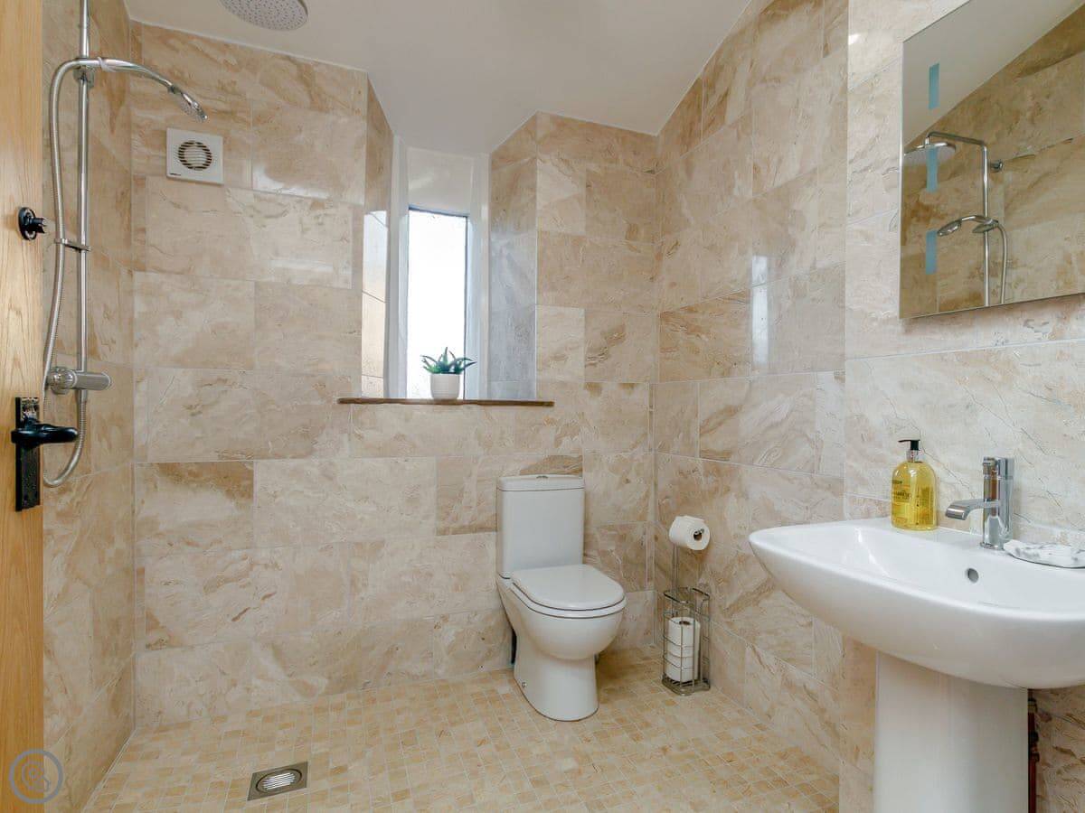 It sleeps four. Two bedrooms, one bathroom which is a wet room. The rating is 5 Star, which means it's been finished well and is comfortable. Everything's new.