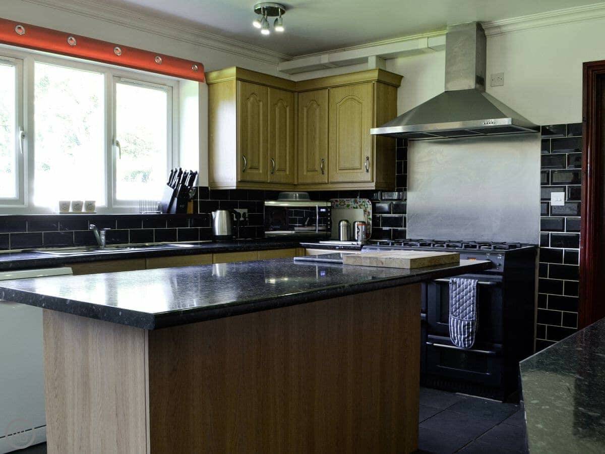 Vijay Gardens is a big house in Glanaman, near Llandeilo. It's detached and sleeps fourteen, so it's for a proper big group.