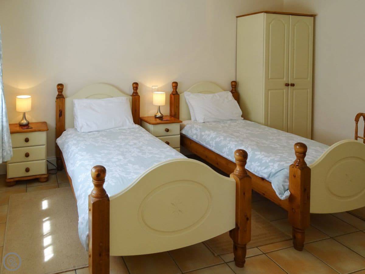 It's all on one level, which is handy. Sleeps four. Two bedrooms and each one has its own shower room. You can bring one dog.