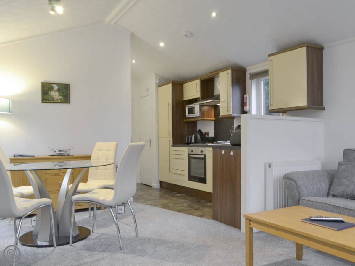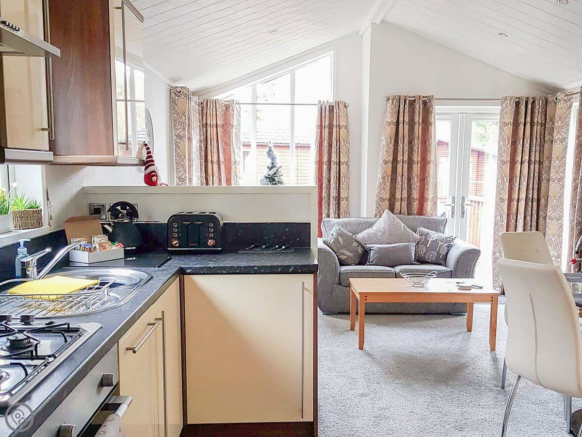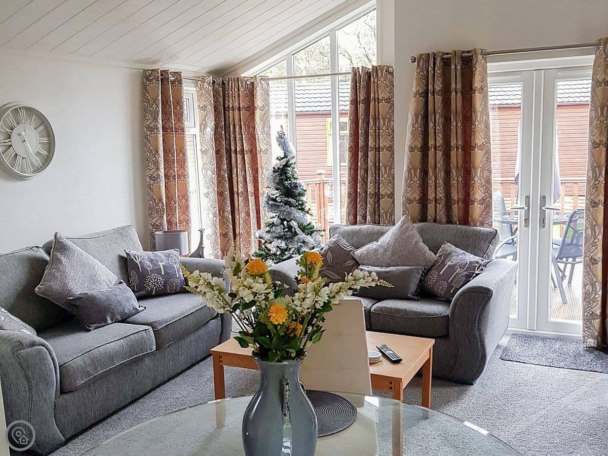 Comfortably furnished, this double glazed and gas centrally heated lodge enjoys a light and airy feel throughout, with a well laid out open-plan living space. It also has the added benefit of a bath so you can choose to soak away the day either indoors or out under the stars, with a hot tub that is discreetly tucked away in amongst the trees. Either way, you are guaranteed to find the perfect end to a busy day of exploring, hiking, cycling, sailing, shopping or a combination of all these activities which are on offer nearby.