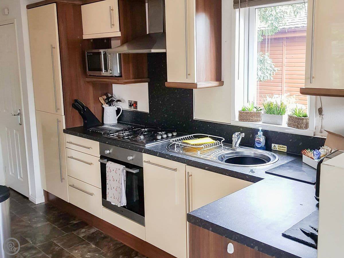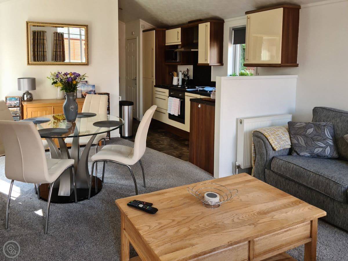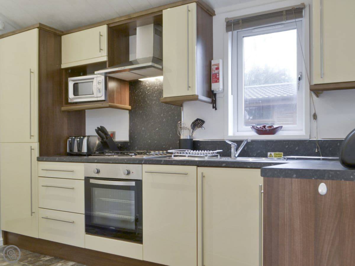 Comfortably furnished, this double glazed and gas centrally heated lodge enjoys a light and airy feel throughout, with a well laid out open-plan living space. It also has the added benefit of a bath so you can choose to soak away the day either indoors or out under the stars, with a hot tub that is discreetly tucked away in amongst the trees. Either way, you are guaranteed to find the perfect end to a busy day of exploring, hiking, cycling, sailing, shopping or a combination of all these activities which are on offer nearby.