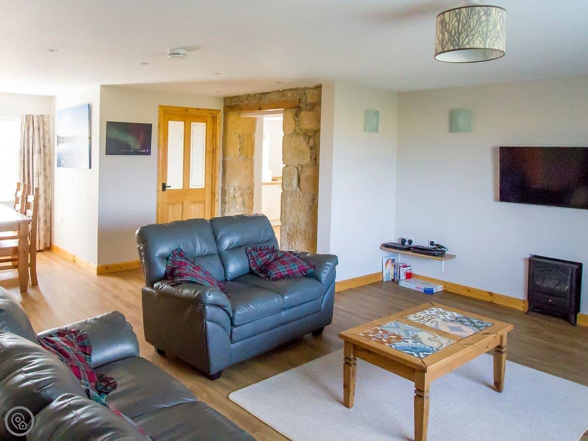 Grieve's Cottage is on our farm, about a mile from Portmahomack village. It's a single-storey cottage, one of three in a row. You get the garden and the hot tub to yourselves. The views are good, just fields and sky.
